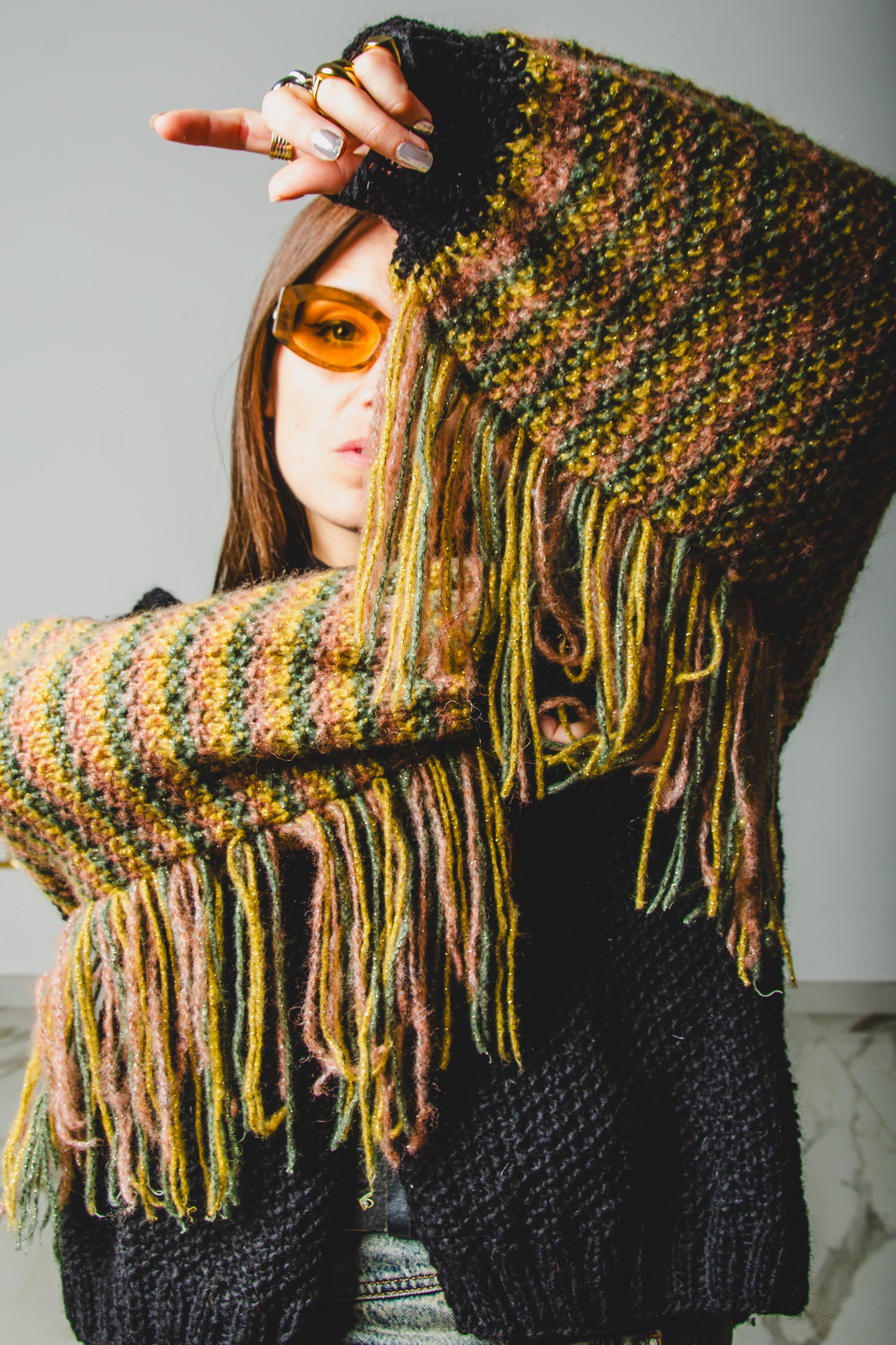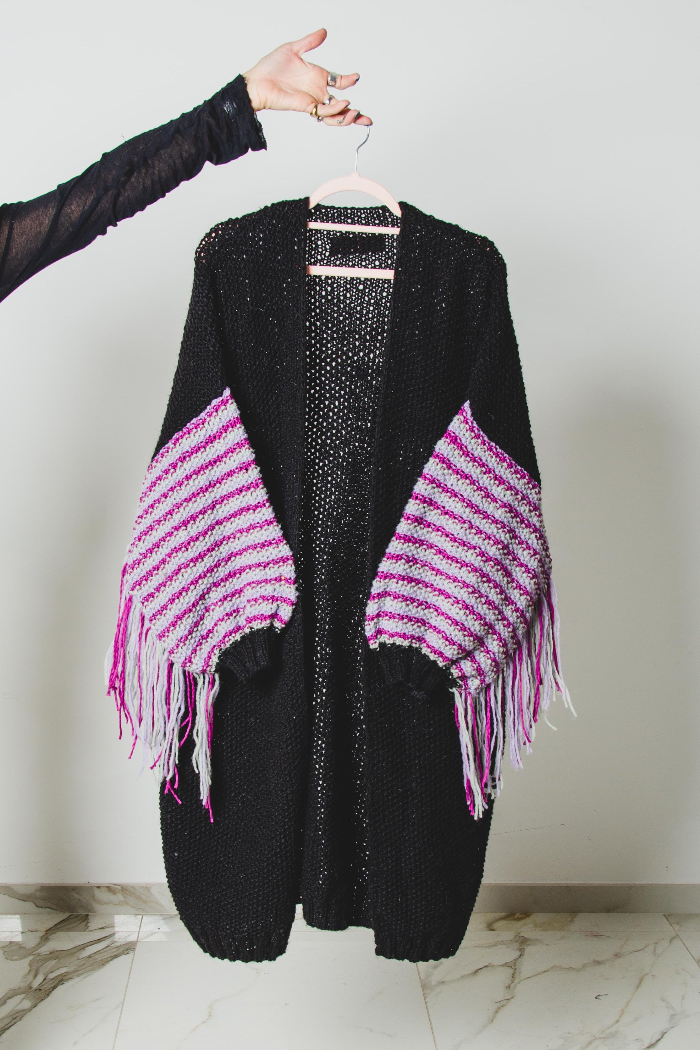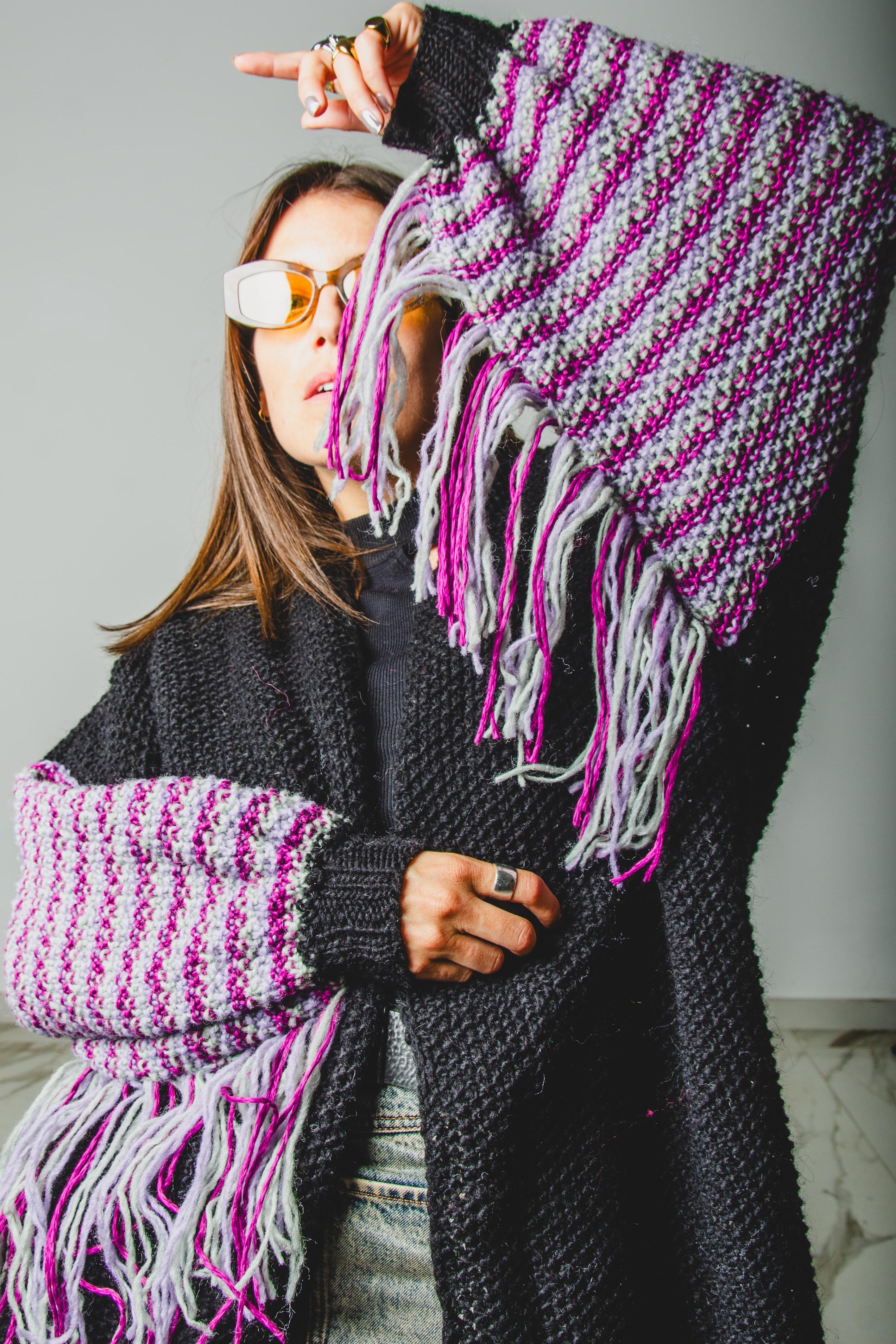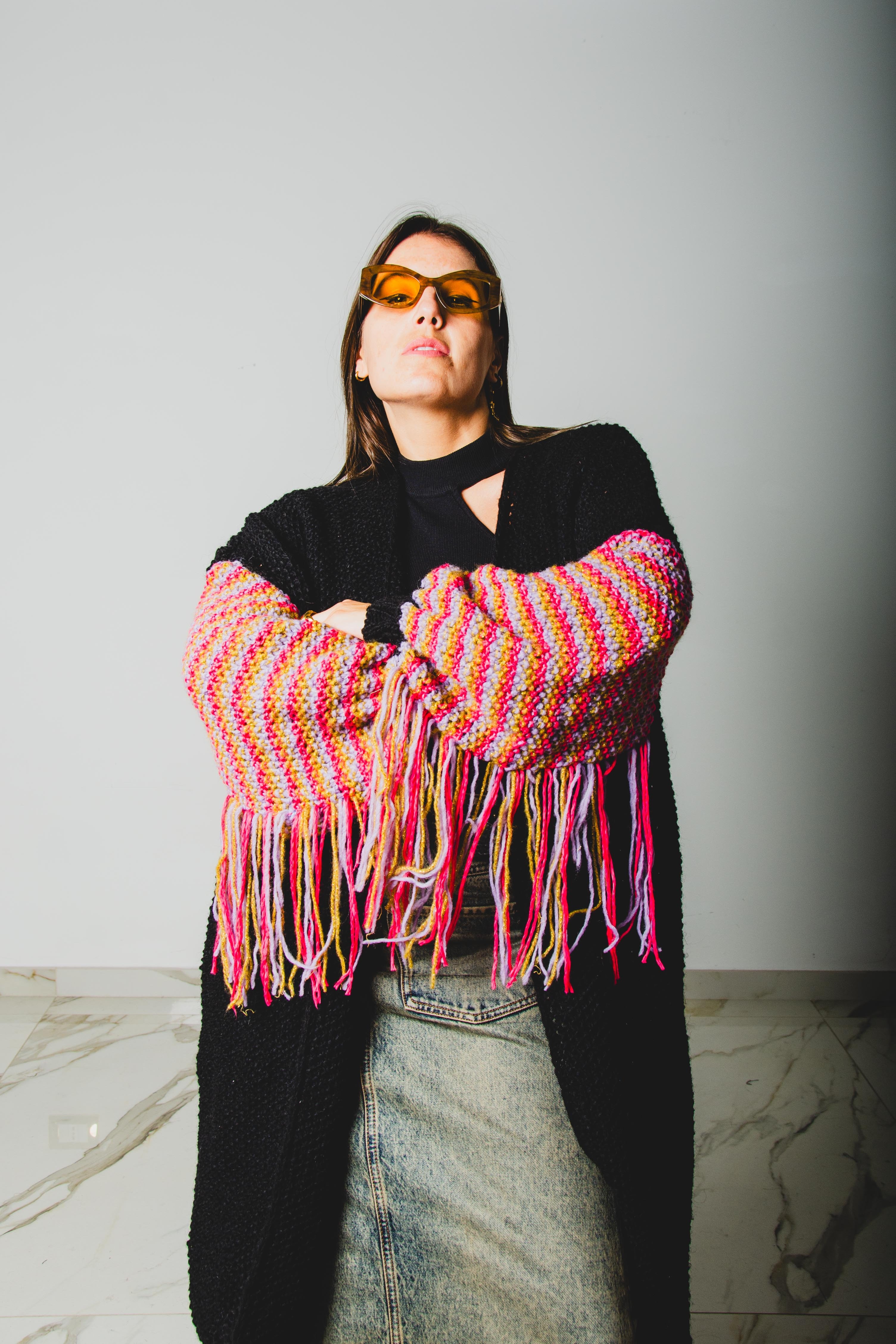 I nostri cardigan sono pezzi unici realizzati a mano in Serbia, frutto del lavoro di donne artigiane che utilizzano lana locale di alta qualità. Ogni modello nasce da ore di paziente lavorazione a maglia, reinterpretando la tradizione con uno stile contemporaneo fatto di volumi oversize, colori vivaci e dettagli a frange.