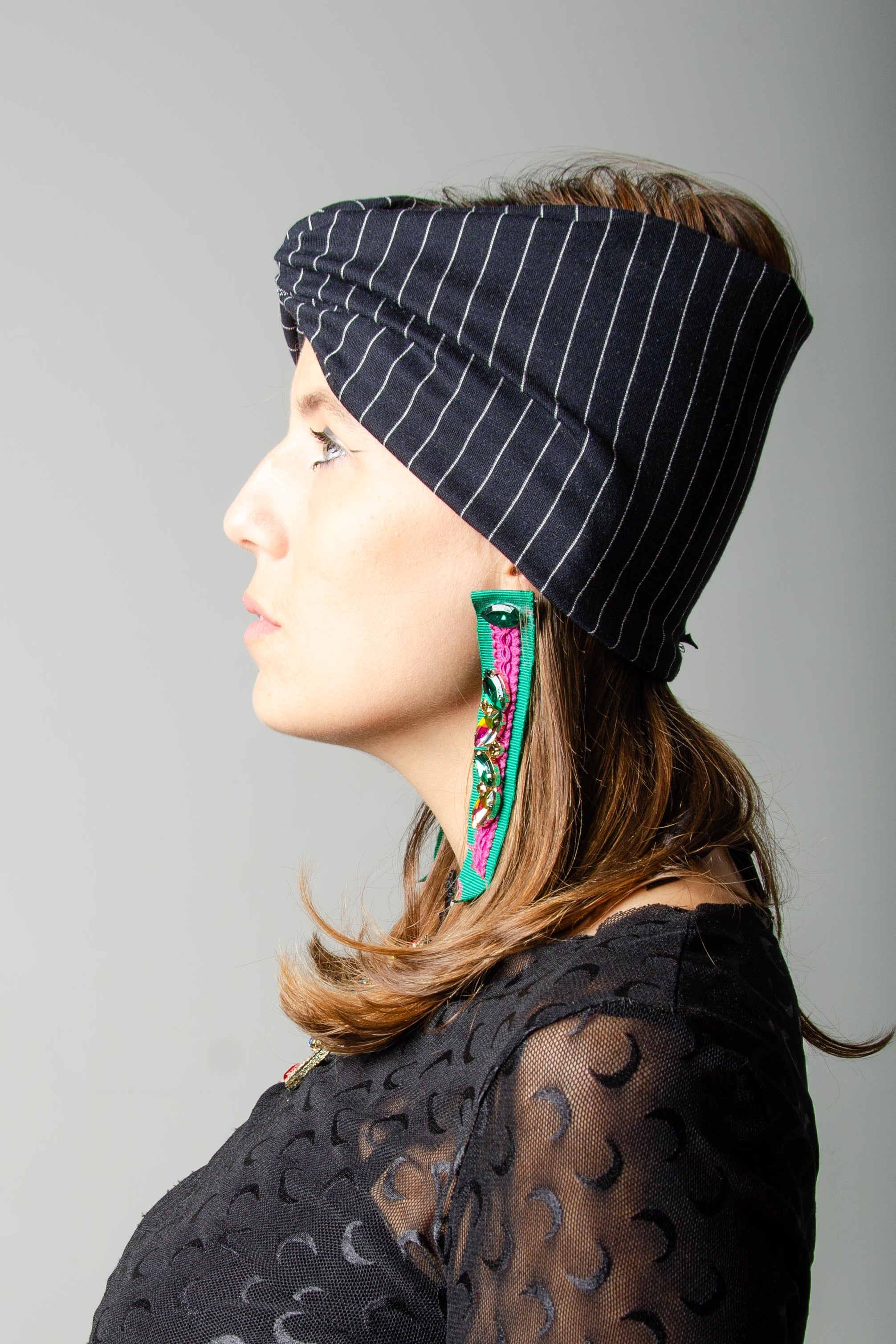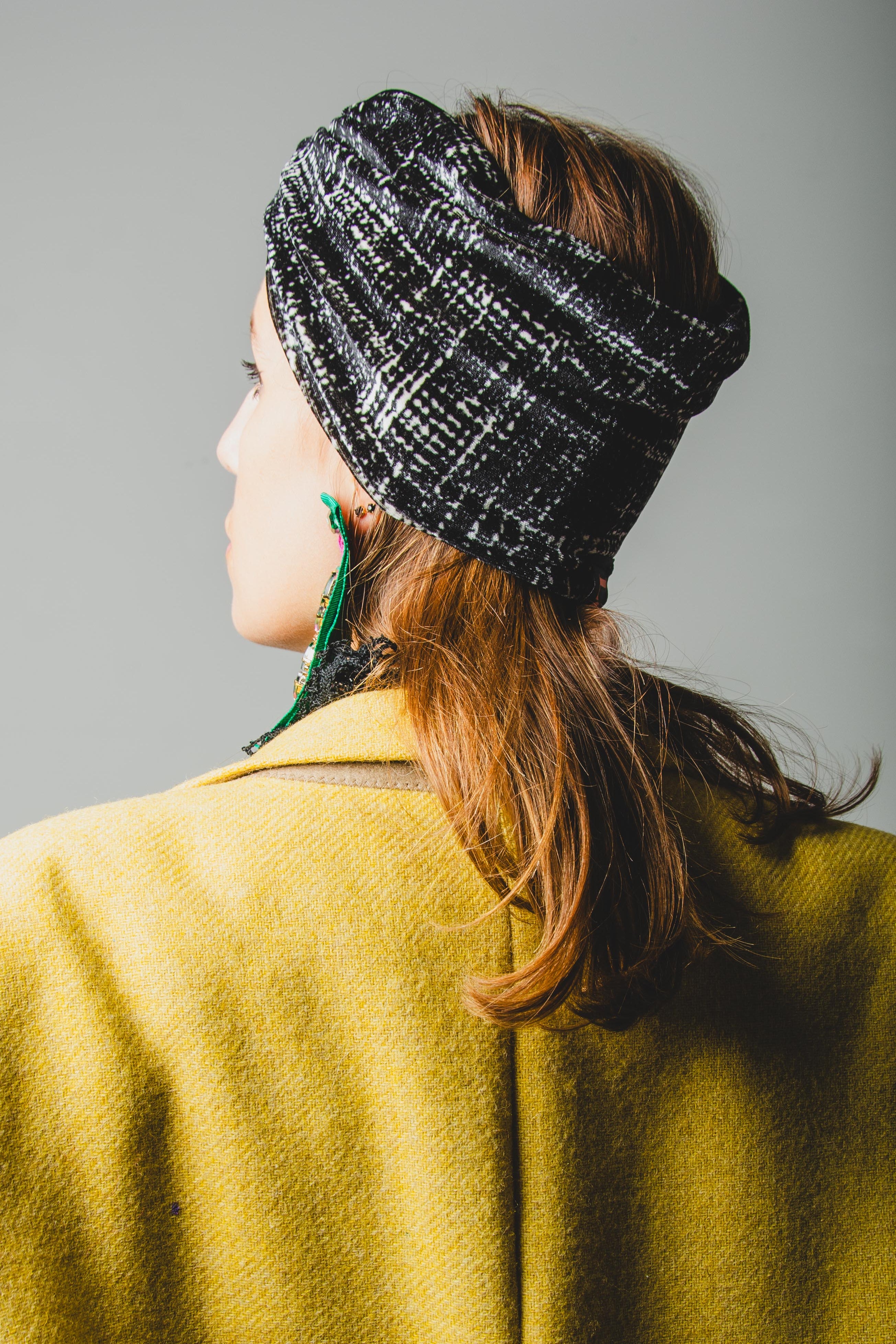 186 Fascia elastica per capelli in velluto elasticizzato bianco e nero