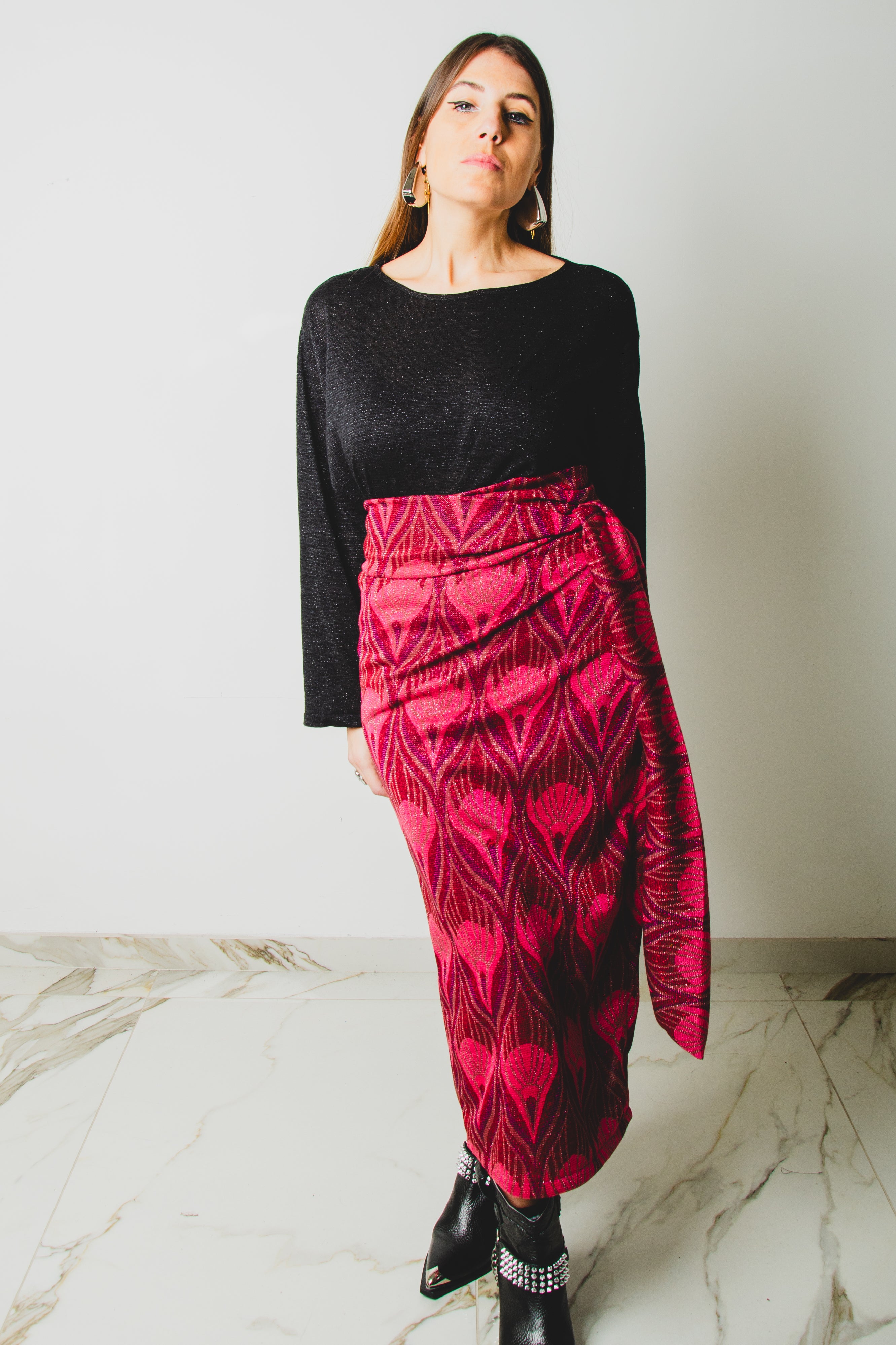 Le nostra gonne portafoglio sono un opera d'arte sartoriale realizzate in taglia unica, indossabile dalla S alla XL. Ogni pezzo è unico e attentamente selezionato, progettato per adattarsi a diverse morfologie grazie alla cintura regolabile che permette di stringere o allargare a piacimento. È un capo fondamentale in ogni guardaroba femminile, in quanto può trasformarsi con pochi gesti in una gonna, un vestito o un top.