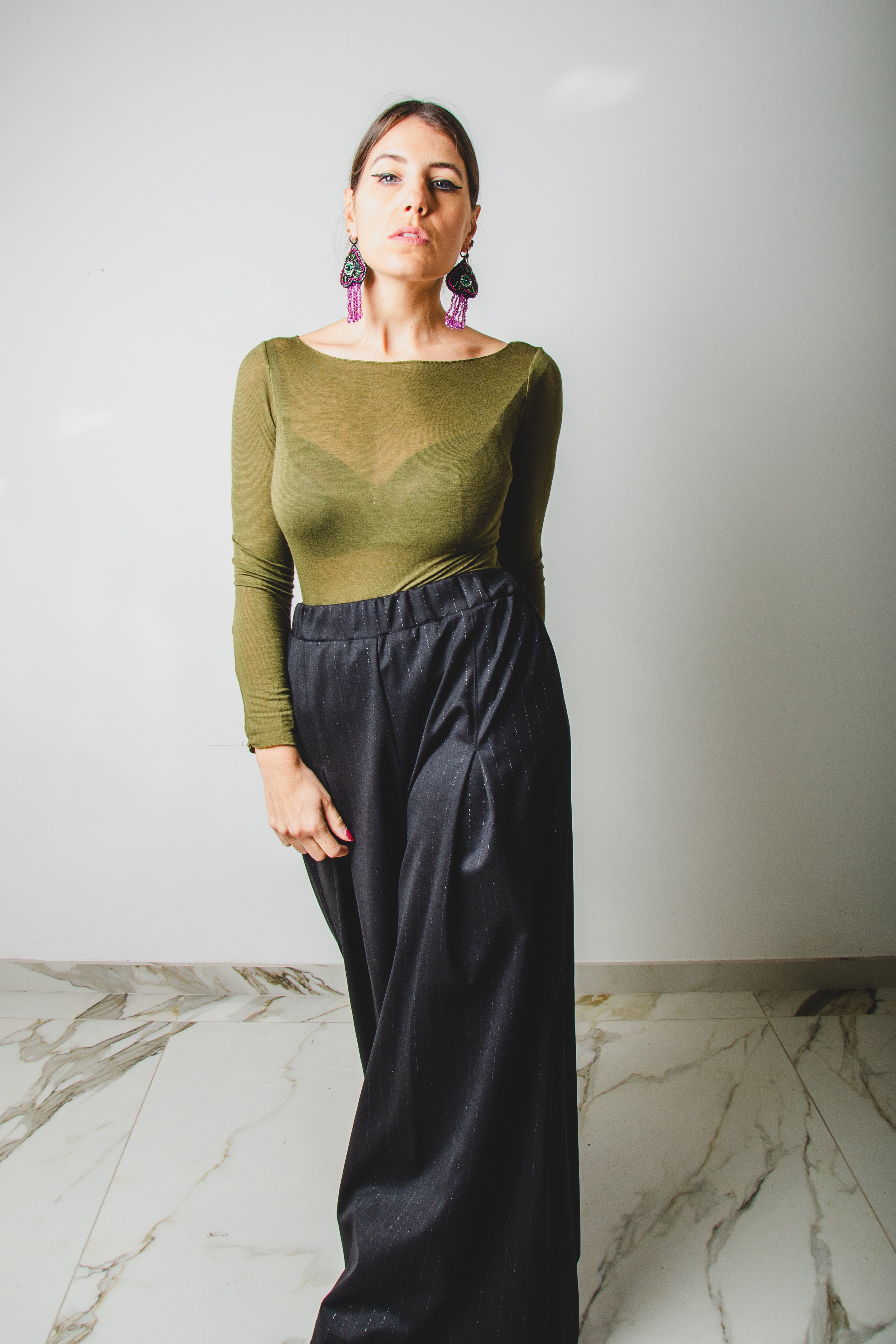 Pantalone palazzo NICOLE con elastico in vita in maglina elasticizzata verde TAGLIA 1