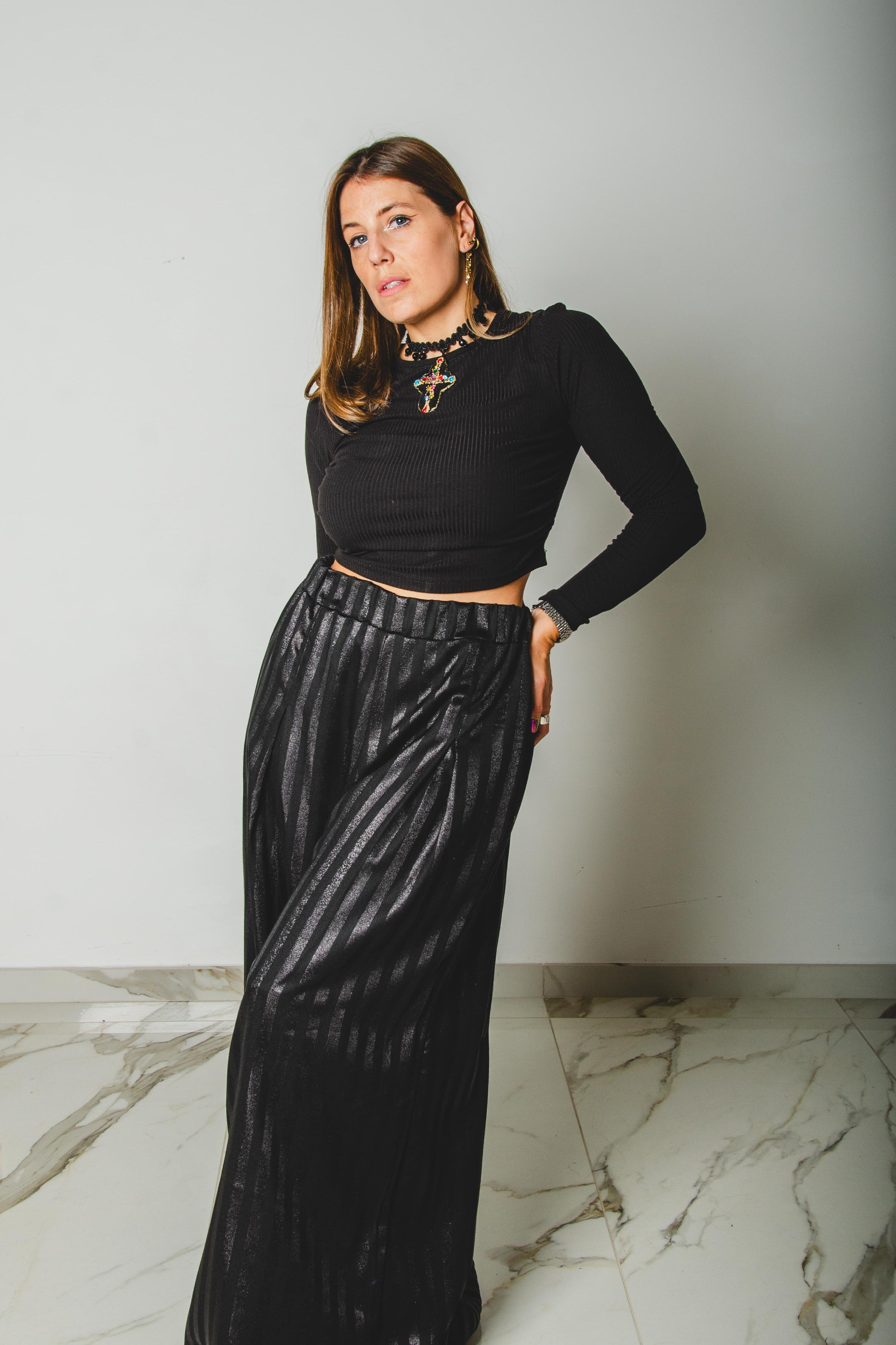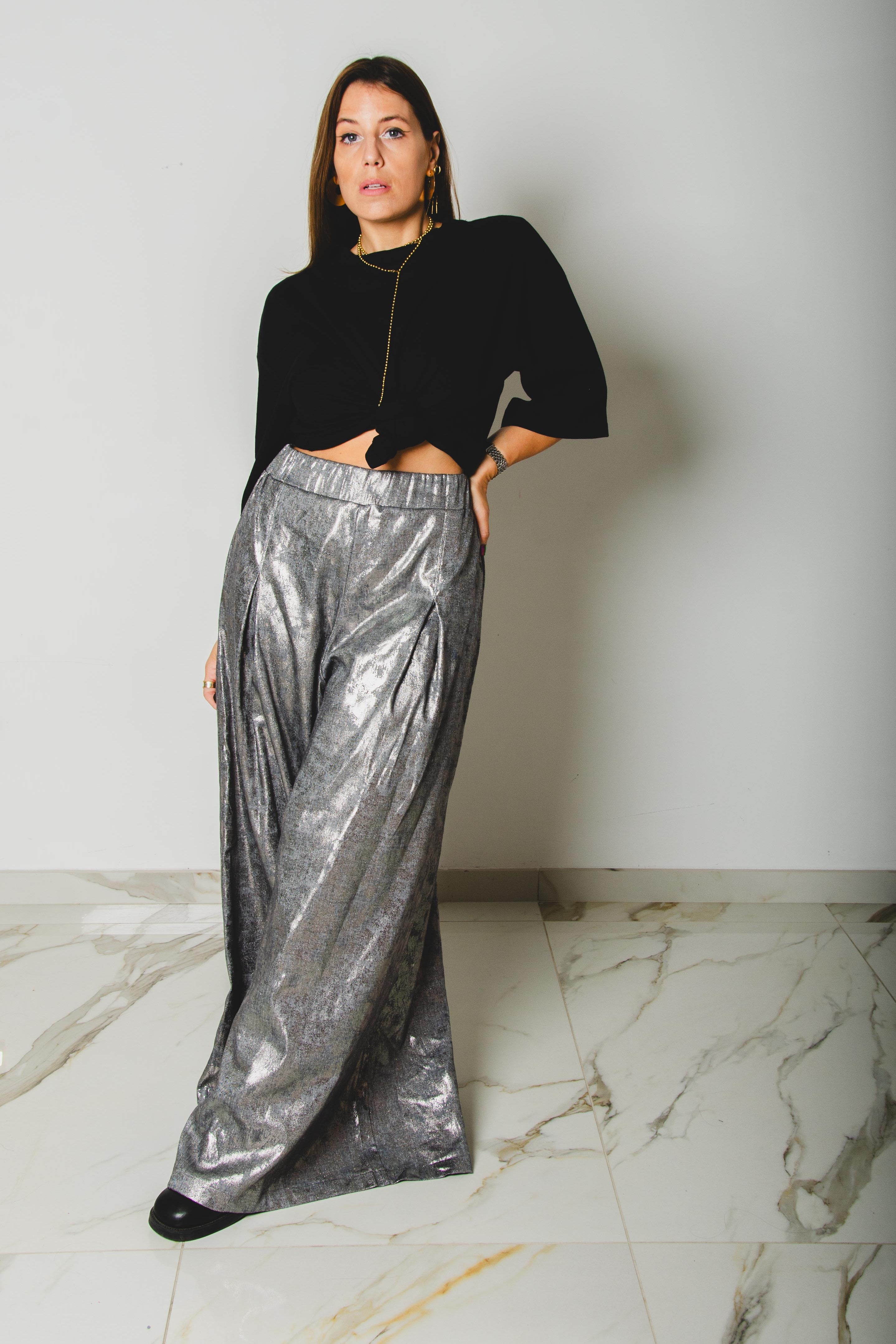 Pantalone palazzo NICOLE con elastico in vita in maglina elasticizzata con lurex TAGLIA 1