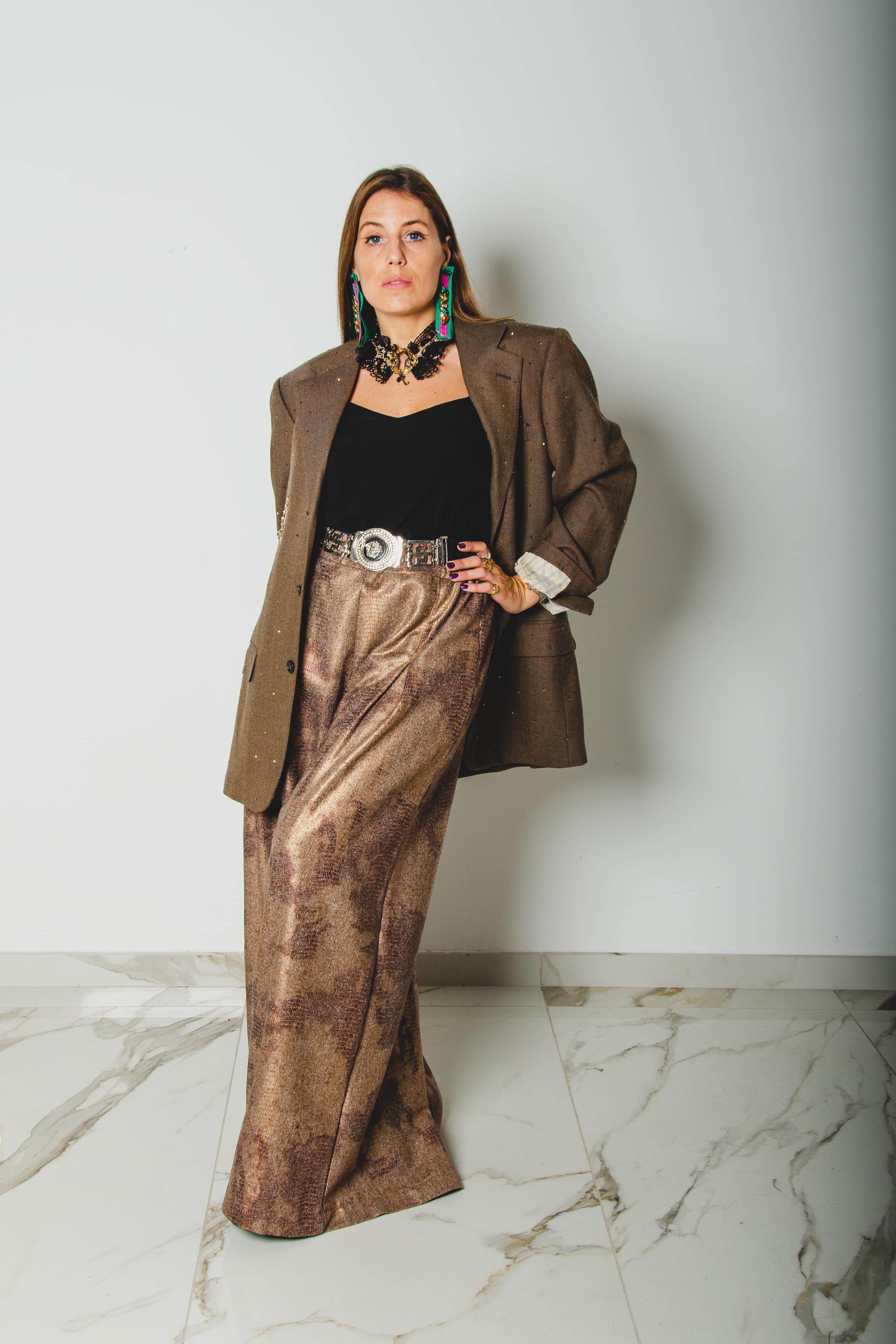 39 - Pantalone palazzo NICOLE sartoriale in lana effetto metallizzato bronzo