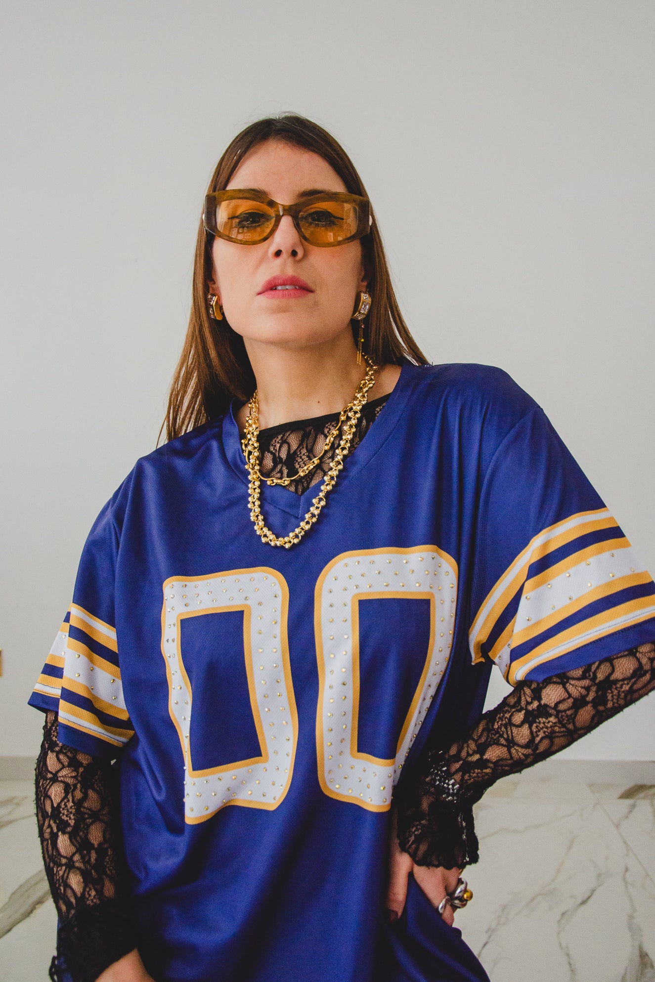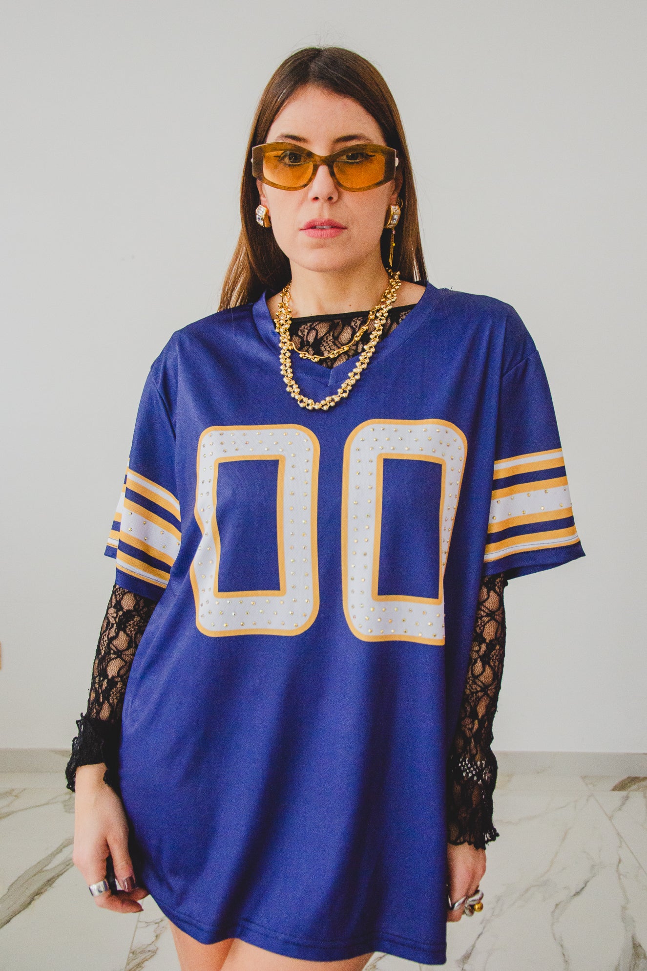 29 - Maglia Sportiva con Numero Ricamato e Strass – Stile Football Americano tg L