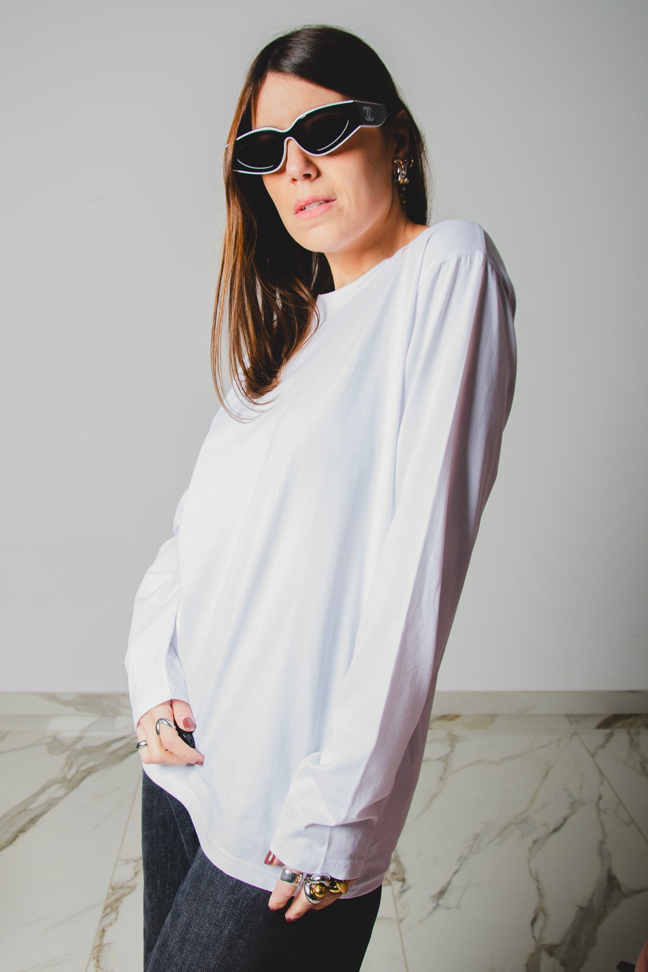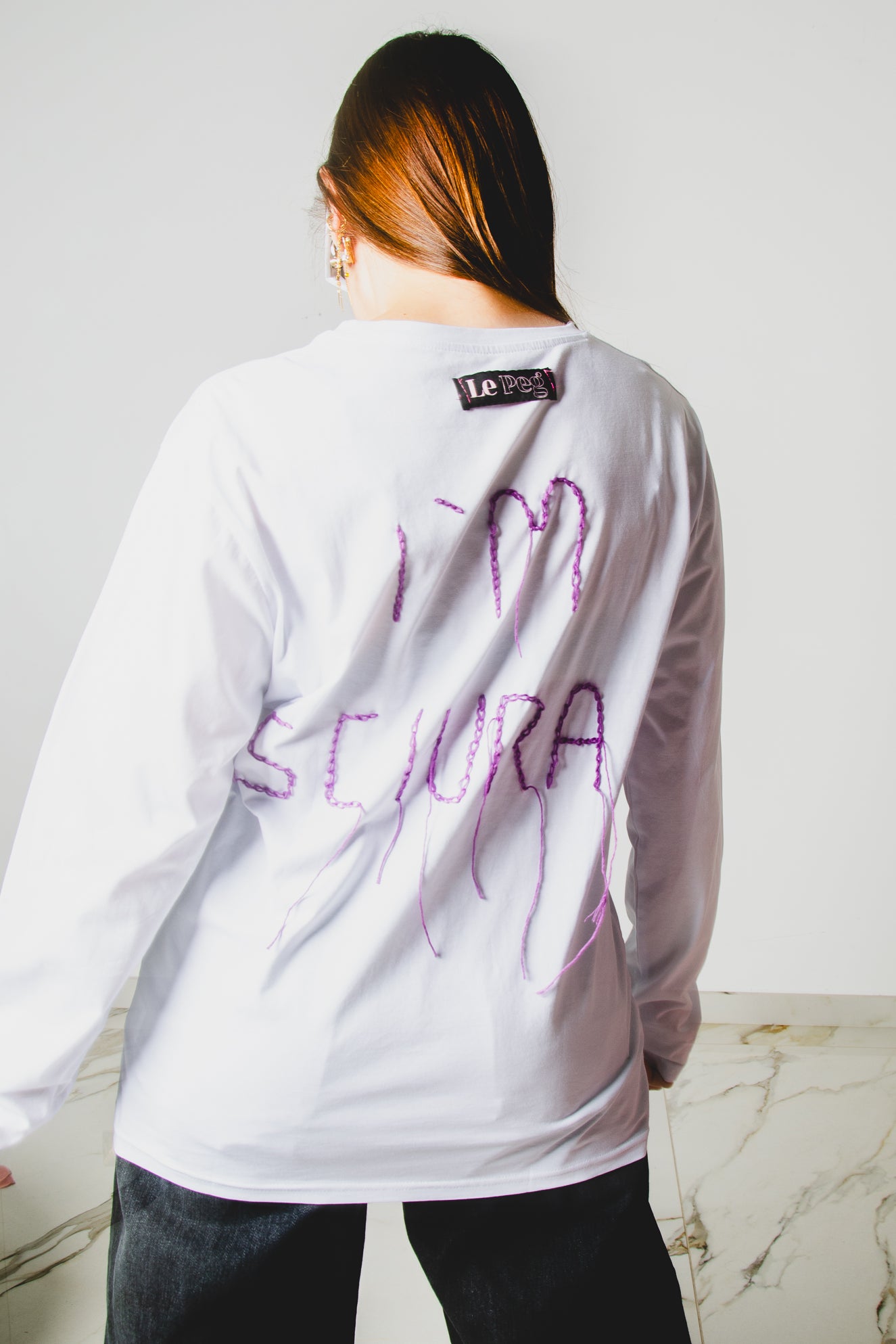 24 - Maglia oversize bianca a maniche lunghe in cotone XL ricamata a mano I’M SCIURA