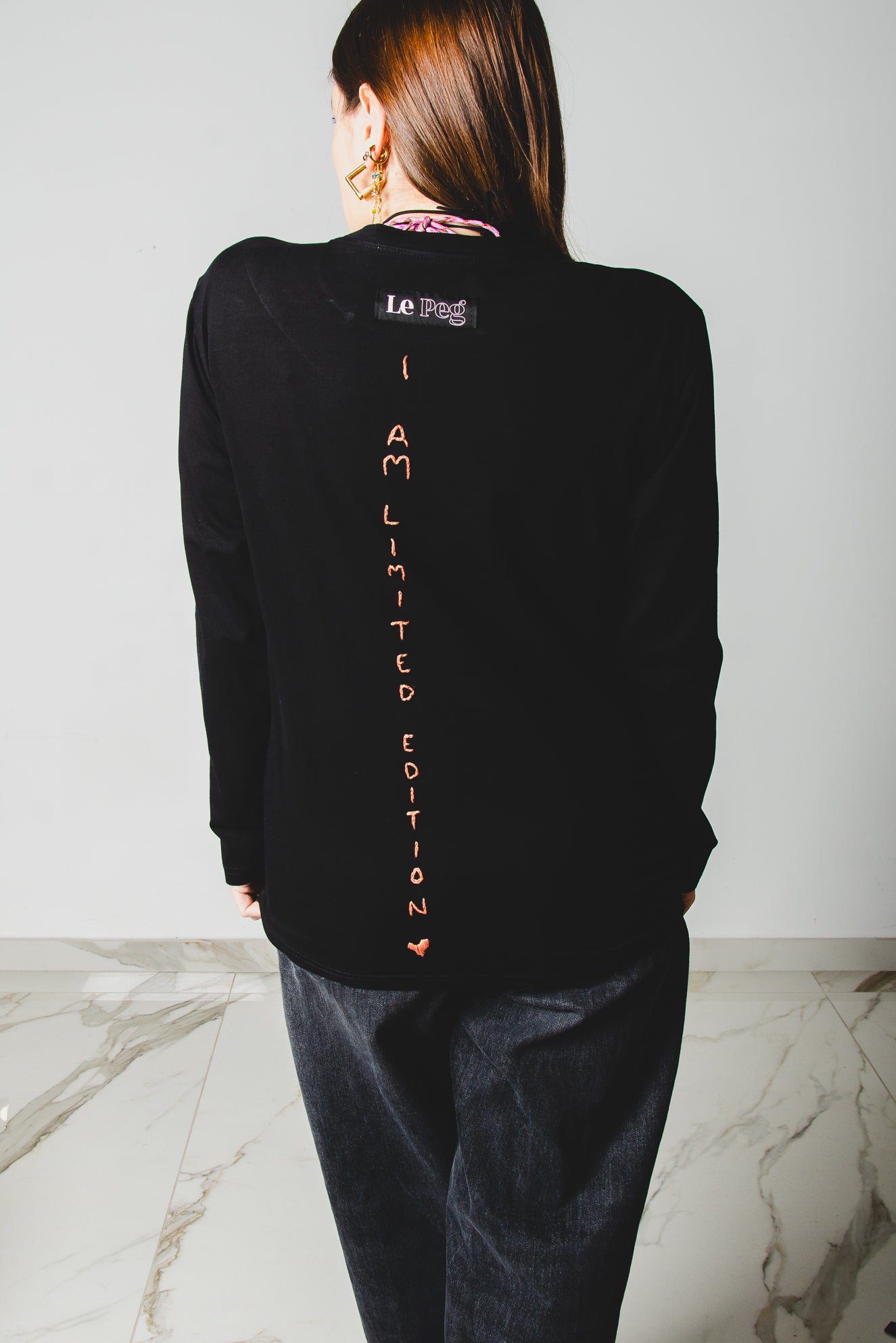 26 - Maglia oversize nera a maniche lunghe in cotone L ricamata a mano I AM LIMITED EDITION