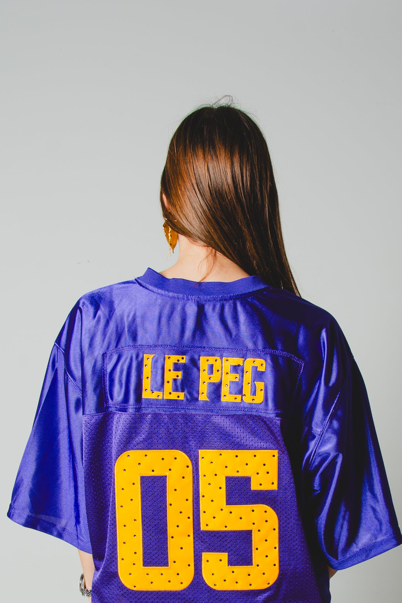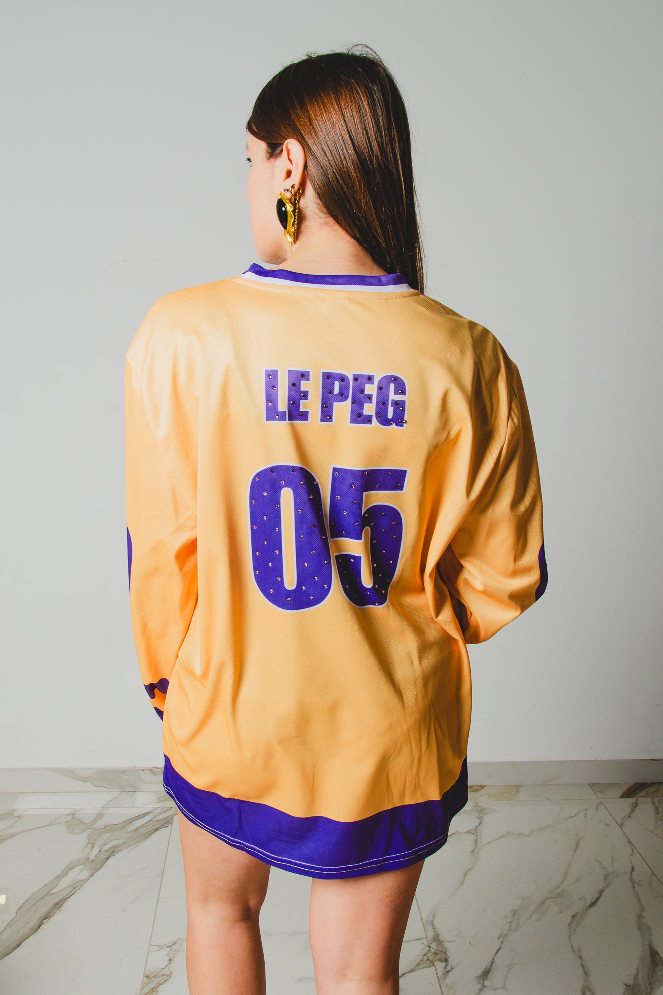 30 - T-Shirt Sportiva a Maniche Lunghe Gialla e Viola Le Peg 05 con strass Tg L
