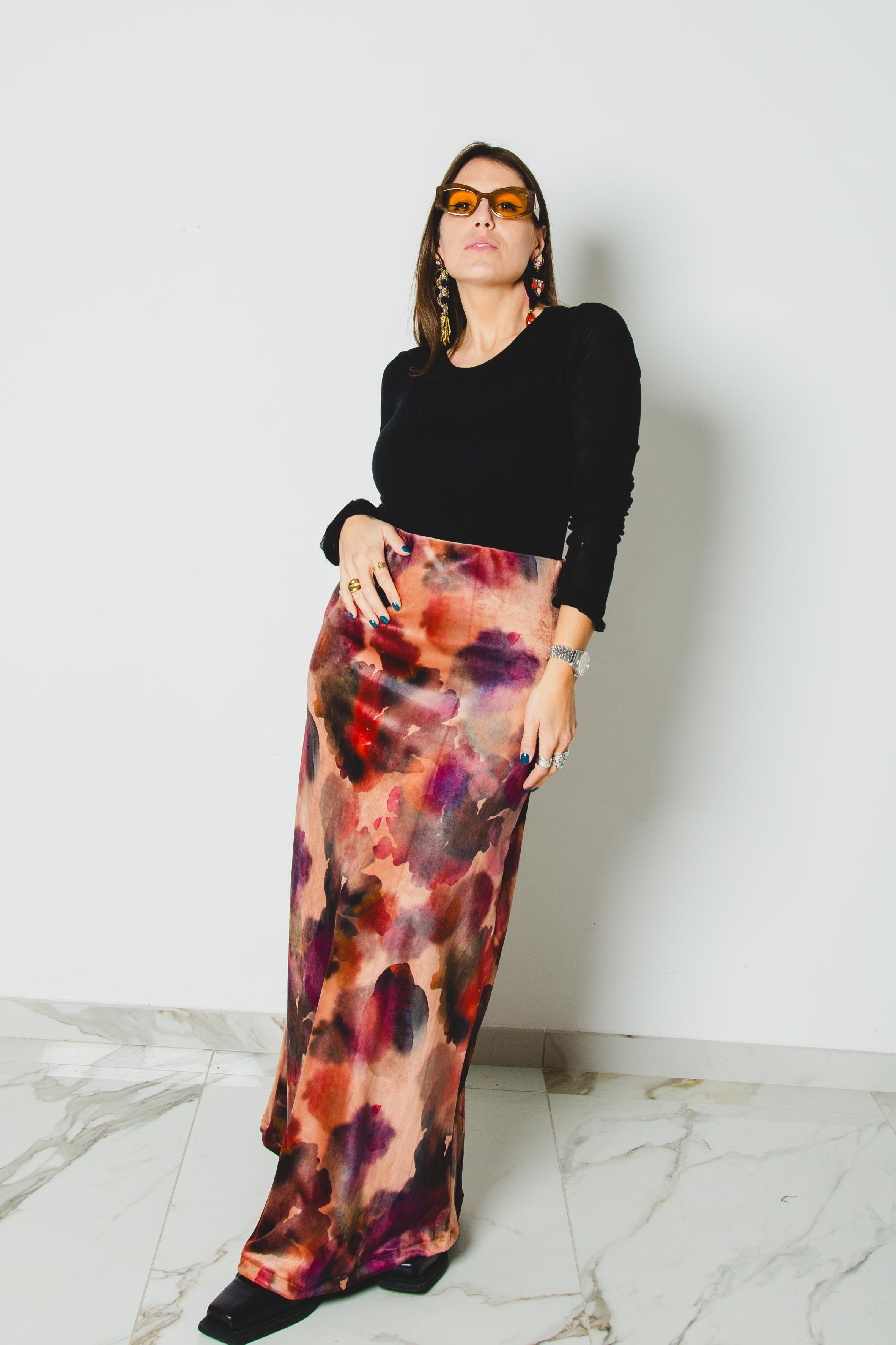 Le nostra gonne portafoglio sono un opera d'arte sartoriale realizzate in taglia unica, indossabile dalla S alla XL. Ogni pezzo è unico e attentamente selezionato, progettato per adattarsi a diverse morfologie grazie alla cintura regolabile che permette di stringere o allargare a piacimento. È un capo fondamentale in ogni guardaroba femminile, in quanto può trasformarsi con pochi gesti in una gonna, un vestito o un top.