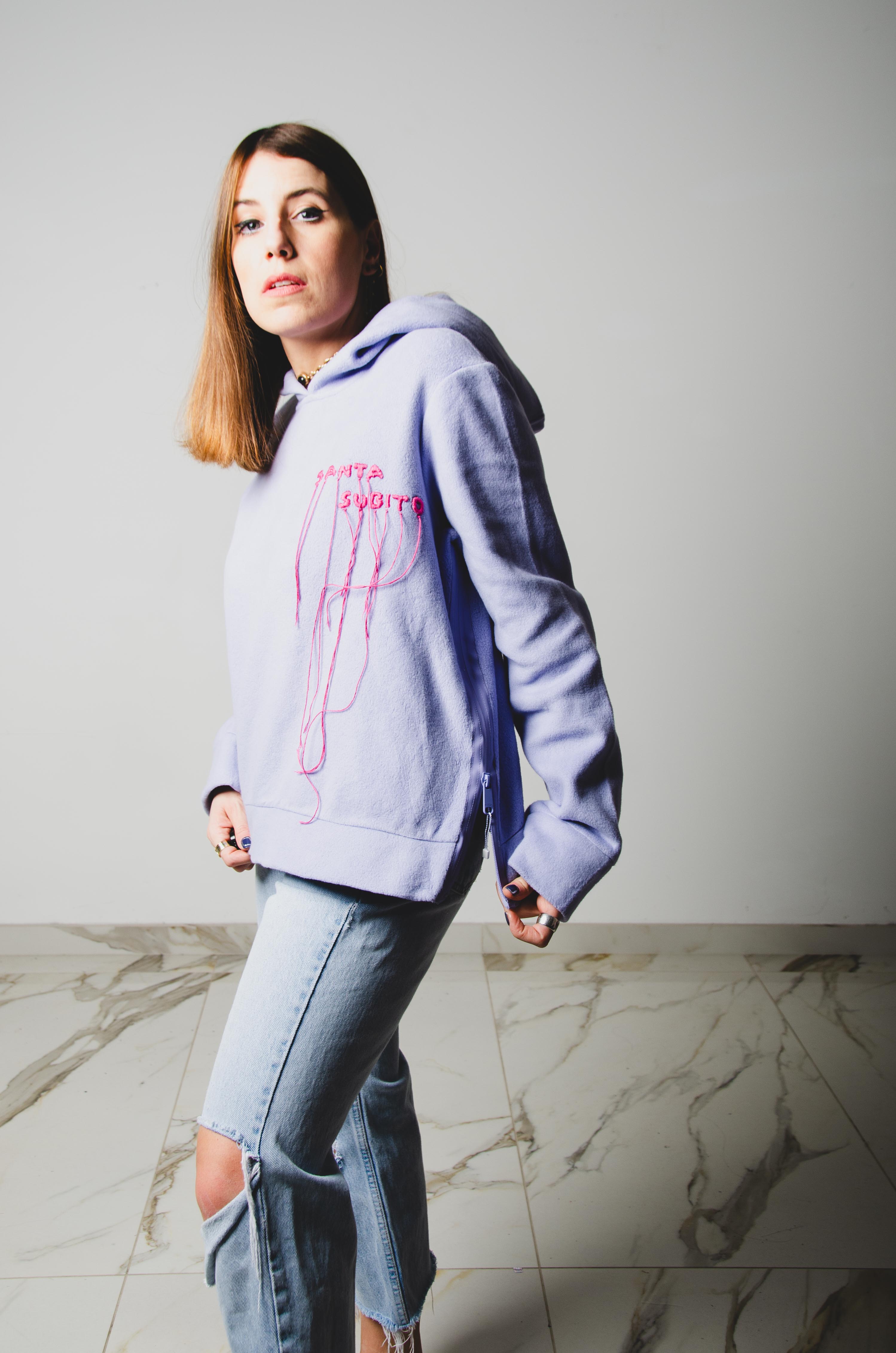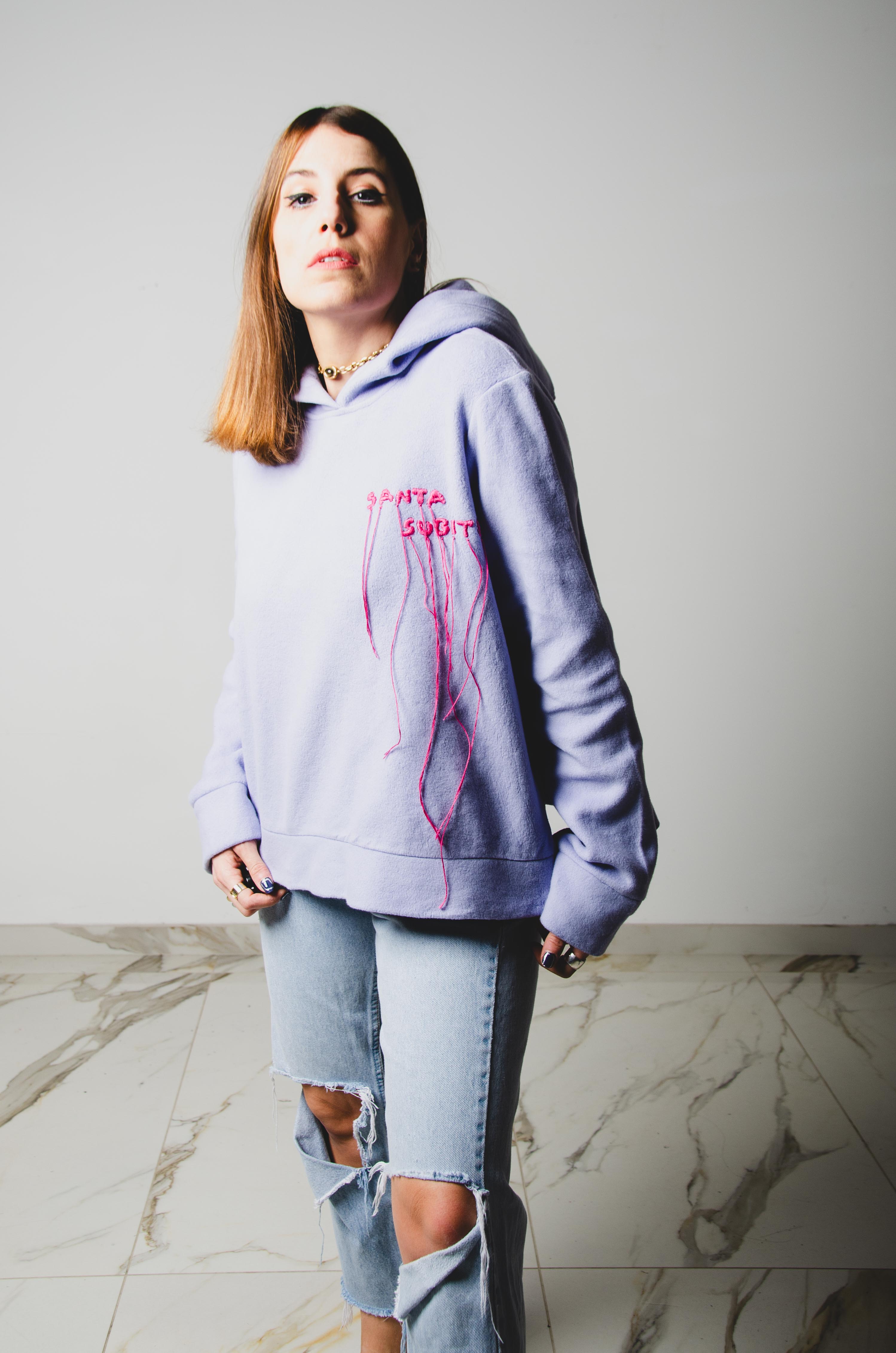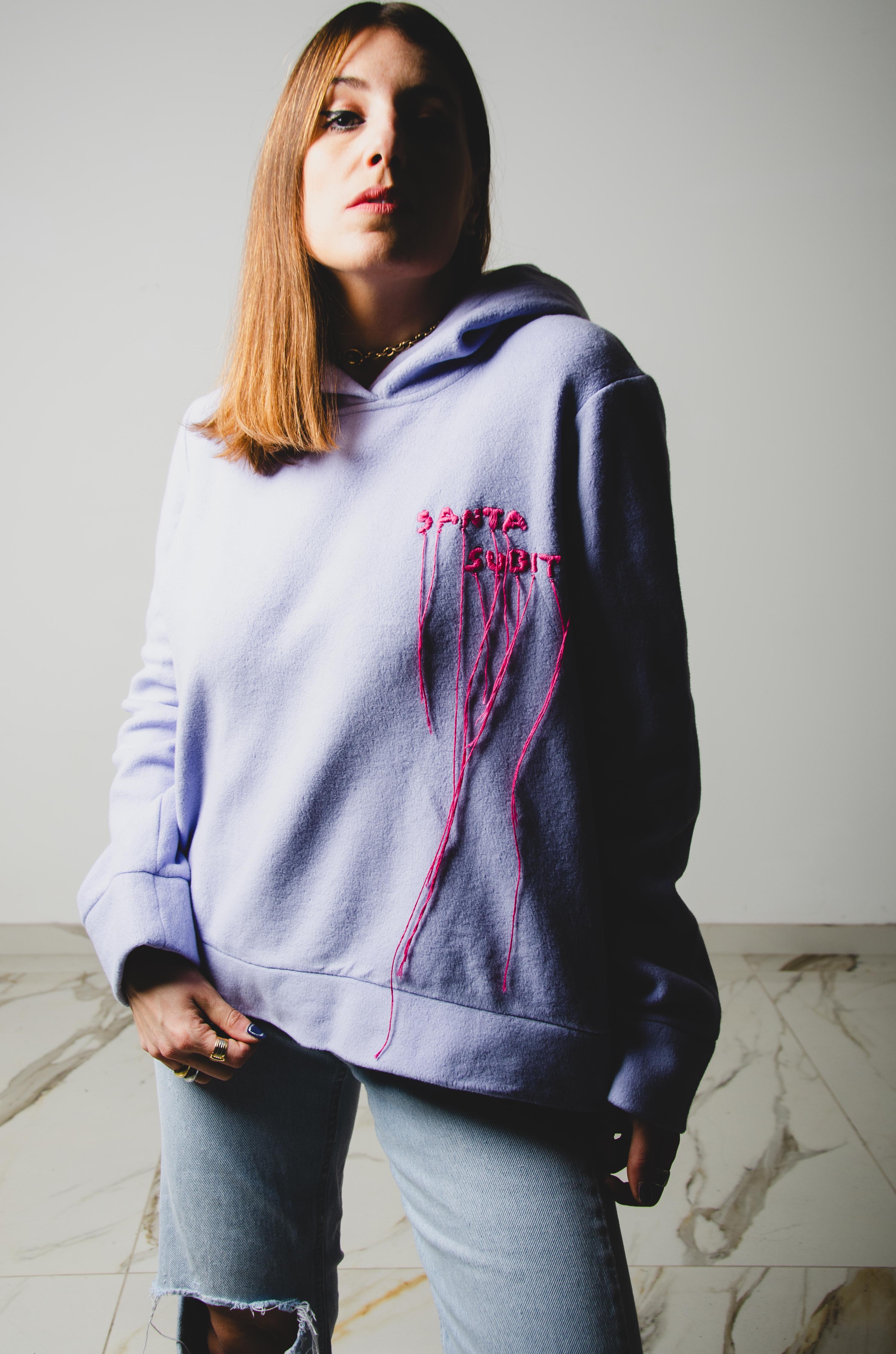 130 FELPA LILLA IN COTONE PESANTE RICAMATA A MANO - SANTA SUBITO (Copia)