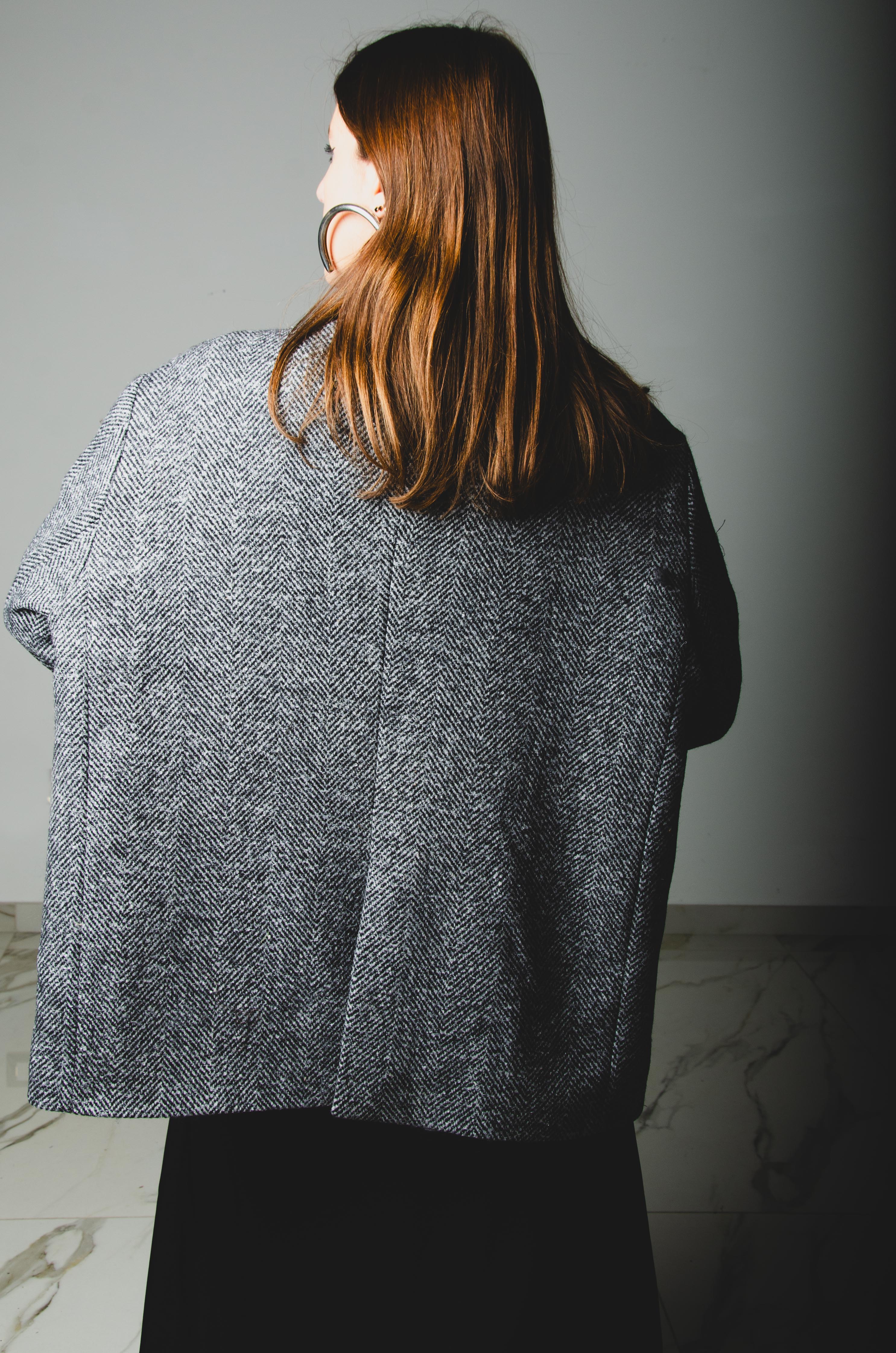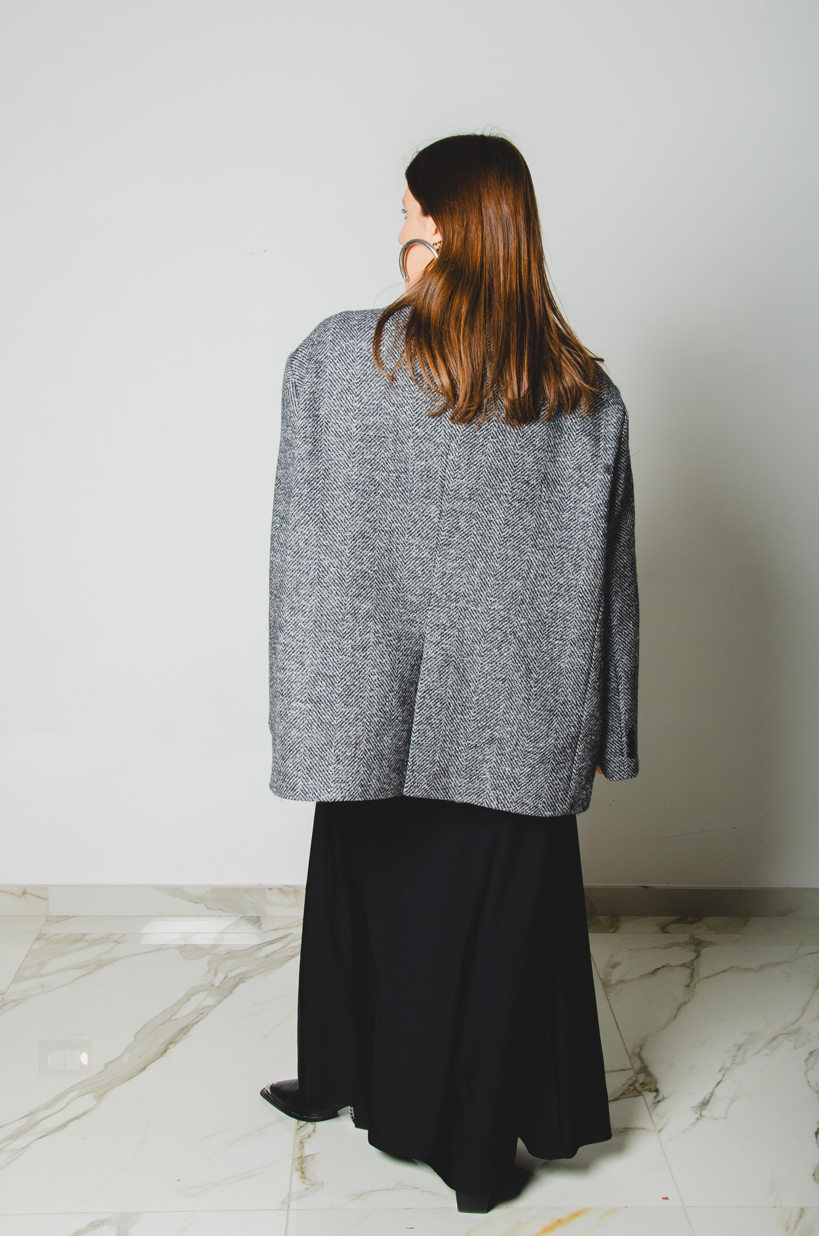 Black ribbed cuffs and collar, soft and practical, make it a unique and sporty chic garment.