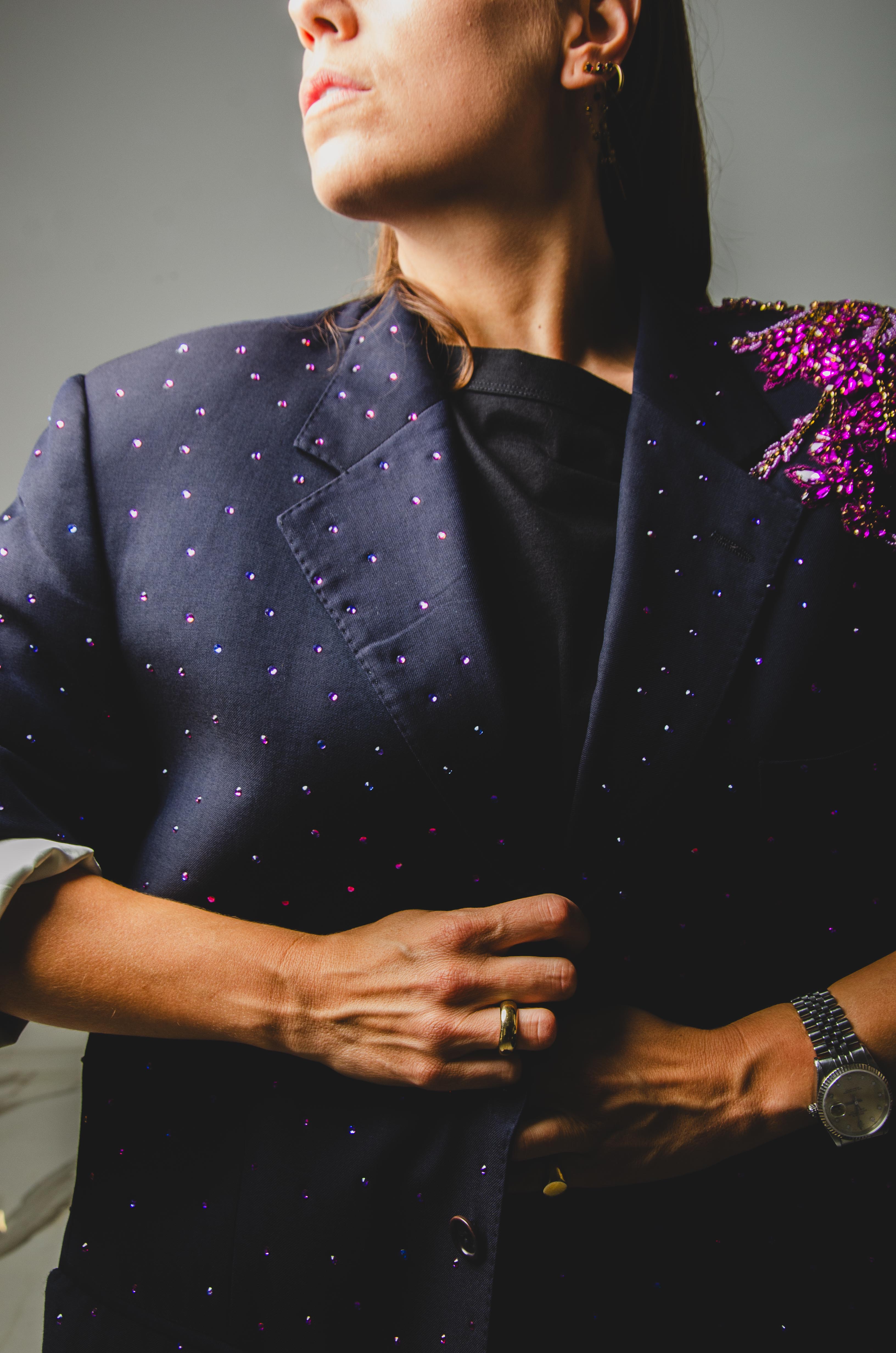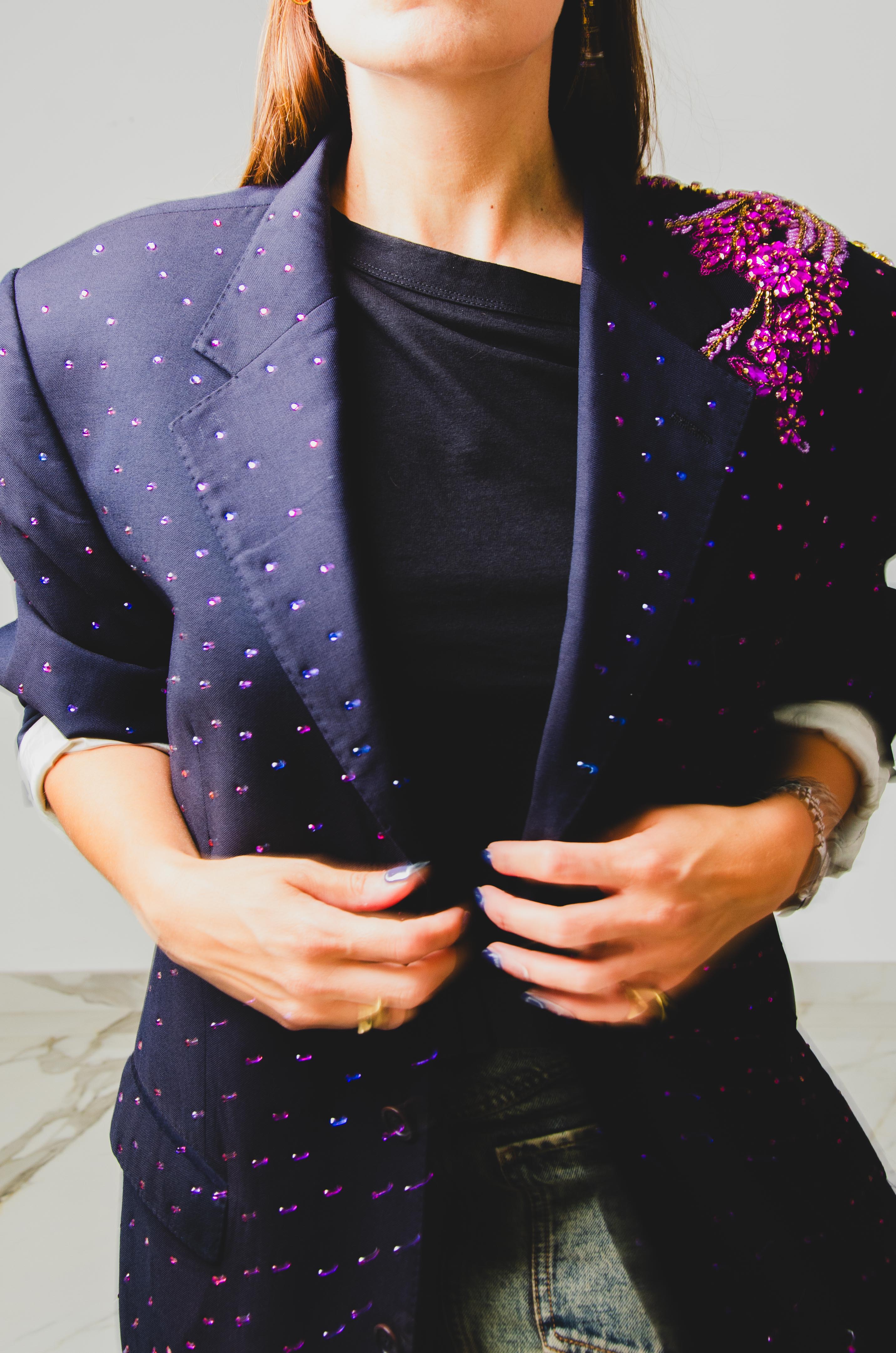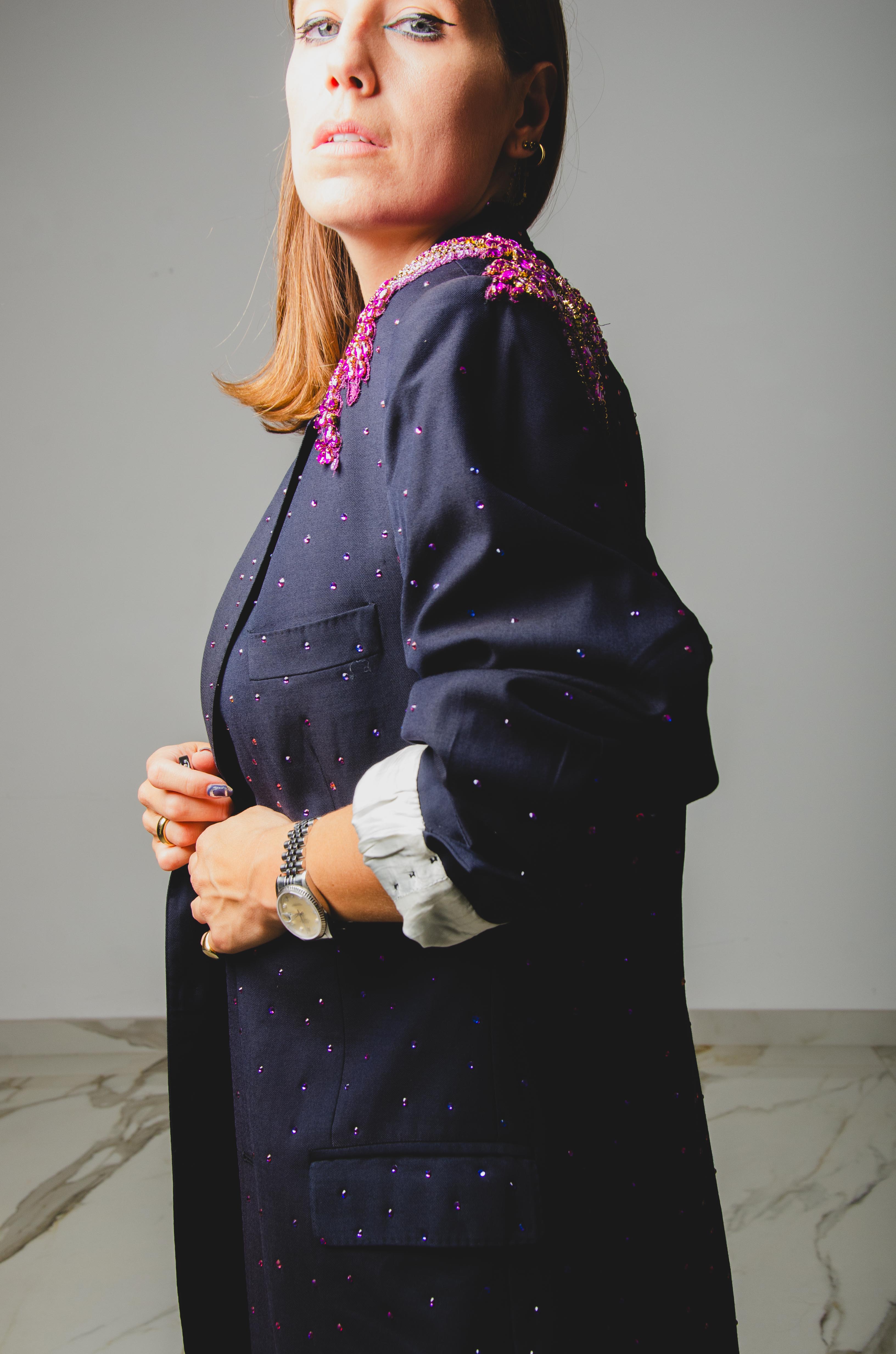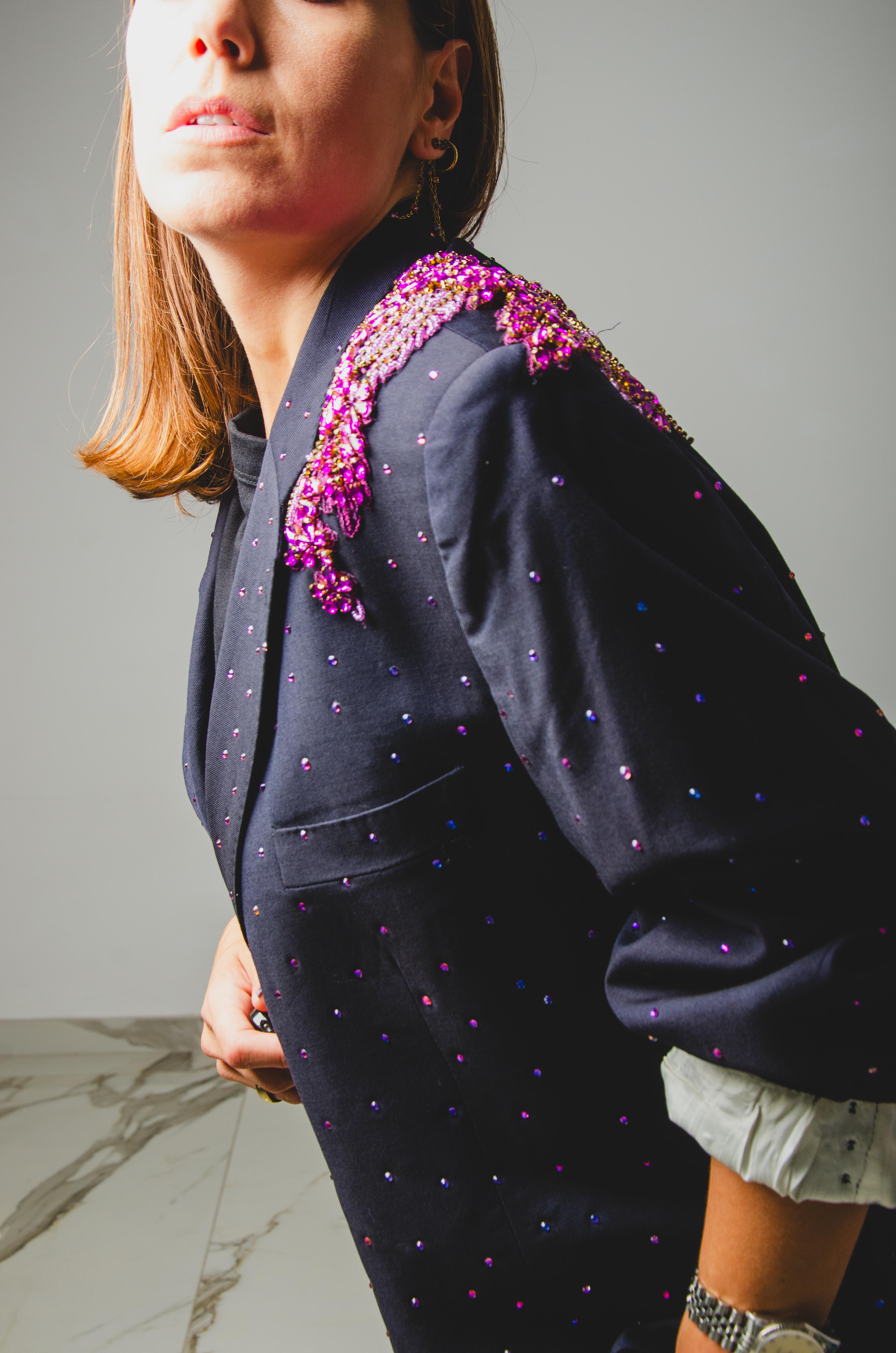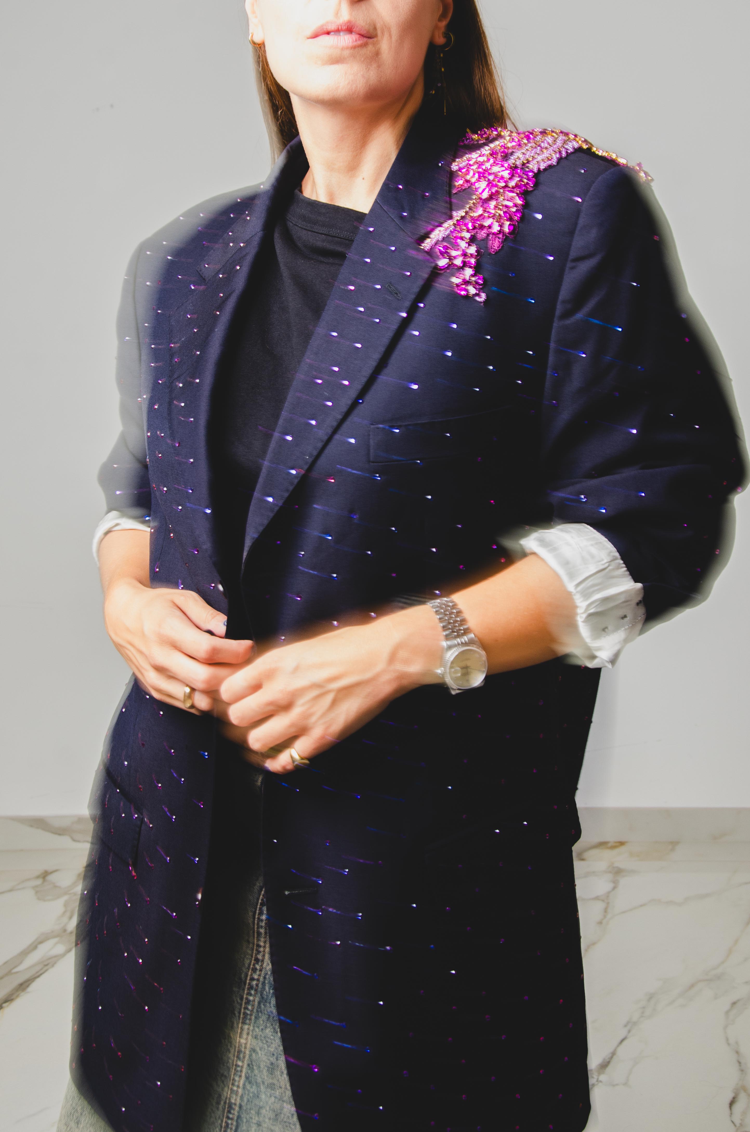 Introducing our upcycled vintage men's jacket designed for women, the perfect addition to any stylish individual's wardrobe. Each jacket is carefully crafted from vintage materials, making it not only stylish but sustainable. We personally modify vintage jackets that are far superior in quality to new generation jackets and embellish them with hand-dyed colors and embroidery.