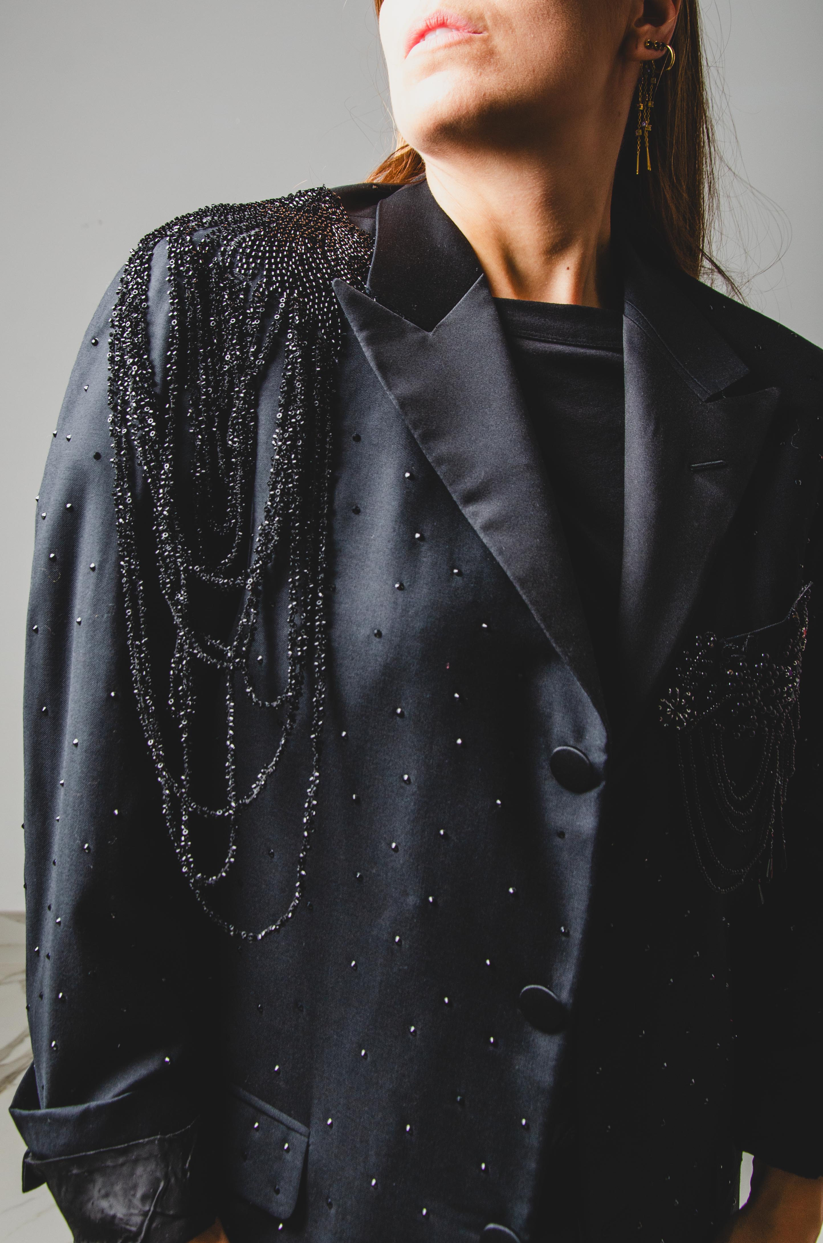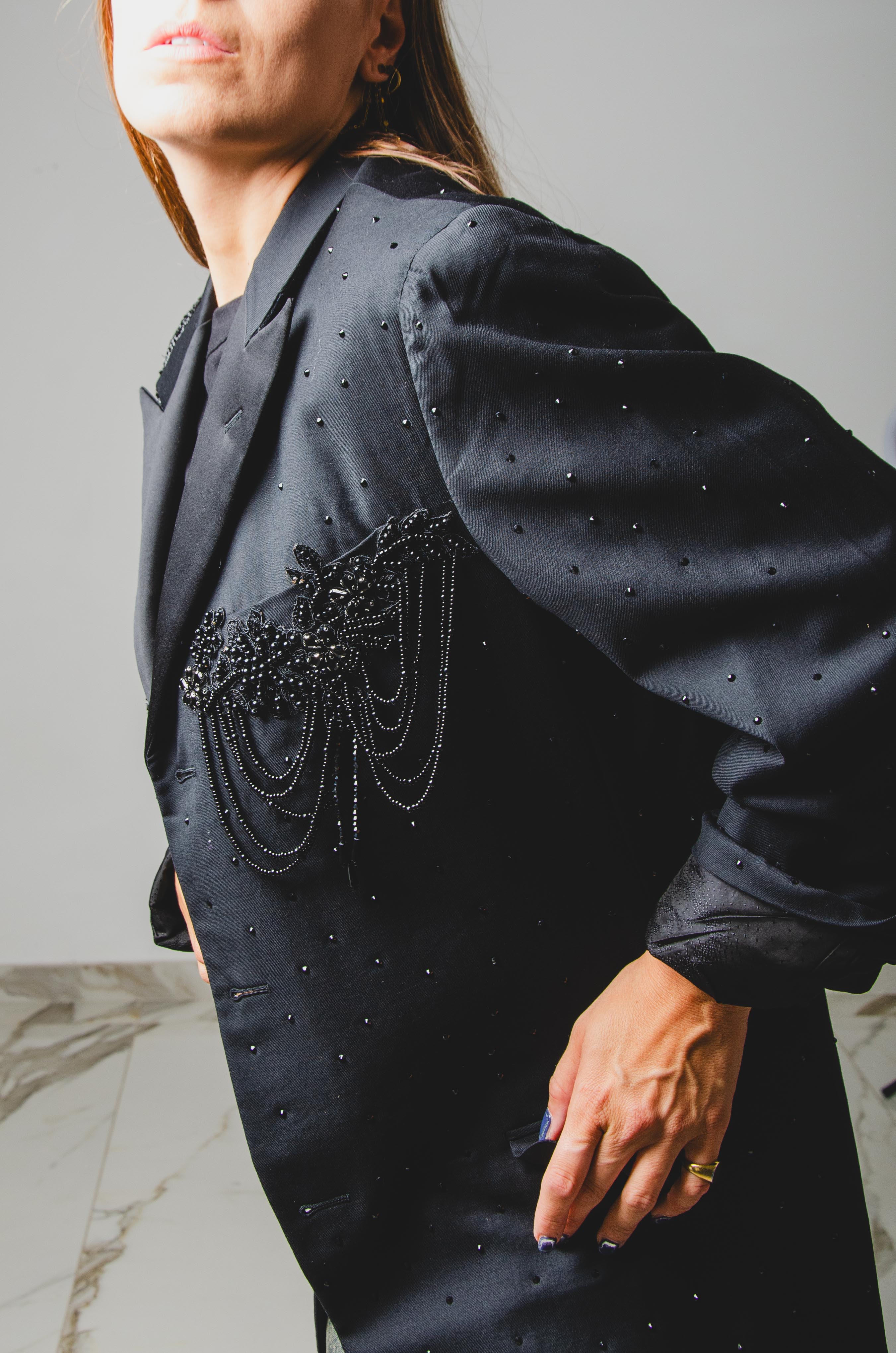 Introducing our upcycled vintage men's jacket designed for women, the perfect addition to any stylish individual's wardrobe. Each jacket is carefully crafted from vintage materials, making it not only stylish but sustainable. We personally modify vintage jackets that are far superior in quality to new generation jackets and embellish them with hand-dyed colors and embroidery.