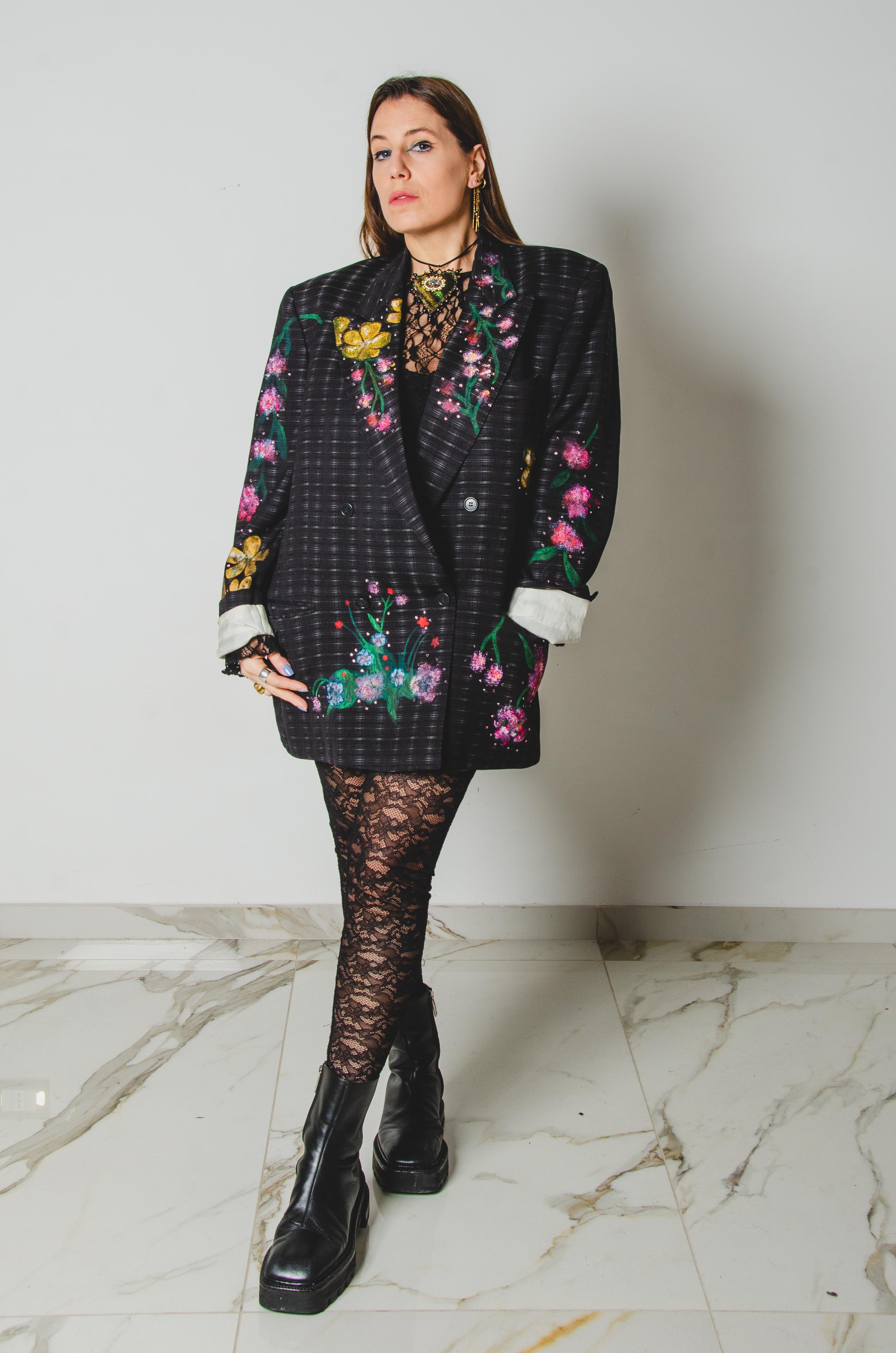 This versatile piece can be worn oversized by women for a chic and edgy look. Embrace the uniqueness and eco-consciousness of upcycled fashion with our upcycled vintage jacket.