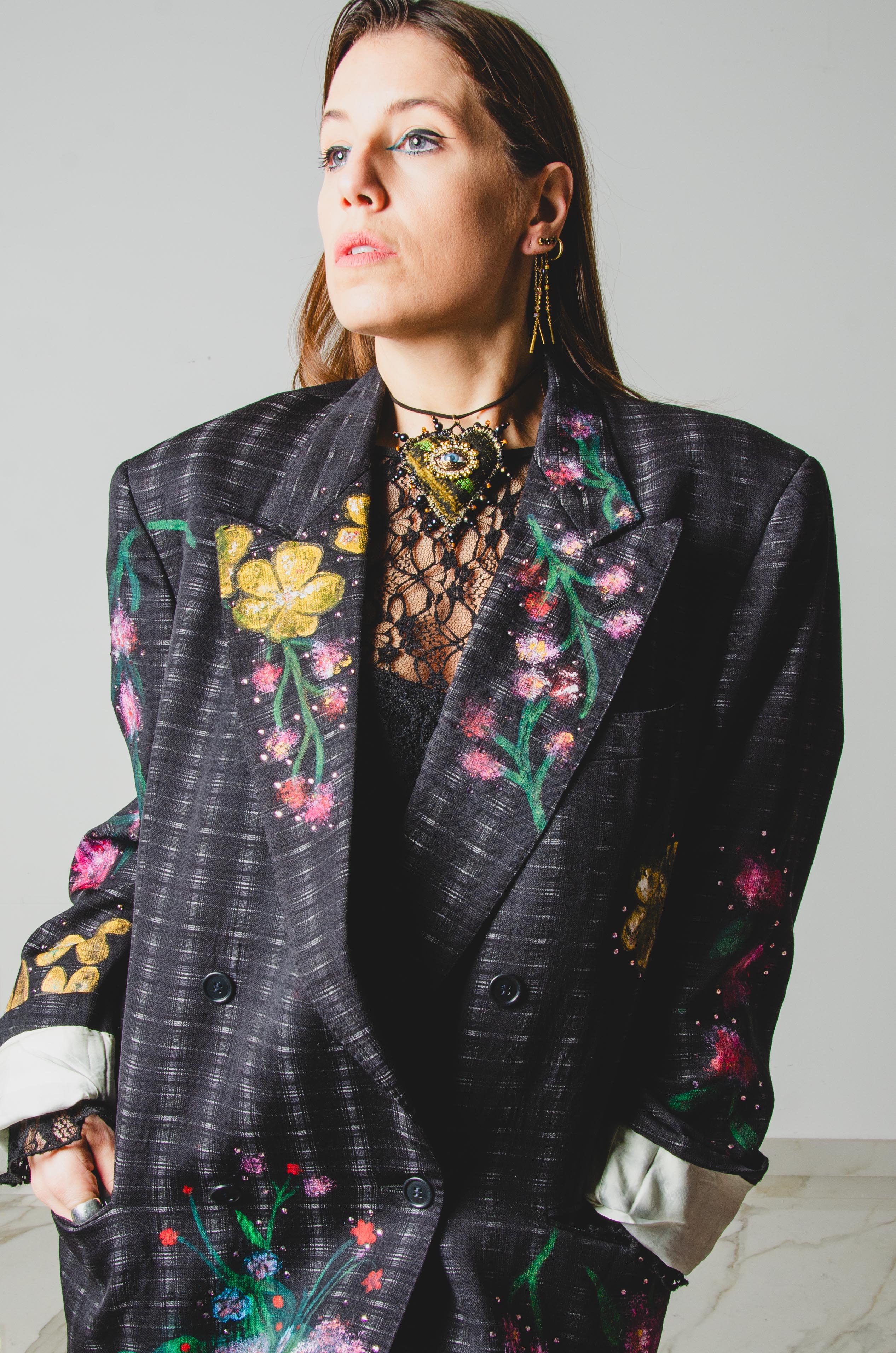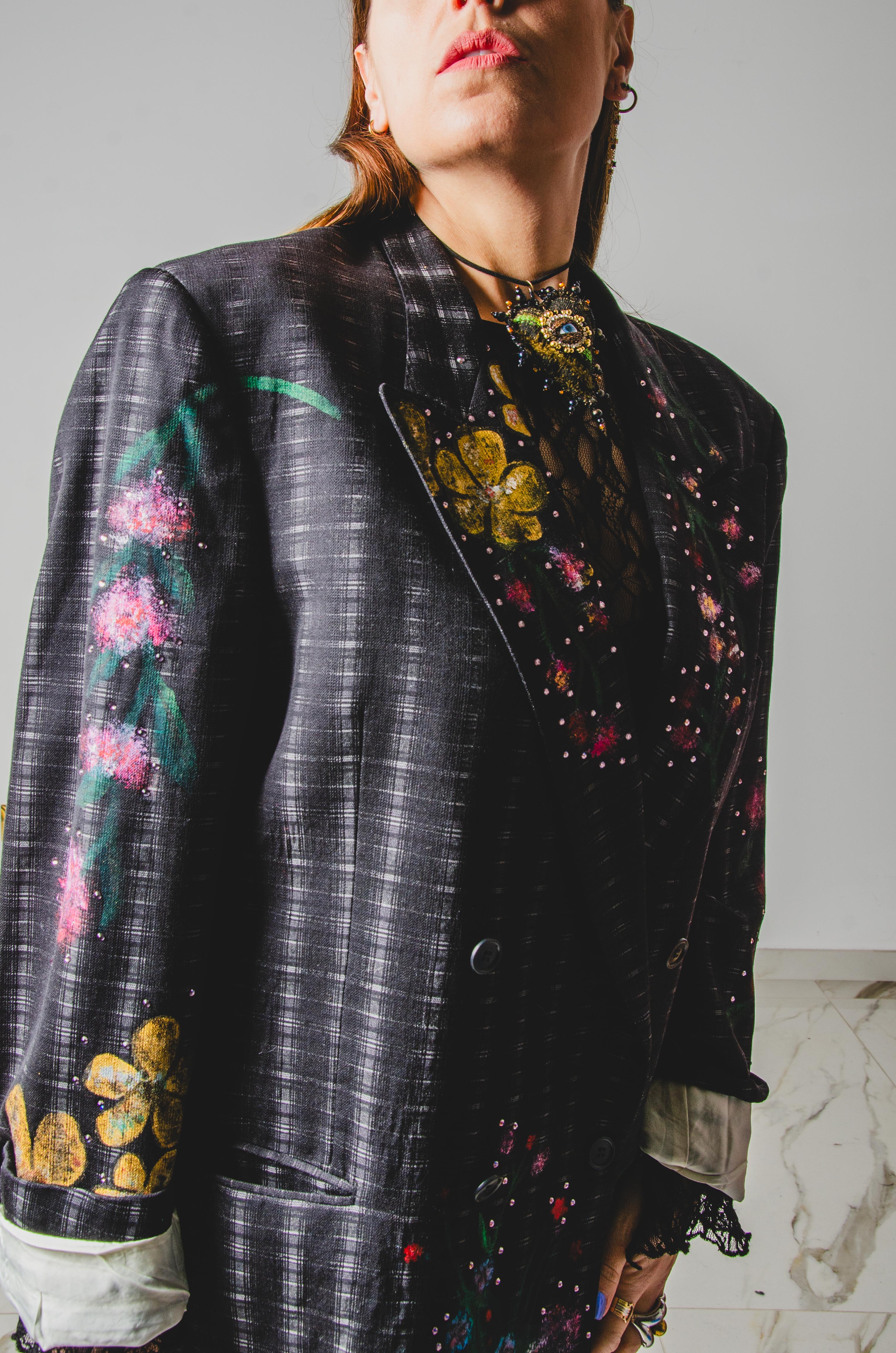 Introducing our upcycled vintage men's jacket designed for women, the perfect addition to any stylish individual's wardrobe. Each jacket is carefully crafted from vintage materials, making it not only stylish but sustainable. We personally modify vintage jackets that are far superior in quality to new generation jackets and embellish them with hand-dyed colors and embroidery.
