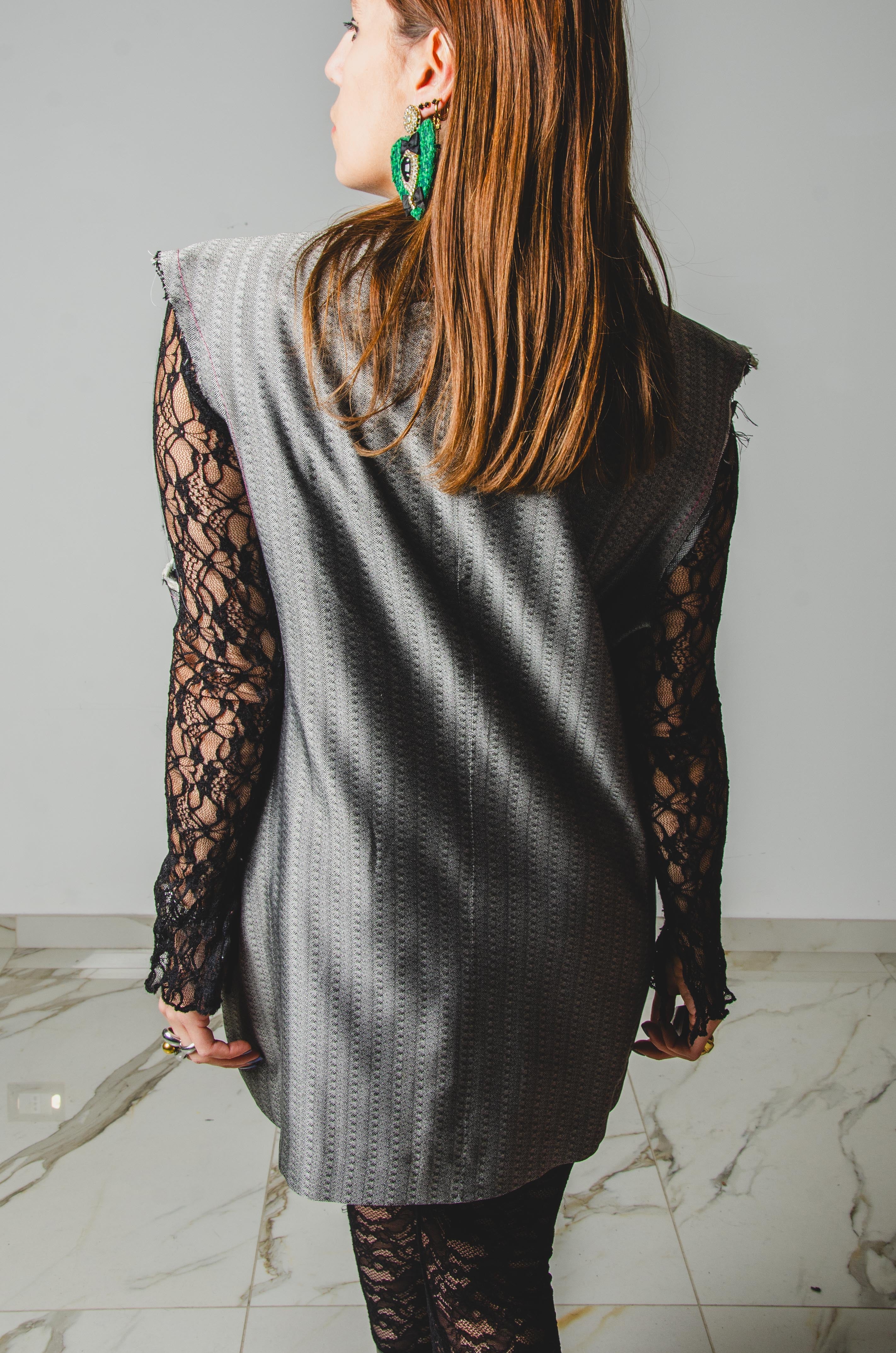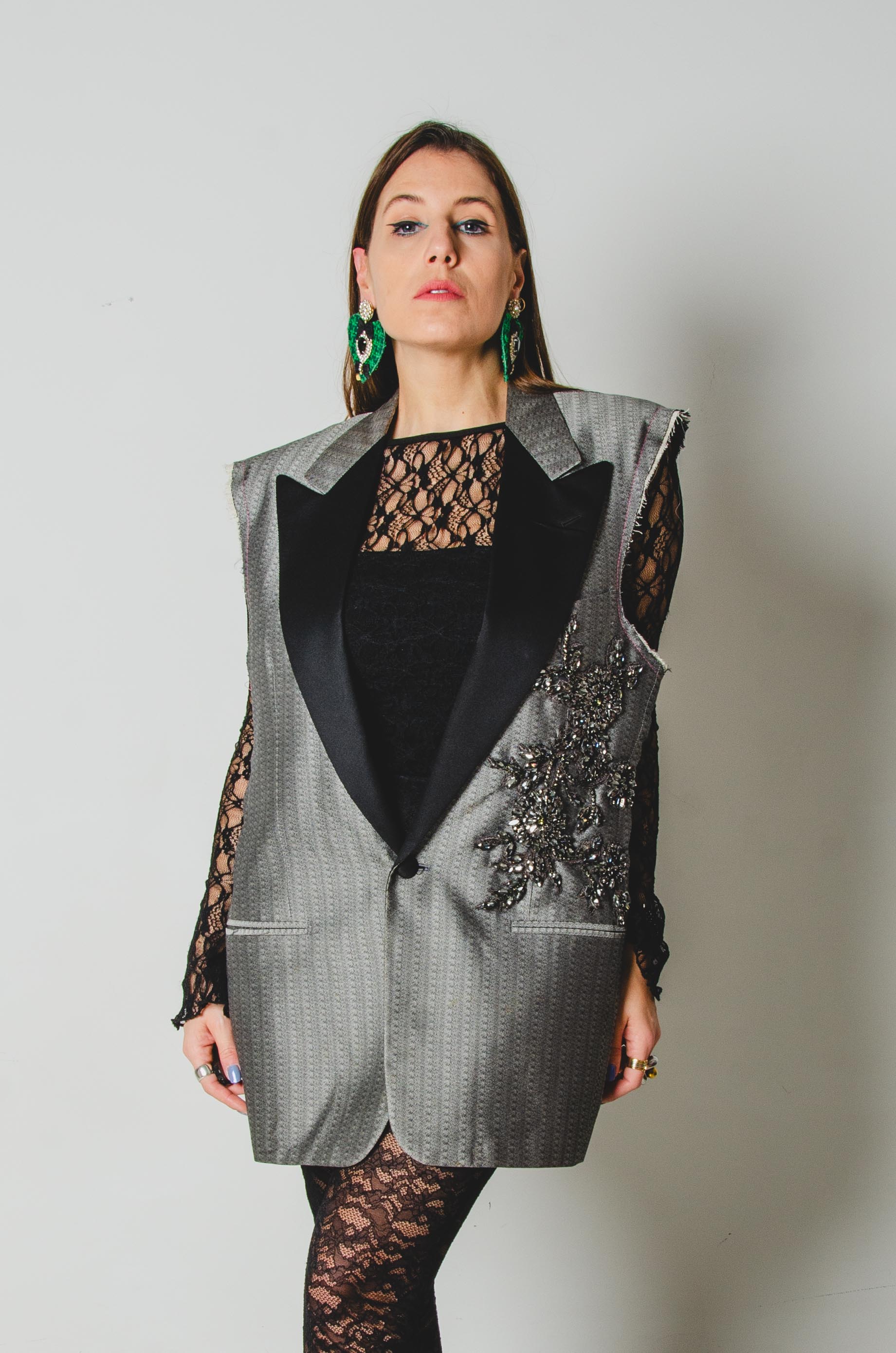This versatile piece can be worn oversized by women for a chic and edgy look. Embrace the uniqueness and eco-consciousness of upcycled fashion with our upcycled vintage jacket.