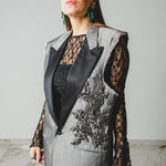 Introducing our upcycled vintage men's jacket designed for women, the perfect addition to any stylish individual's wardrobe. Each jacket is carefully crafted from vintage materials, making it not only stylish but sustainable. We personally modify vintage jackets that are far superior in quality to new generation jackets and embellish them with hand-dyed colors and embroidery.