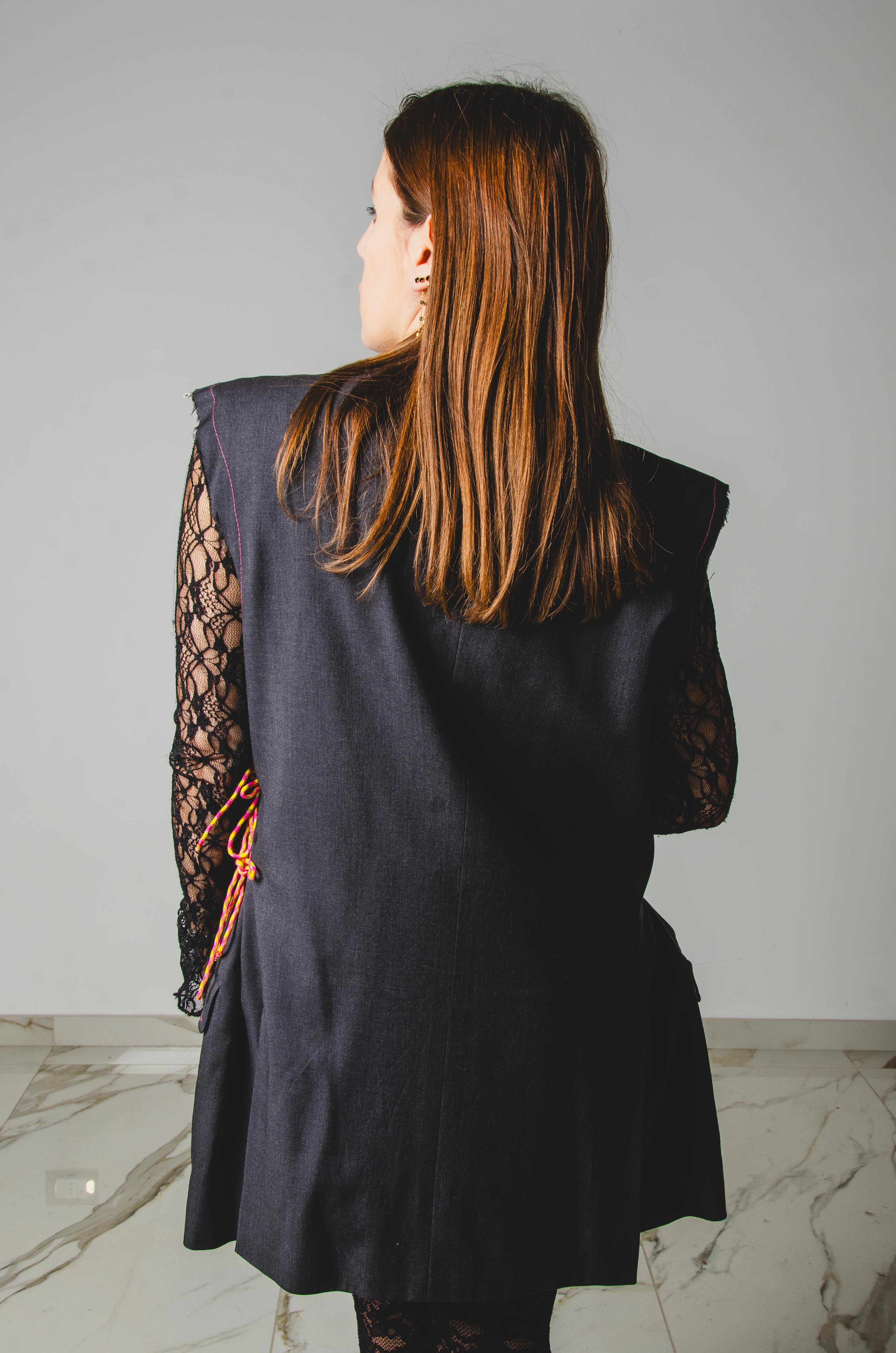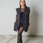 This versatile piece can be worn oversized by women for a chic and edgy look. Embrace the uniqueness and eco-consciousness of upcycled fashion with our upcycled vintage jacket.