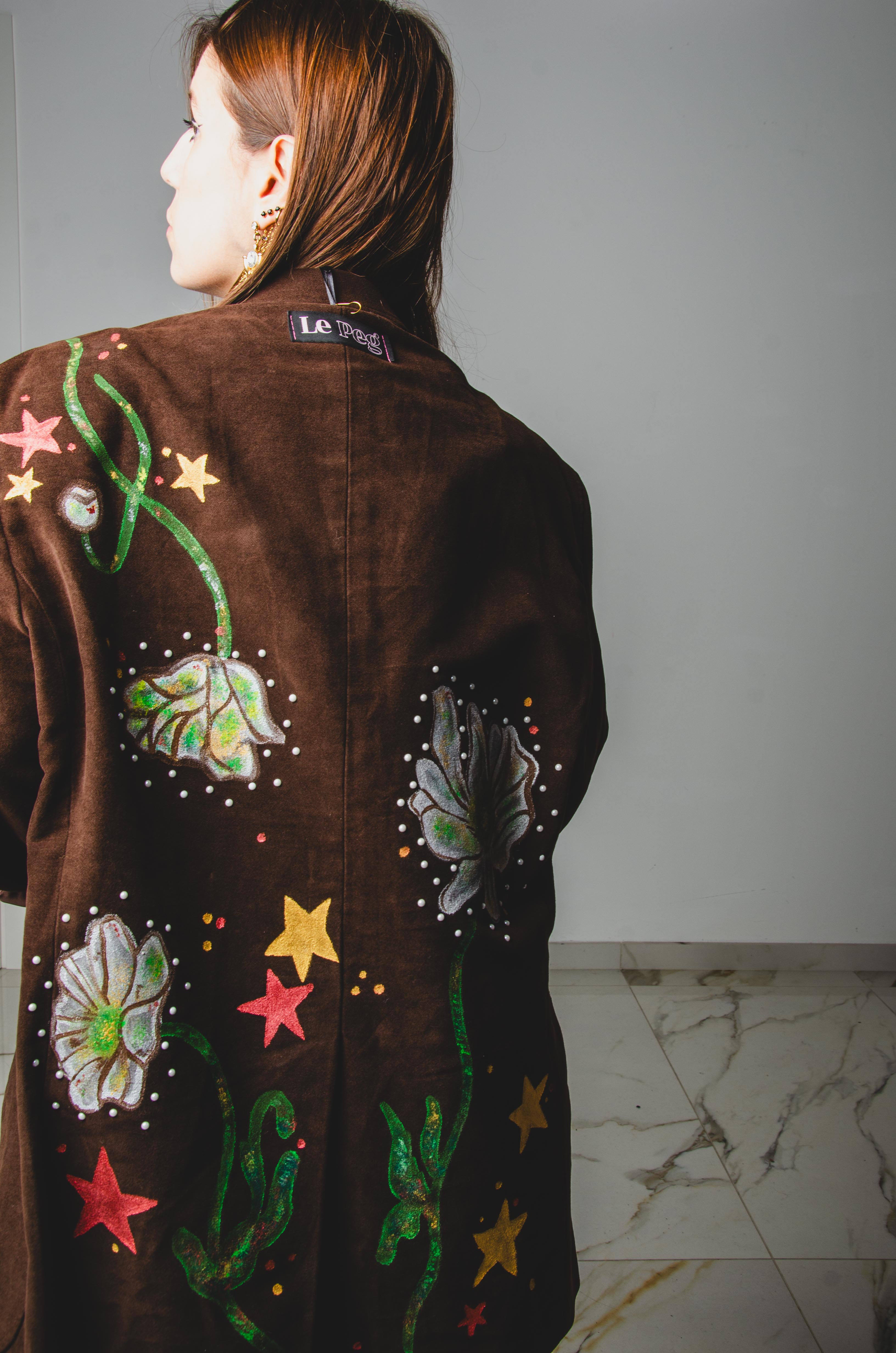 Introducing our upcycled vintage men's jacket designed for women, the perfect addition to any stylish individual's wardrobe. Each jacket is carefully crafted from vintage materials, making it not only stylish but sustainable. We personally modify vintage jackets that are far superior in quality to new generation jackets and embellish them with hand-dyed colors and embroidery.