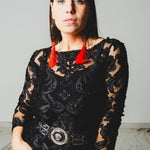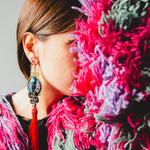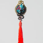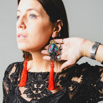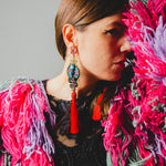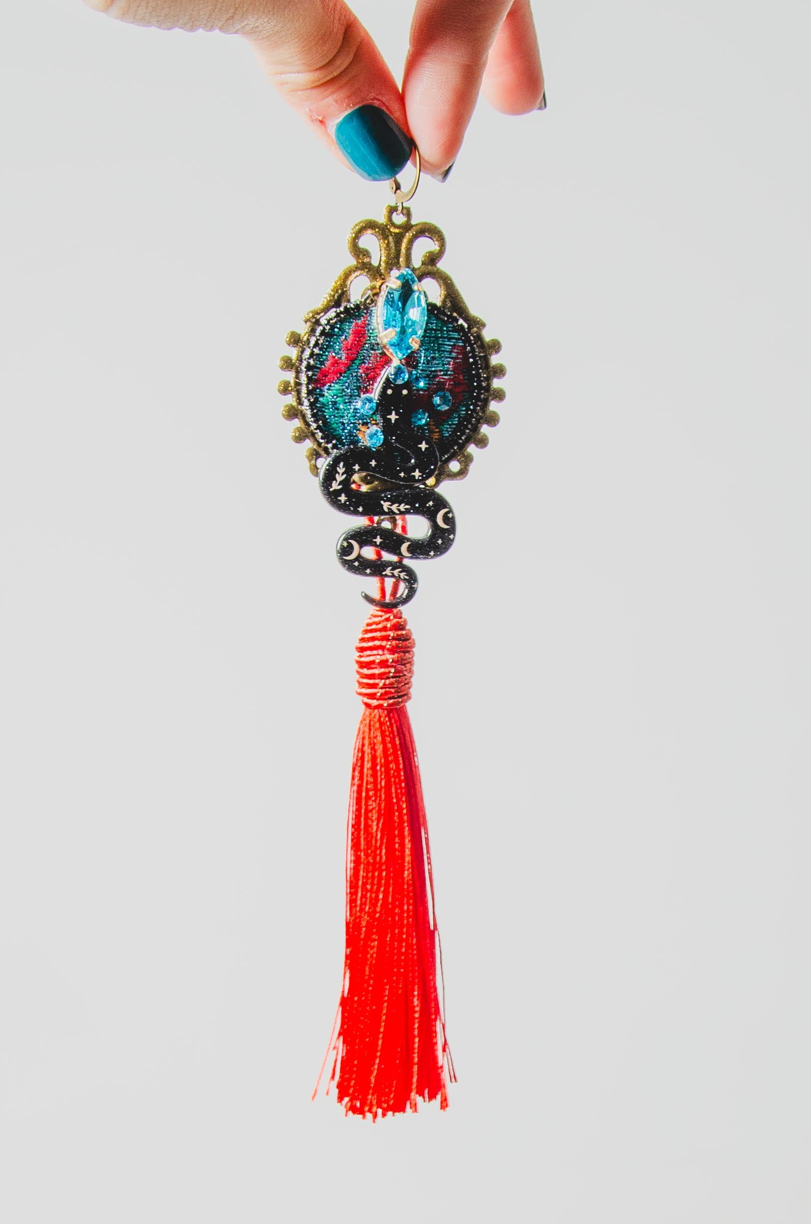 79 Orecchini pendenti con pietre azzurre - serpente centrale e frangia rossa
