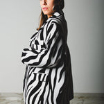 FUCHSIA JACQUARD BOMBER STYLE JACKET - REVERSIBLE IN BLACK VELVET FABRIC - CONTRASTING POCKETS