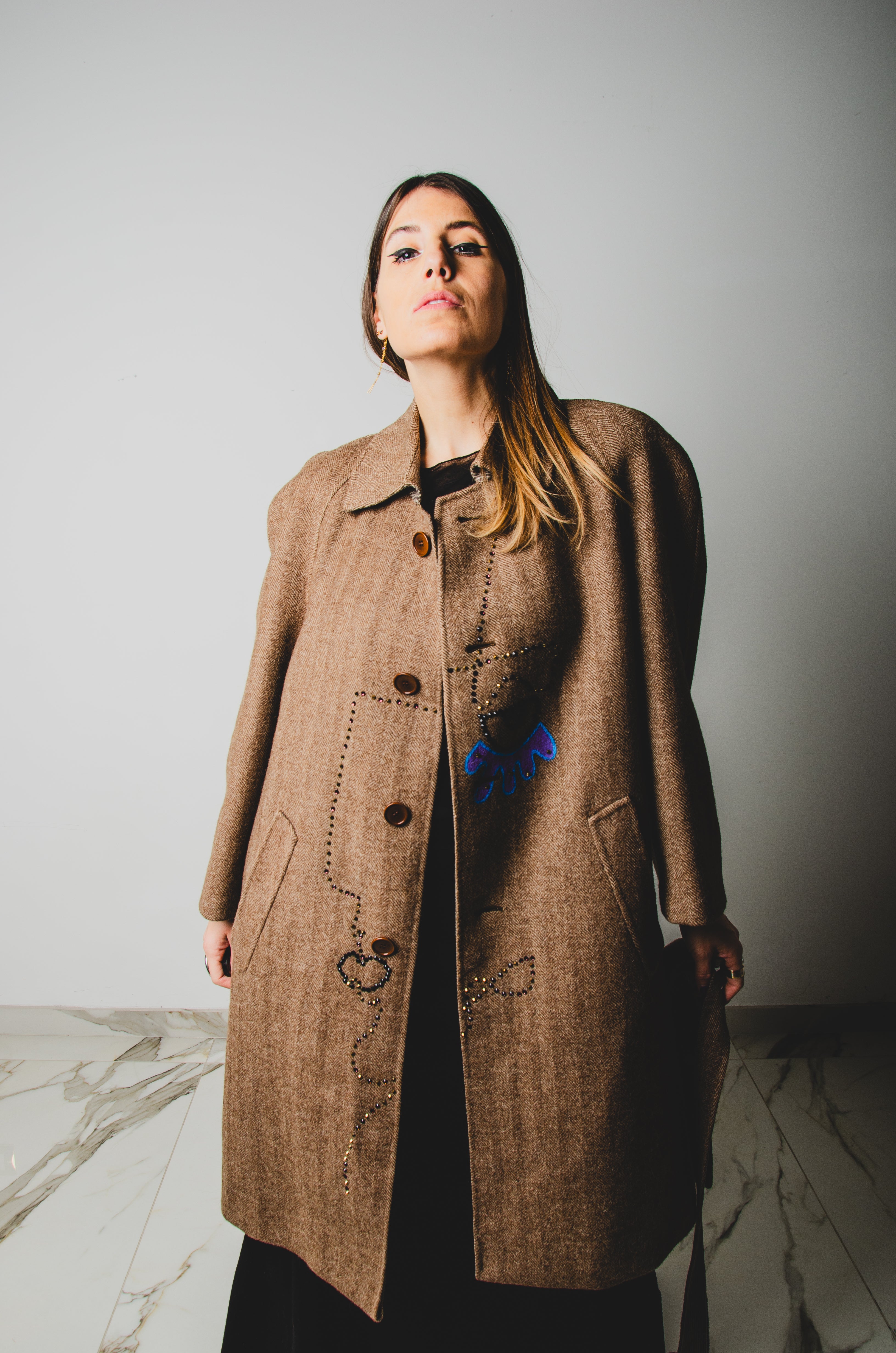 Introducing our Vintage Upcycling Men's Jacket, the perfect addition to any fashionable individual's wardrobe. Each jacket is carefully crafted from vintage materials, making it not only stylish but sustainable. The intricate hand-stitched sequin embroidery adds a touch of glamor and individuality to the piece, ensuring that no two jackets are exactly alike. This versatile garment can be worn oversized by women for a chic and bold look. Embrace the uniqueness and eco-consciousness of upcycled fashion with our vintage upcycling jacket.