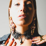 119 Collana chocker 100% Handmade con passamaneria nera di frange e ciondolo pendente