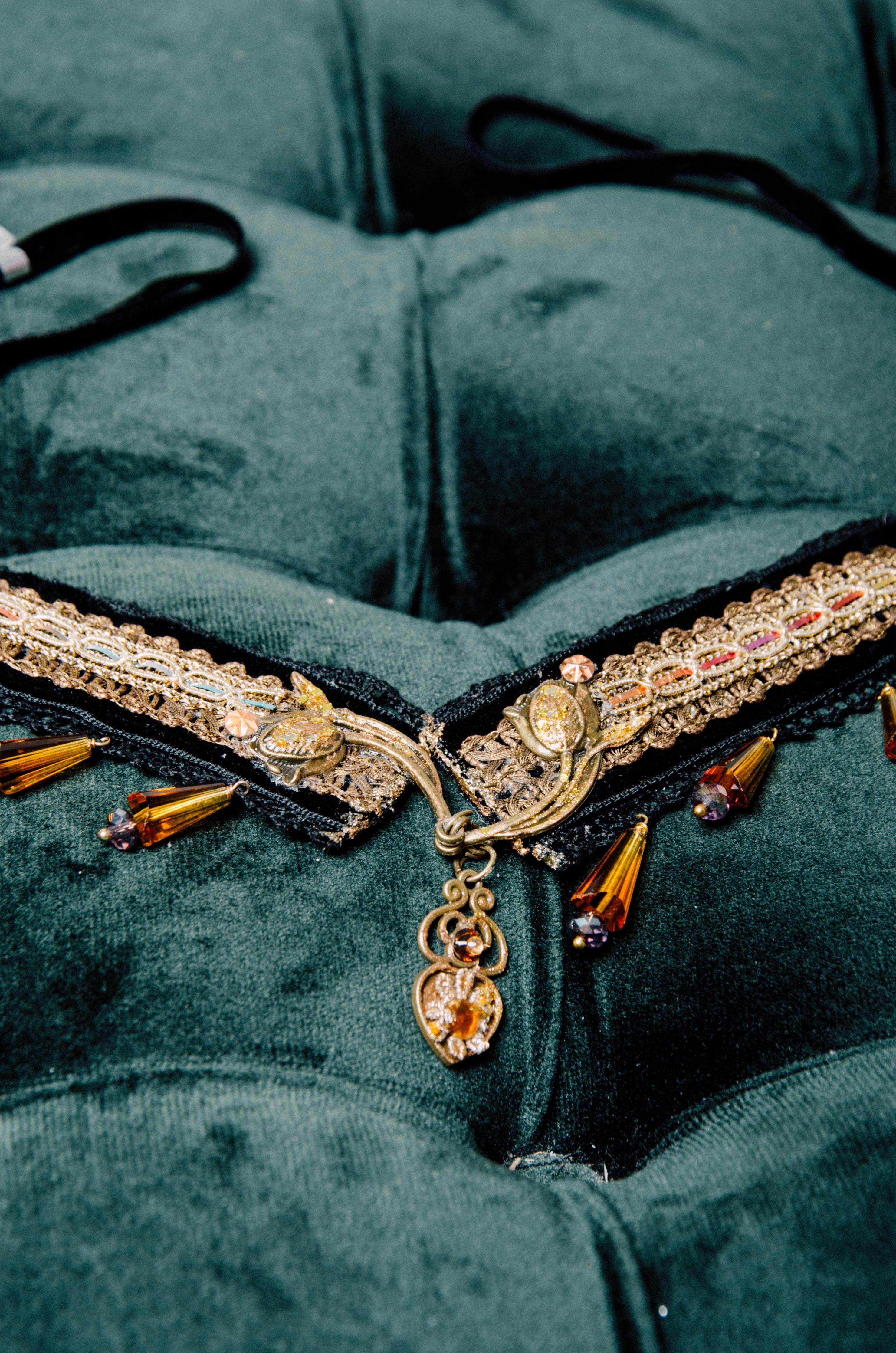 121 Collana chocker 100% Handmade con passamaneria nera e oro e pendente centrale
