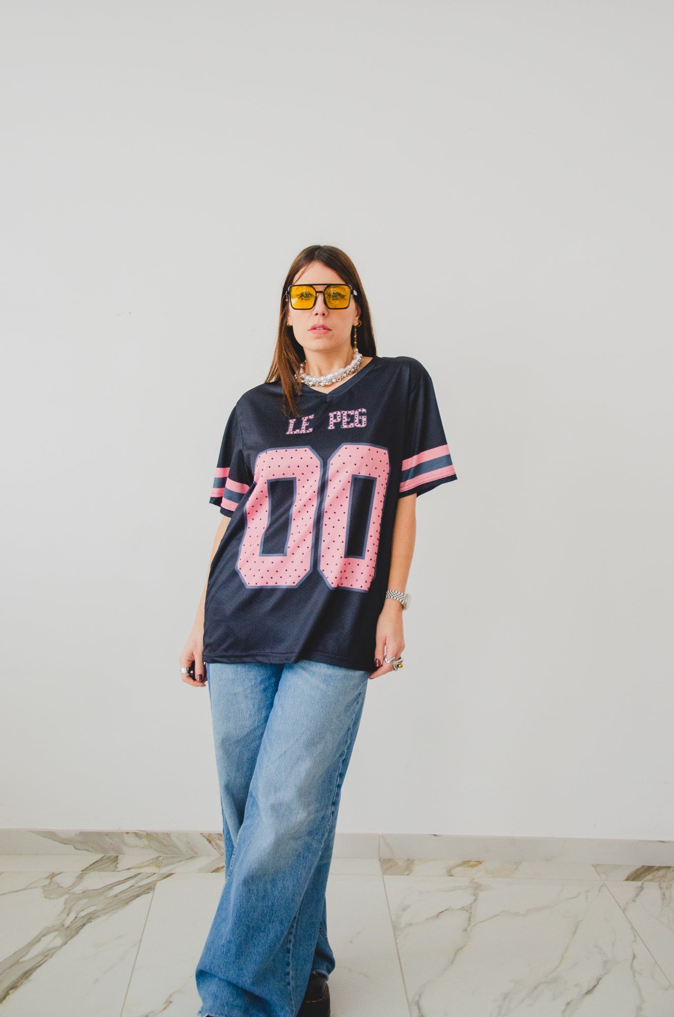 T-shirt sportiva a maniche corte dal carattere deciso e contemporaneo, ispirata alle divise athletic e reinterpretata in chiave fashion.
