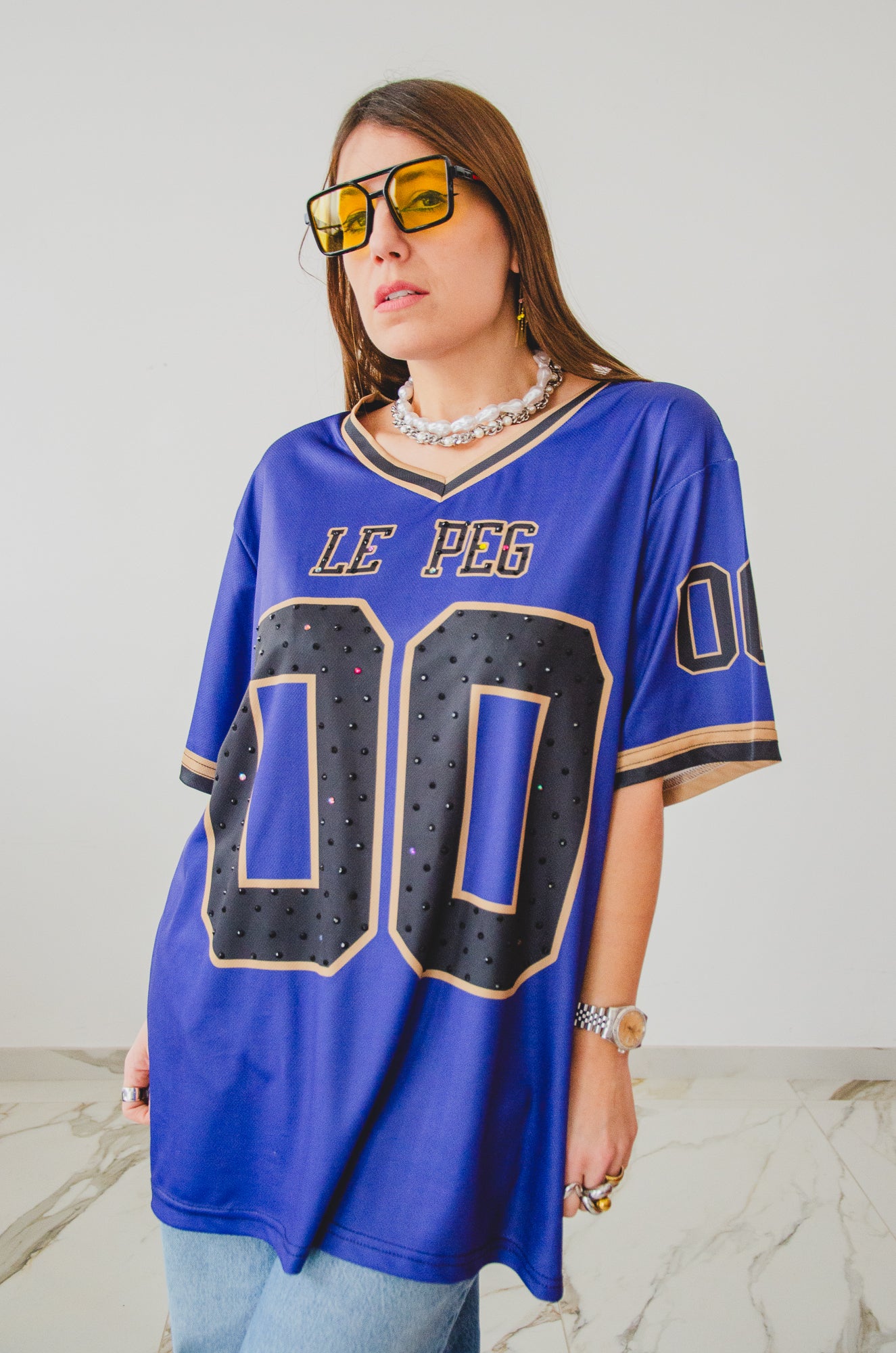 T-shirt sportiva a maniche corte dal carattere deciso e contemporaneo, ispirata alle divise athletic e reinterpretata in chiave fashion.