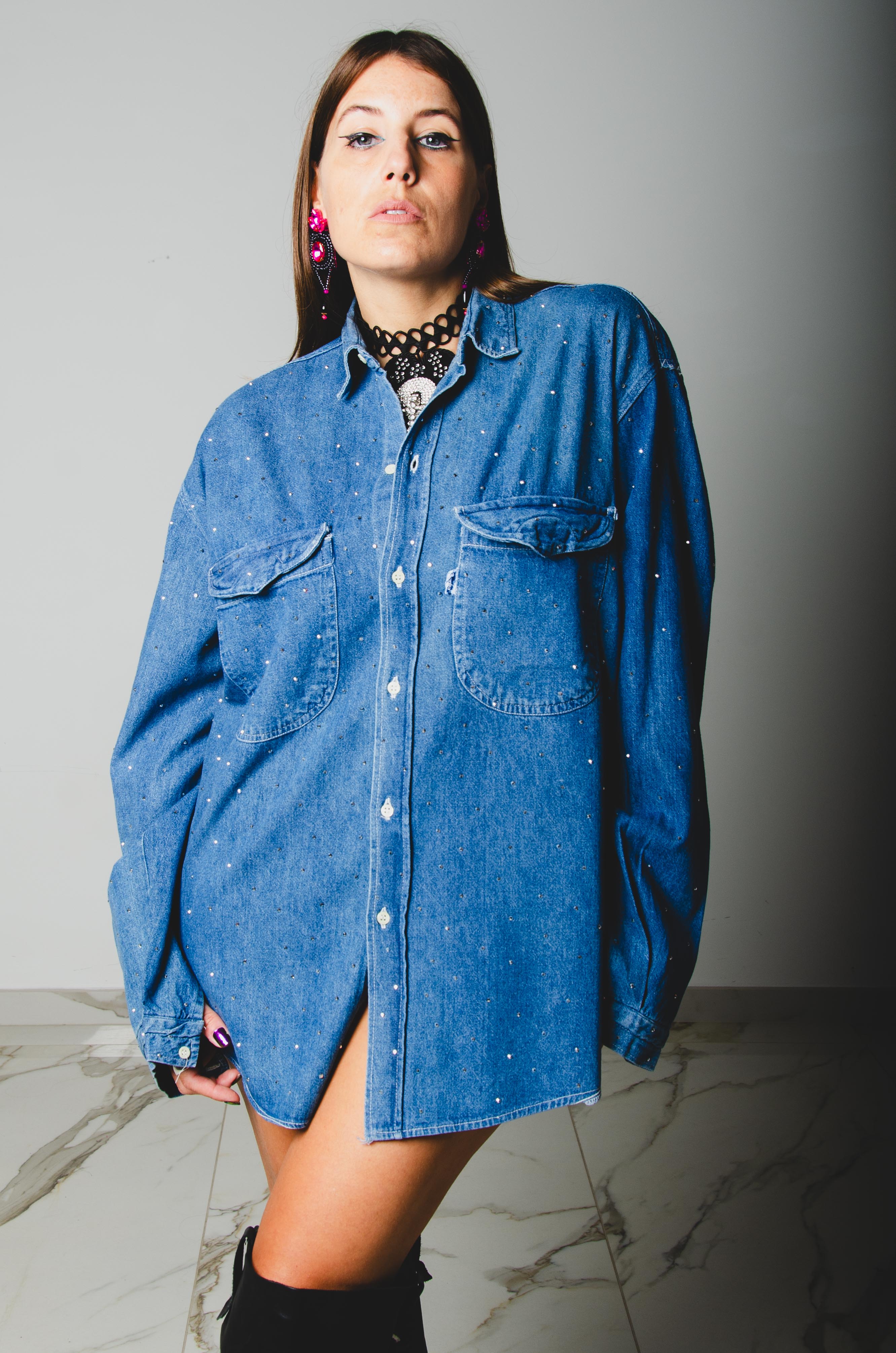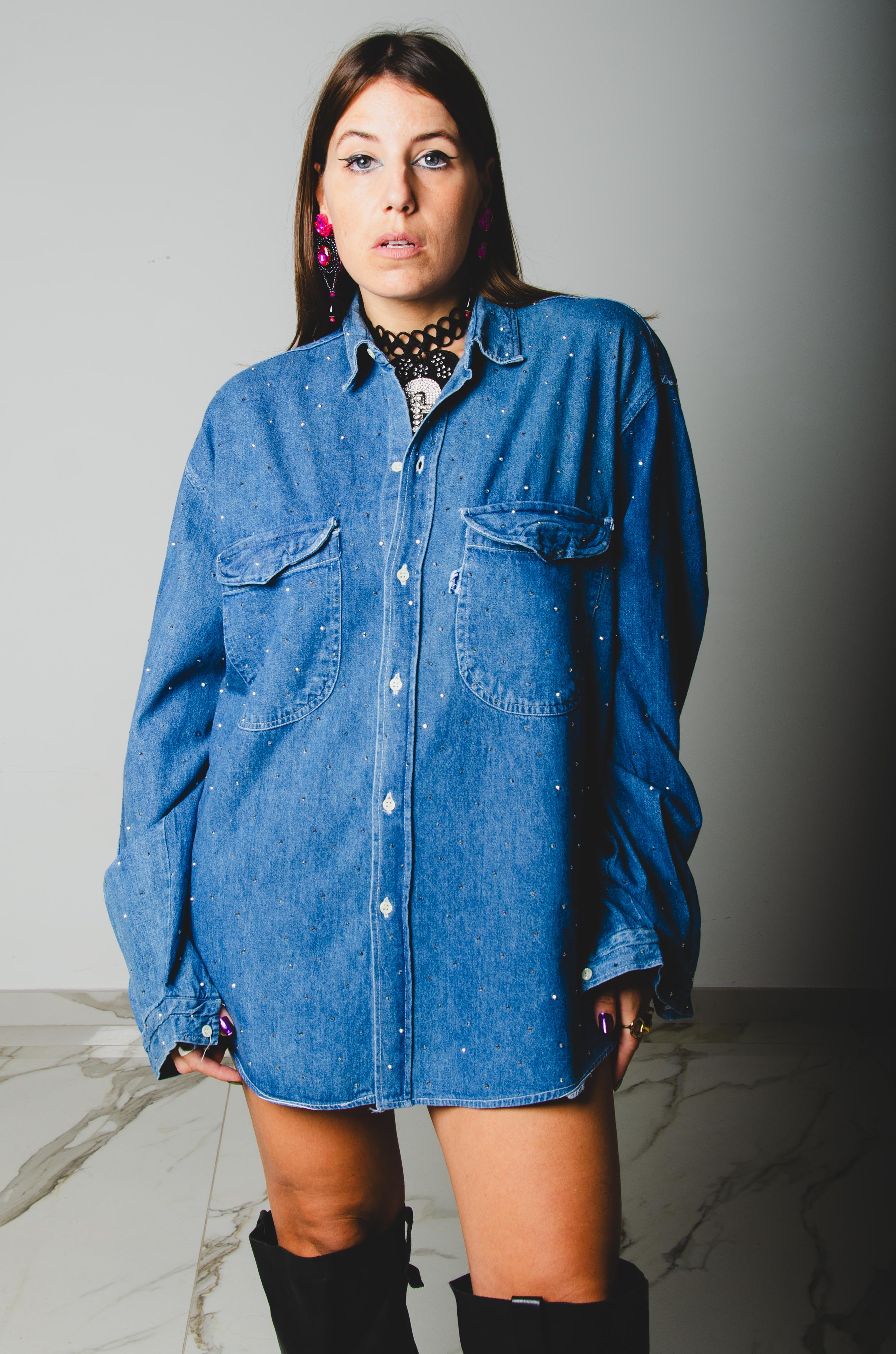Le nostre camicie sono personalizzate a mano, utilizzando capi di alta qualità provenienti da abiti vintage selezionati. Ogni camicia è progettata per vestire oversize le figure più minute e adattarsi alle fisicità curvy con un'unica taglia.