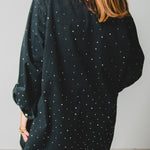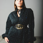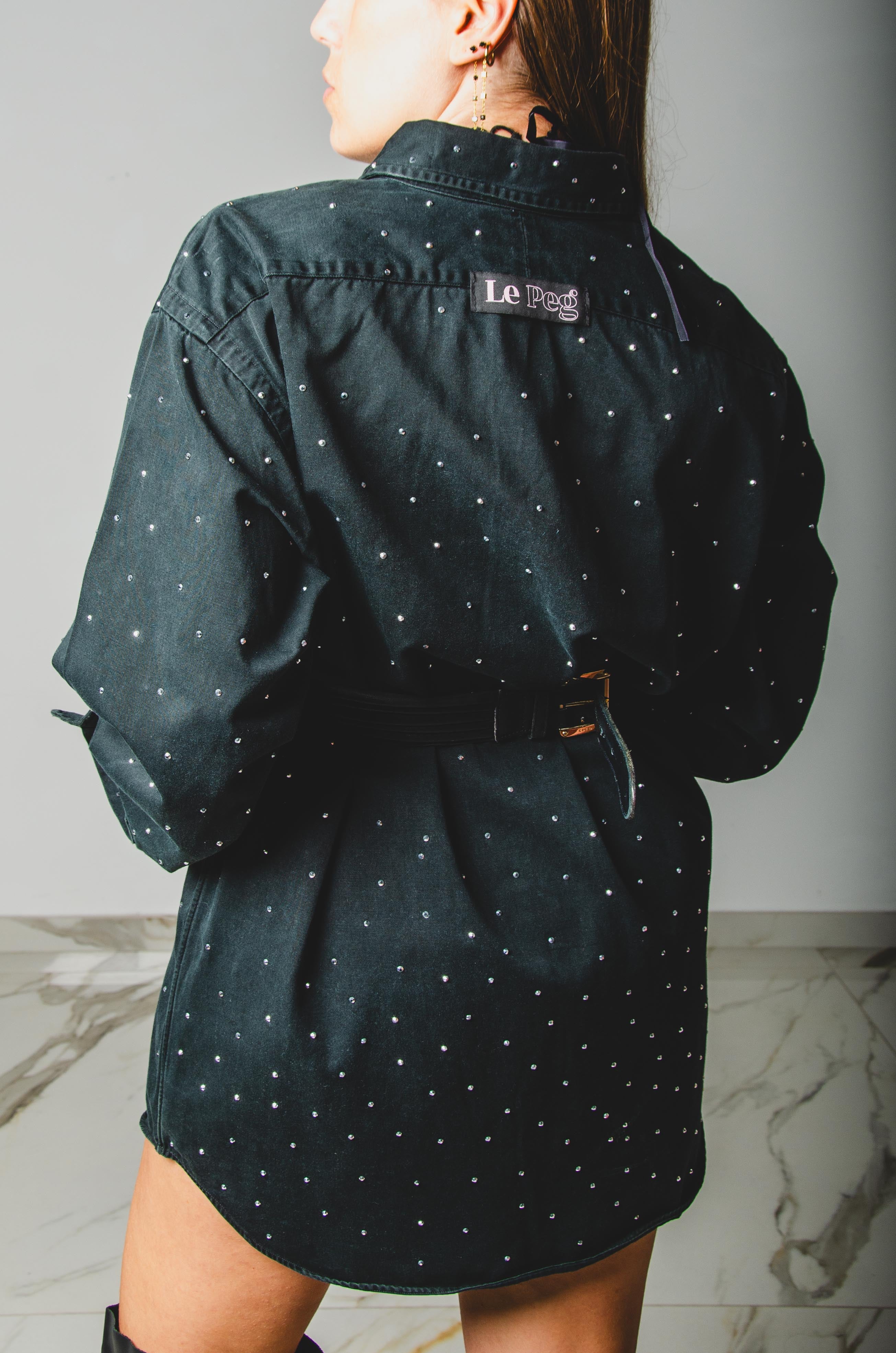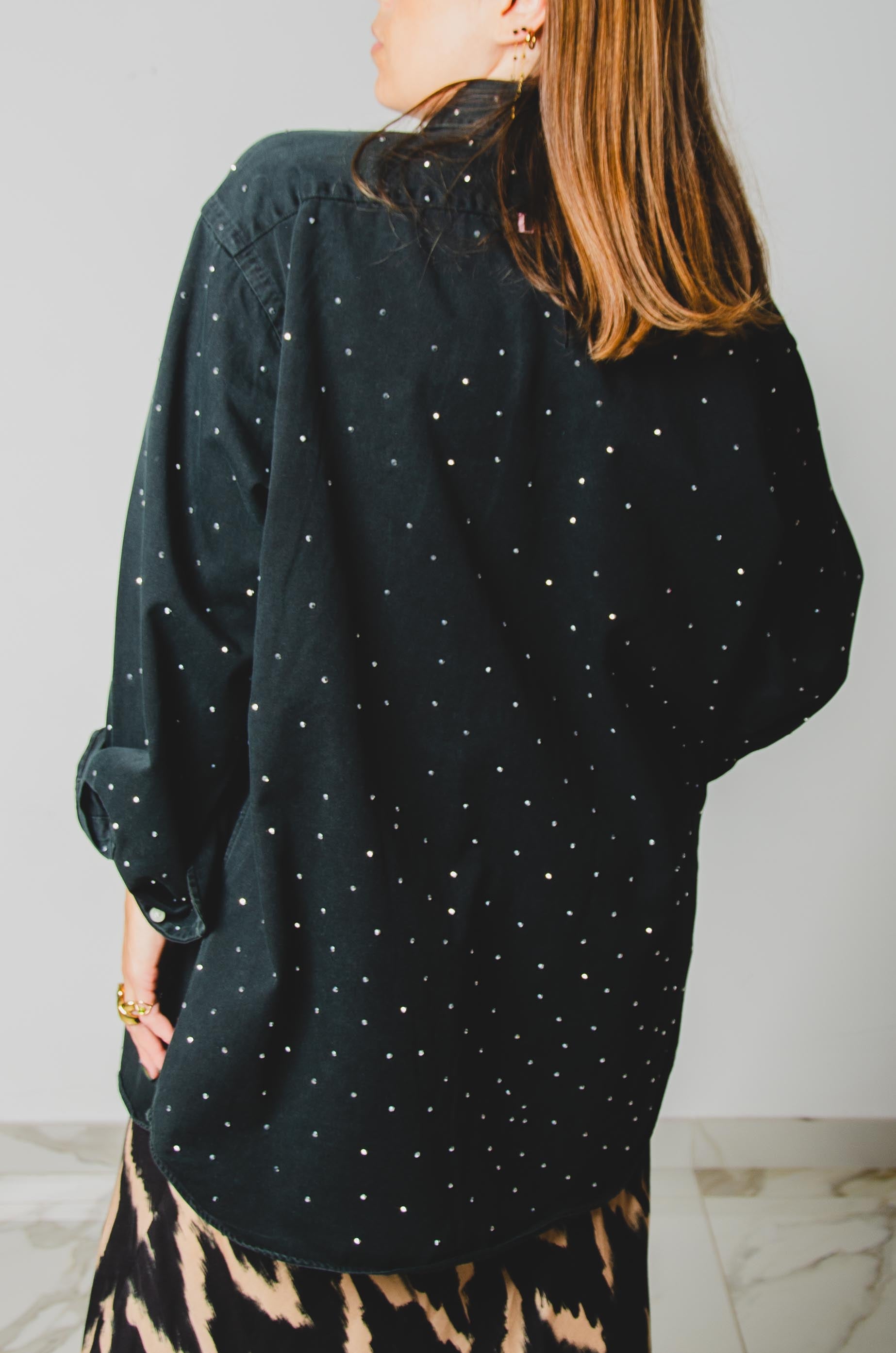 164 Camicia vintage maschile nera RALPH LAUREN in cotone pesante con CIRCA 700 strass argento Tg M - vestibilità over