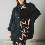 Le nostre camicie sono personalizzate a mano, utilizzando capi di alta qualità provenienti da abiti vintage selezionati. Ogni camicia è progettata per vestire oversize le figure più minute e adattarsi alle fisicità curvy con un'unica taglia.