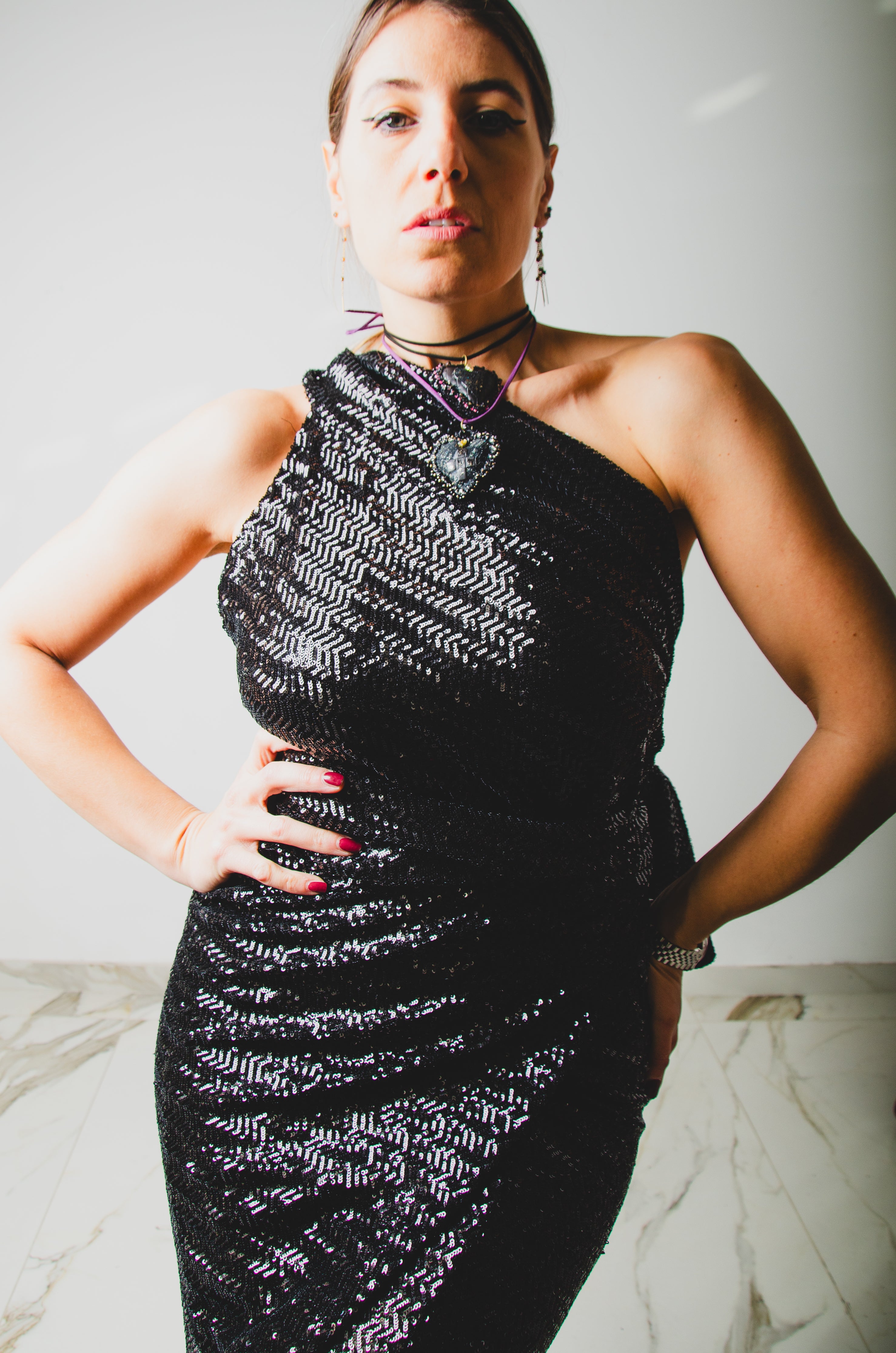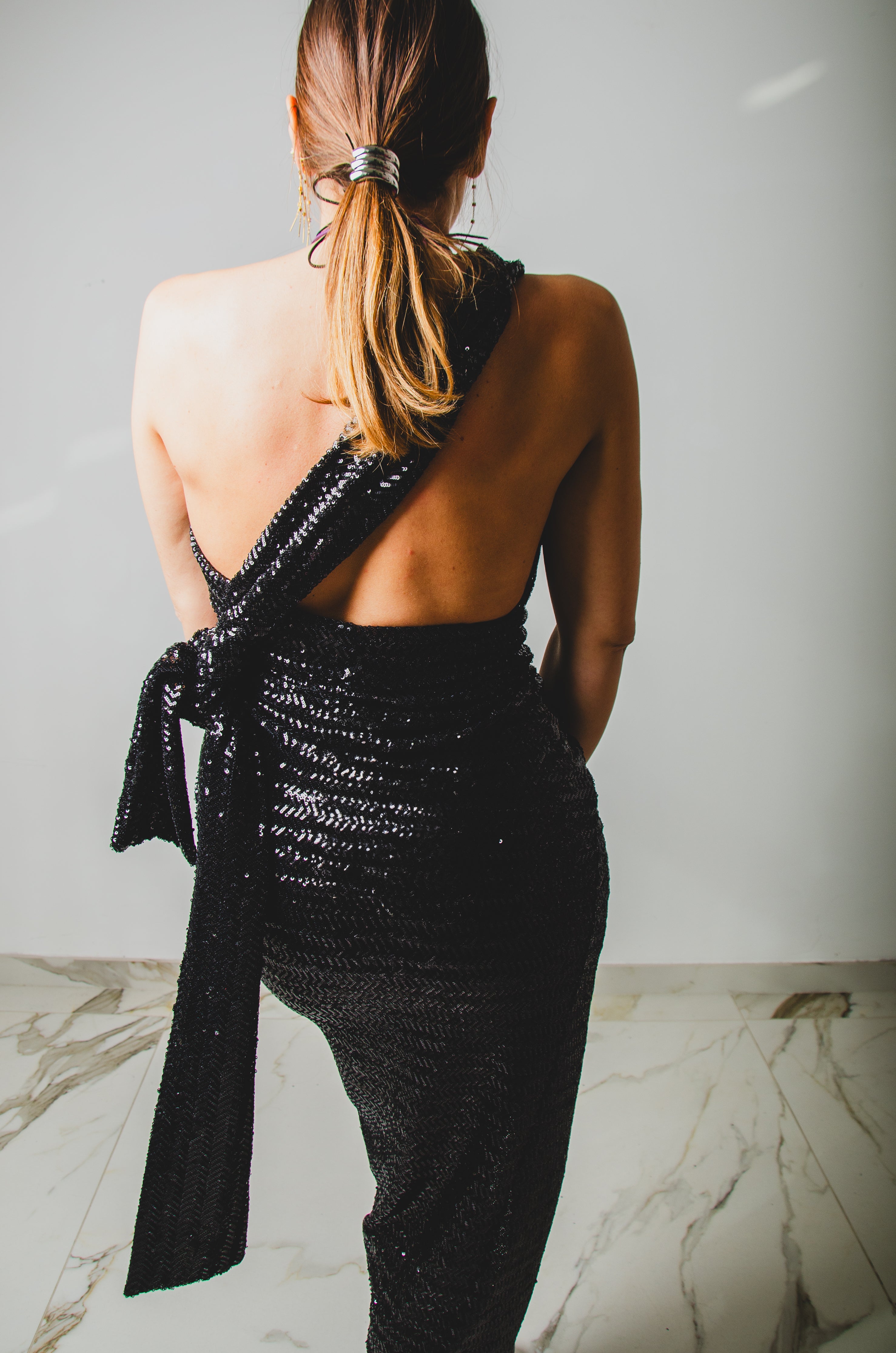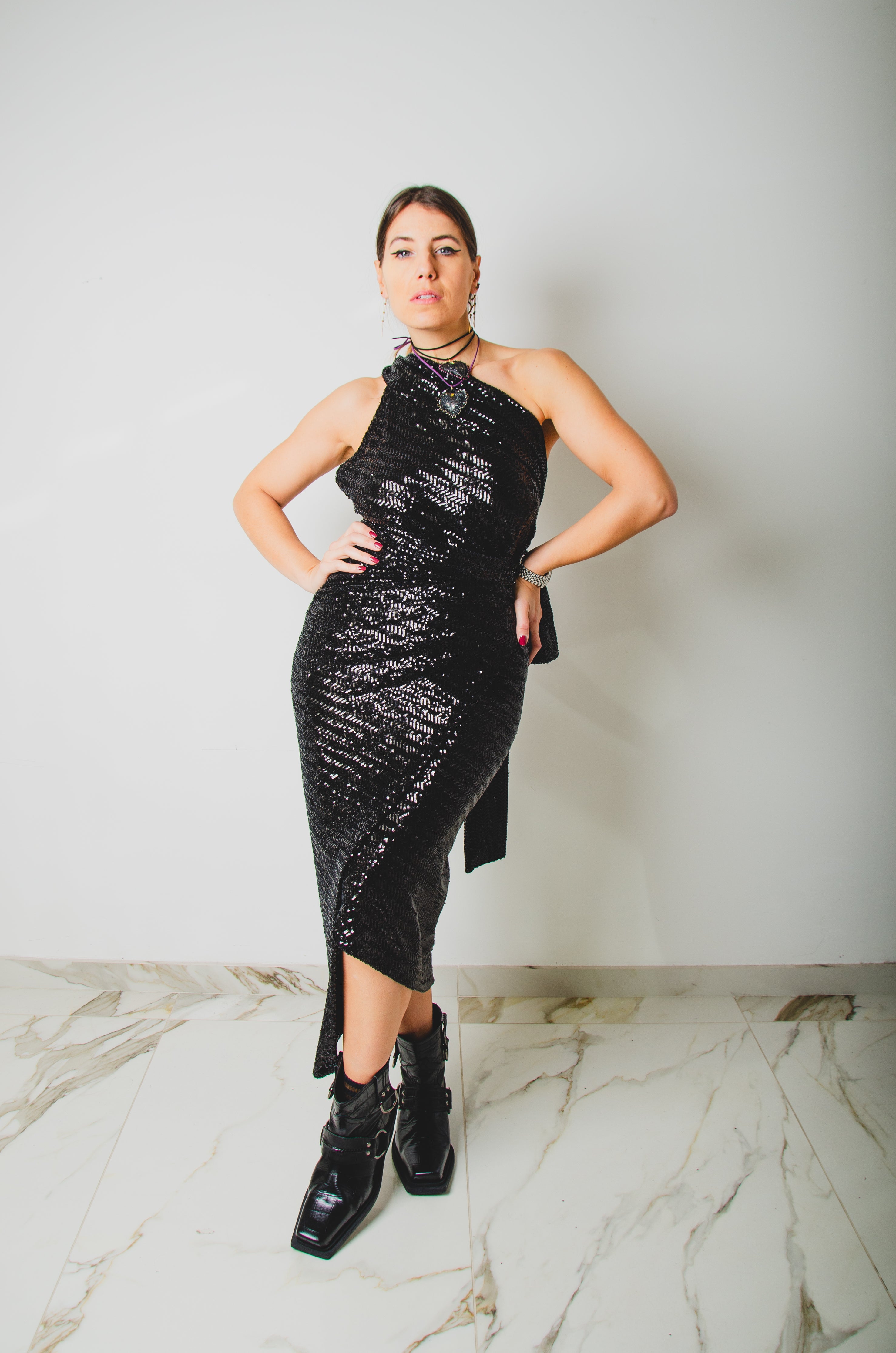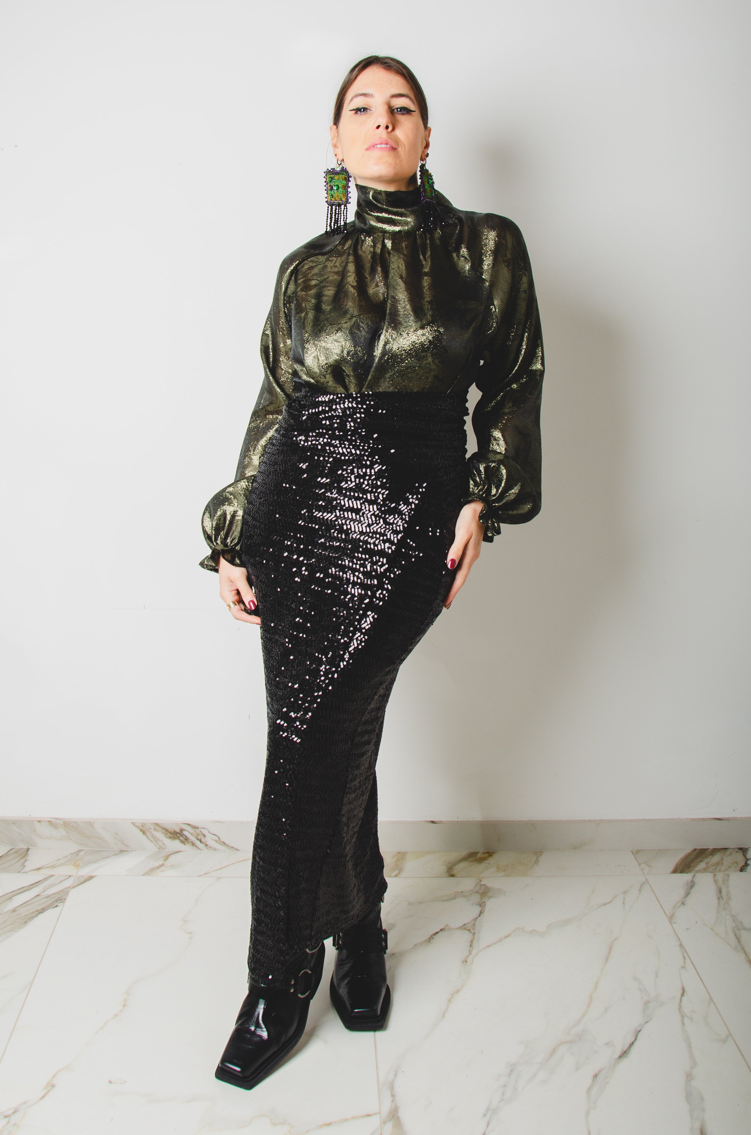 200 Gonna multiposizione MIRI in paillettes nere - elasticizzata