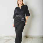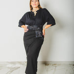 298 Gonna multiposizione MIRI in tessuto elastico nero con cintura camouflage