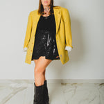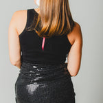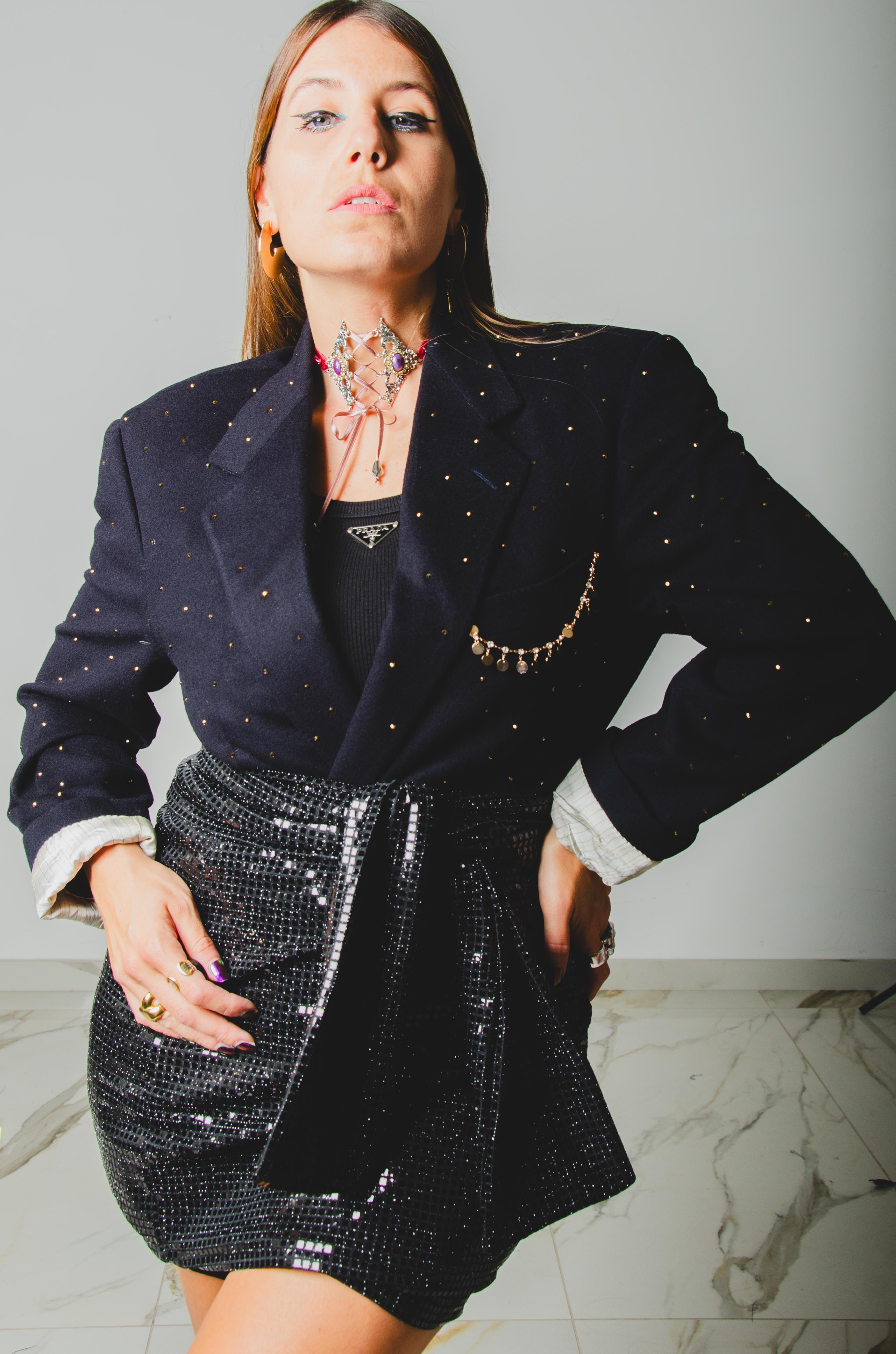 314 Gonna multiposizione mini MIRI in tessuto elasticocon paillettes piatte nere