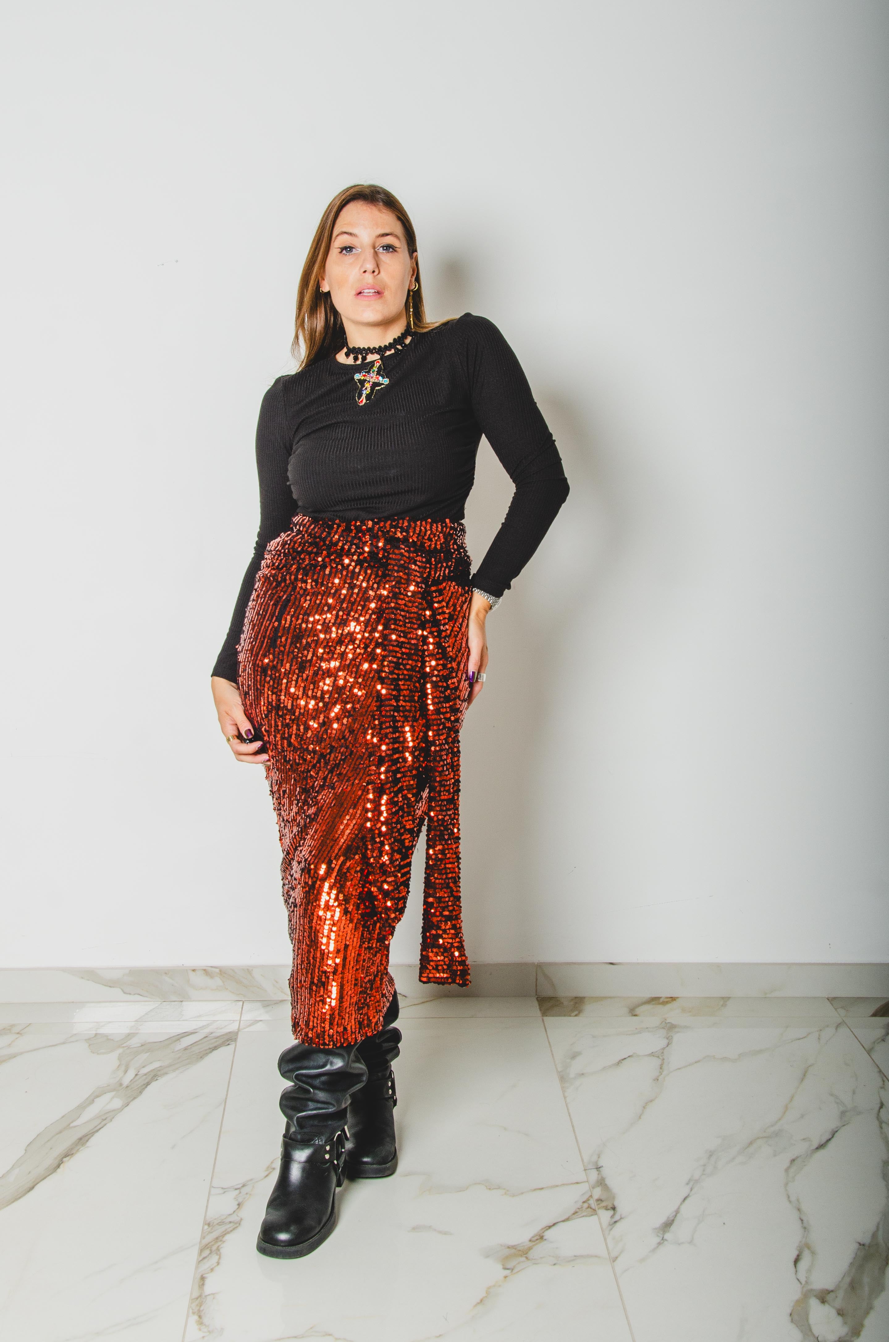 305 Tg 3 Gonna multiposizione MIRI elasticizzata con paillettes bronzo