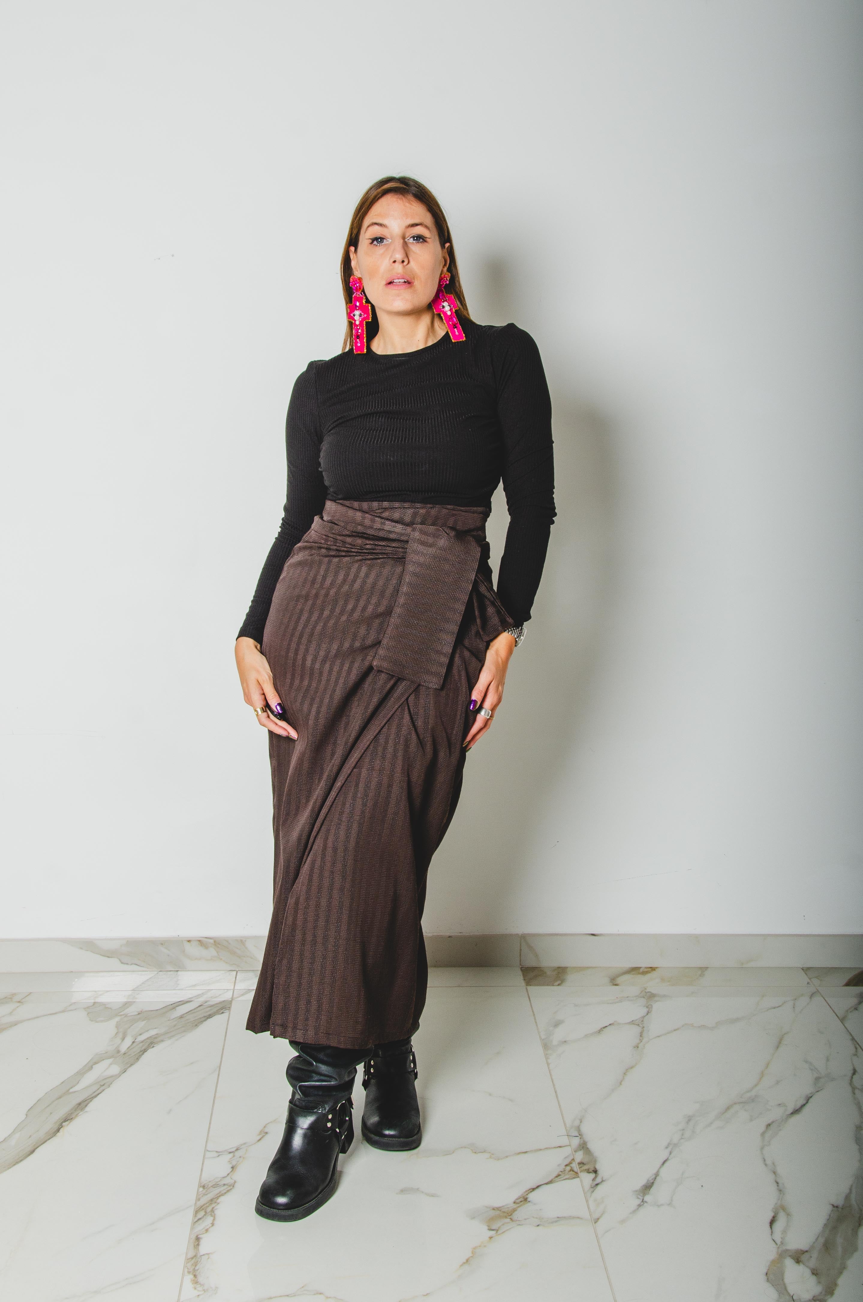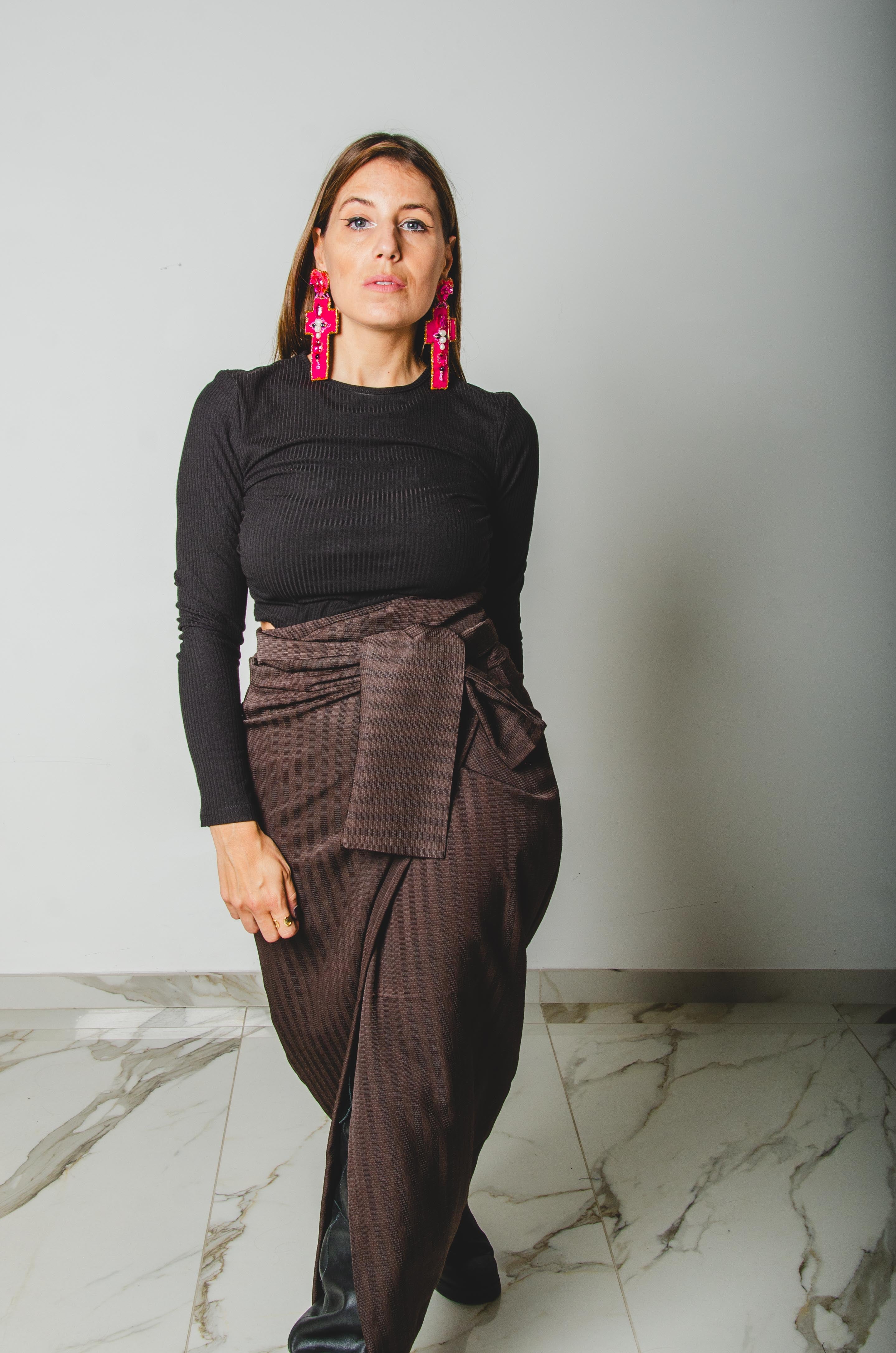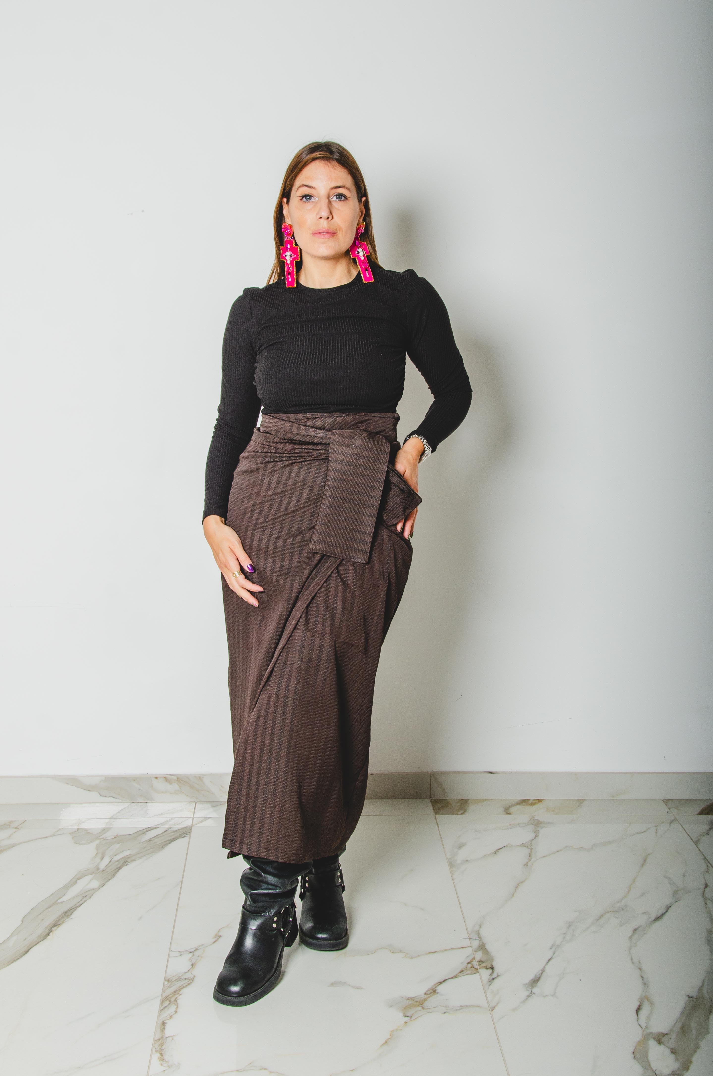 La  Gonna multiposizione MIRI è un capo versatilissimo, adatto a tutte le taglie e che può essere indossato in molti modi diversi. Realizzata con tessuto di alta qualità, è una gonna sartoriale che definirà la tua figura, senza eccedere.