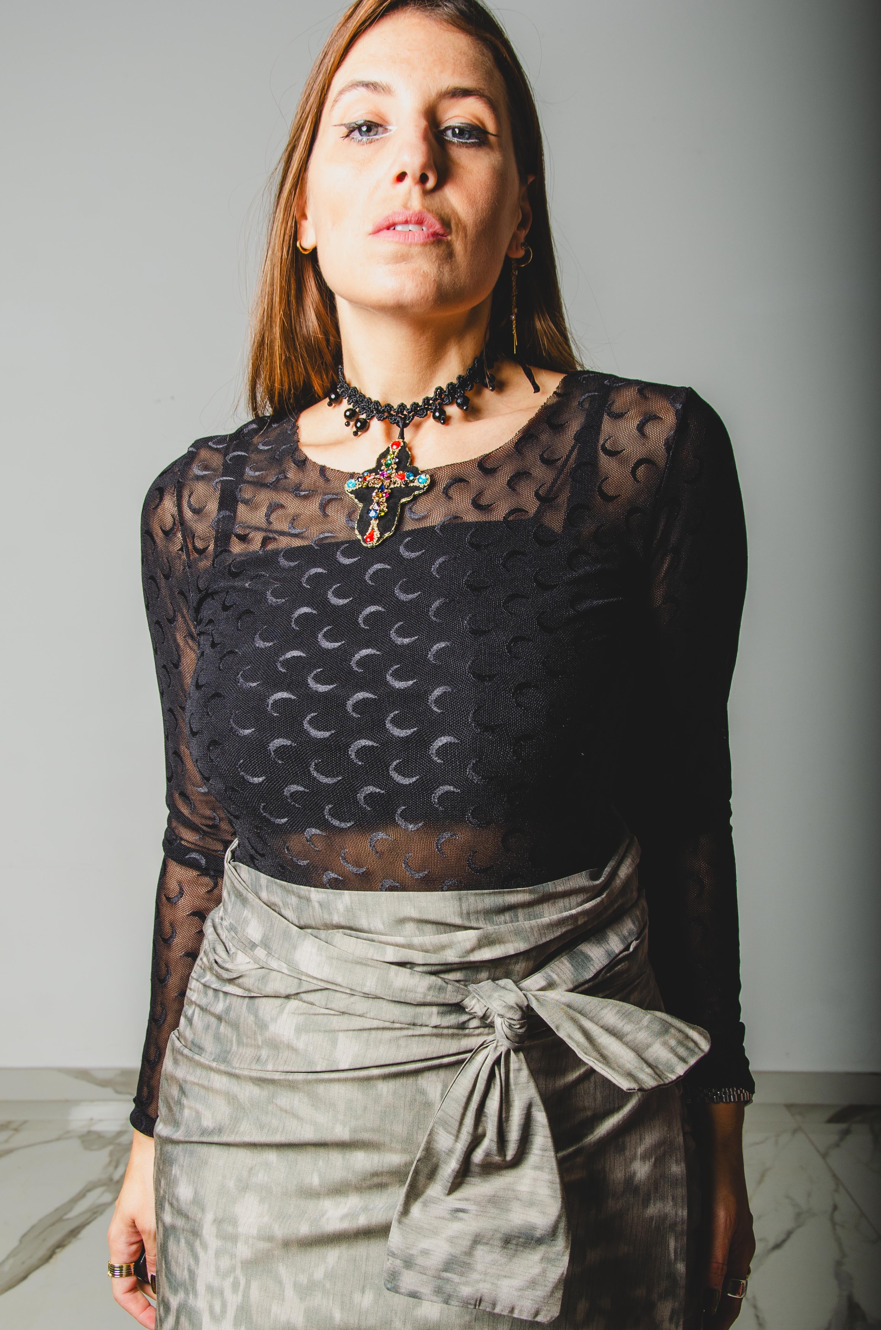 La sua linea semplice e pulita, unita ai dettagli ricercati, renderà questa gonna un elemento base indispensabile del tuo guardaroba. Sono pezzi unici, sartoriali.