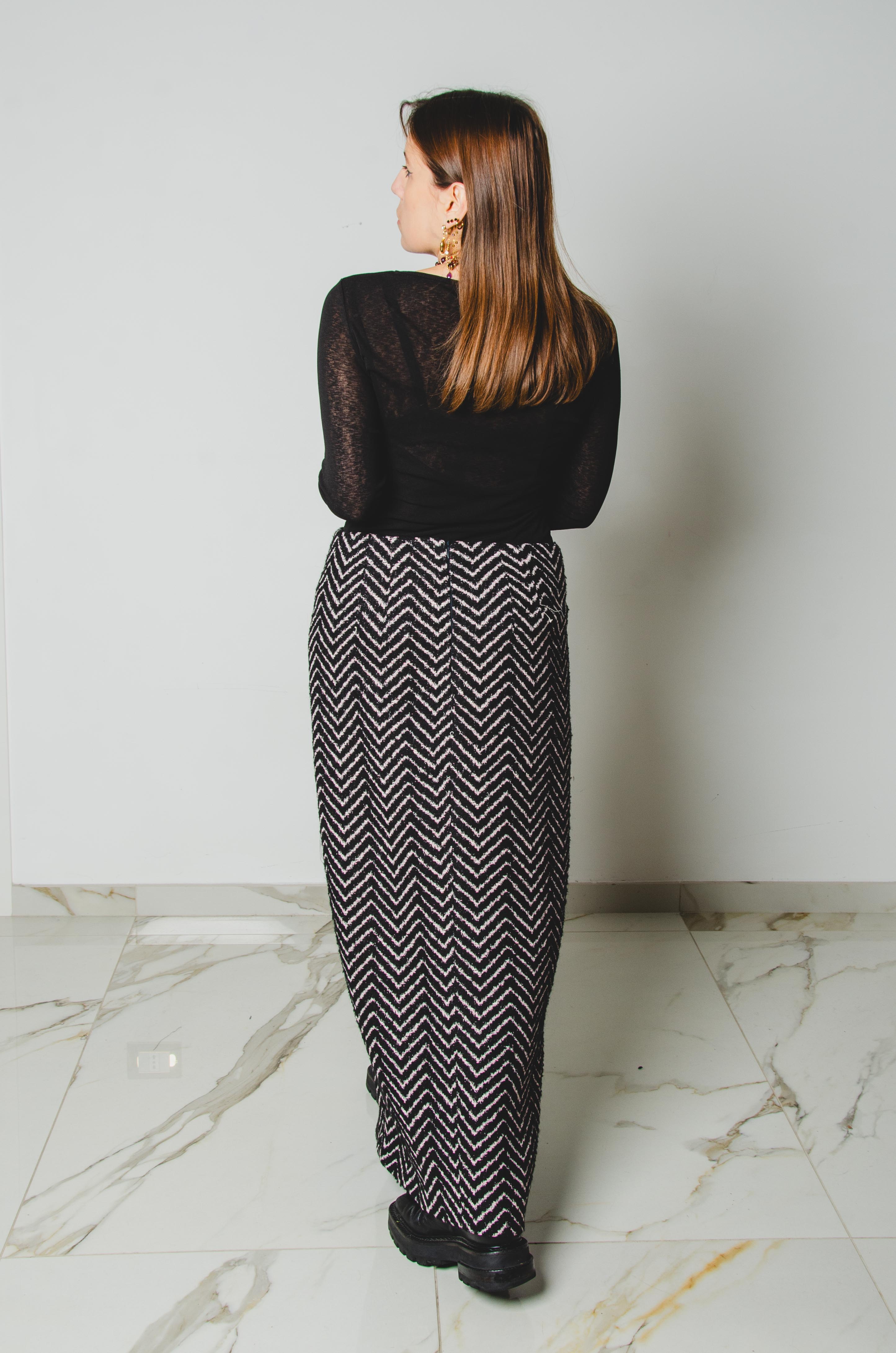 1 - ALMA Skirt – Gonna couture sartoriale in pura lana nera e rosa TG 2