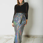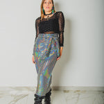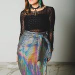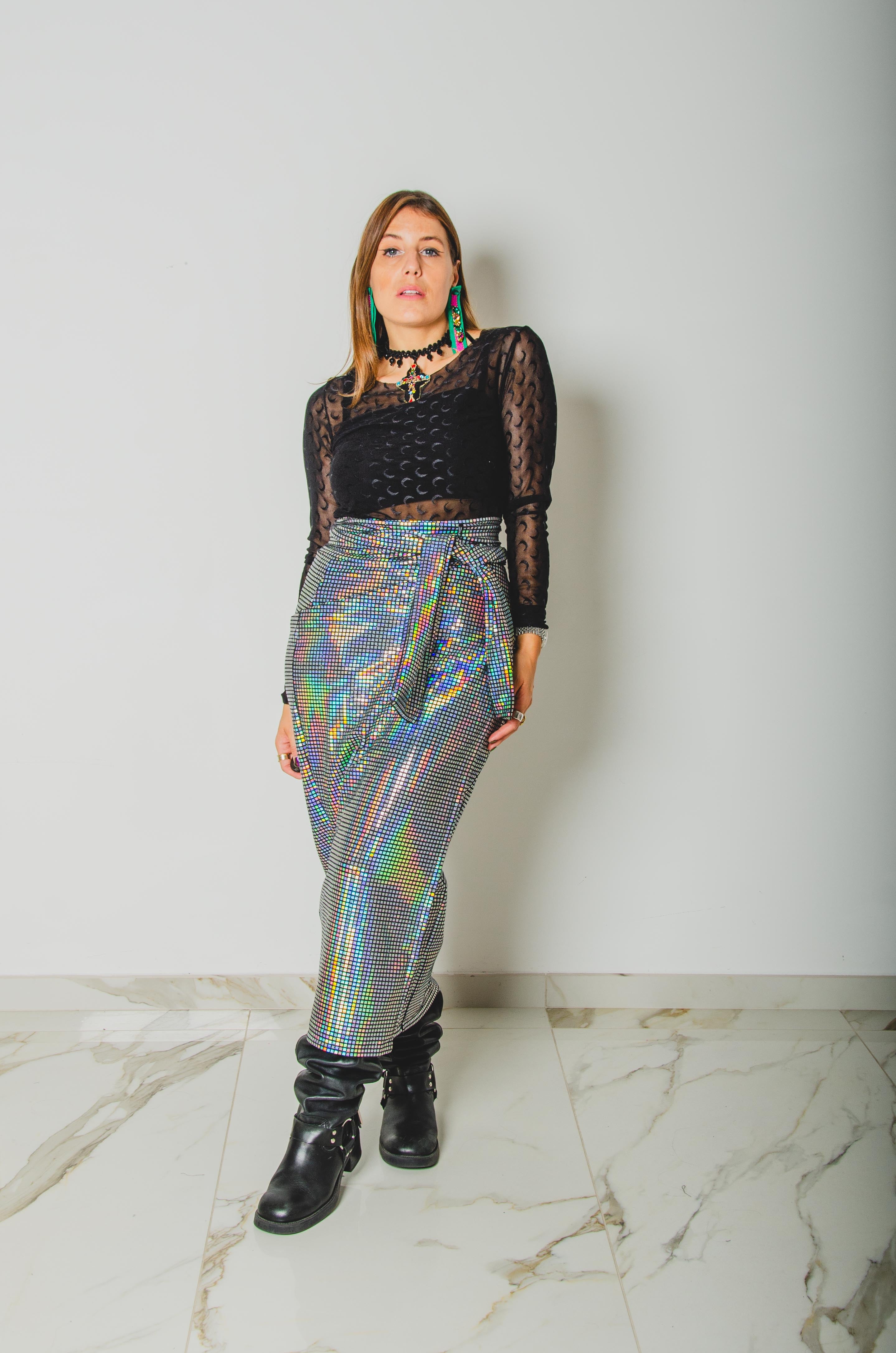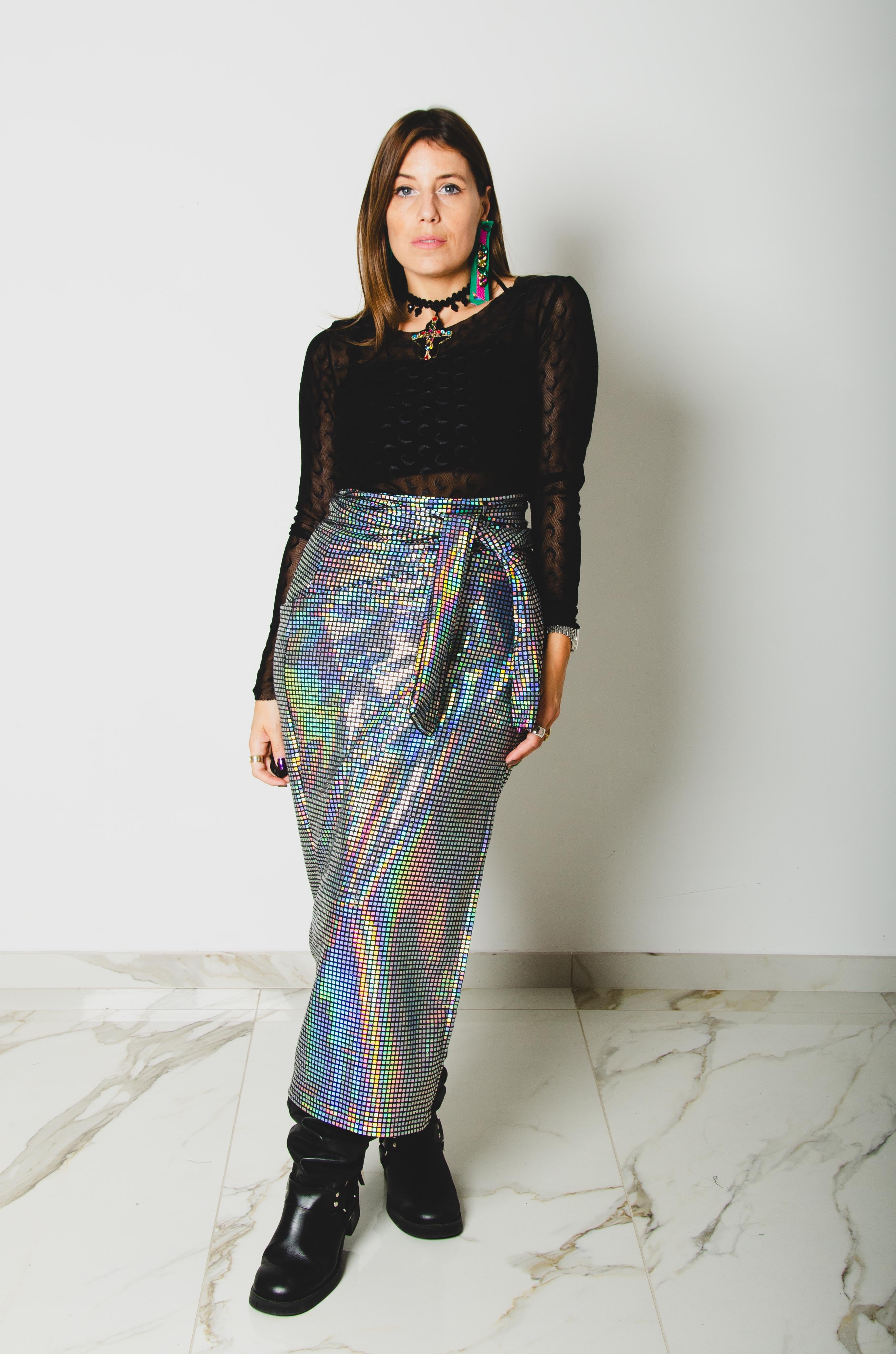 307 Gonna multiposizione MIRI in tessuto con paillettes piatte argento effetto strobo