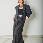 40 - Pantalone palazzo NICOLE sartoriale in lana grigia gessata