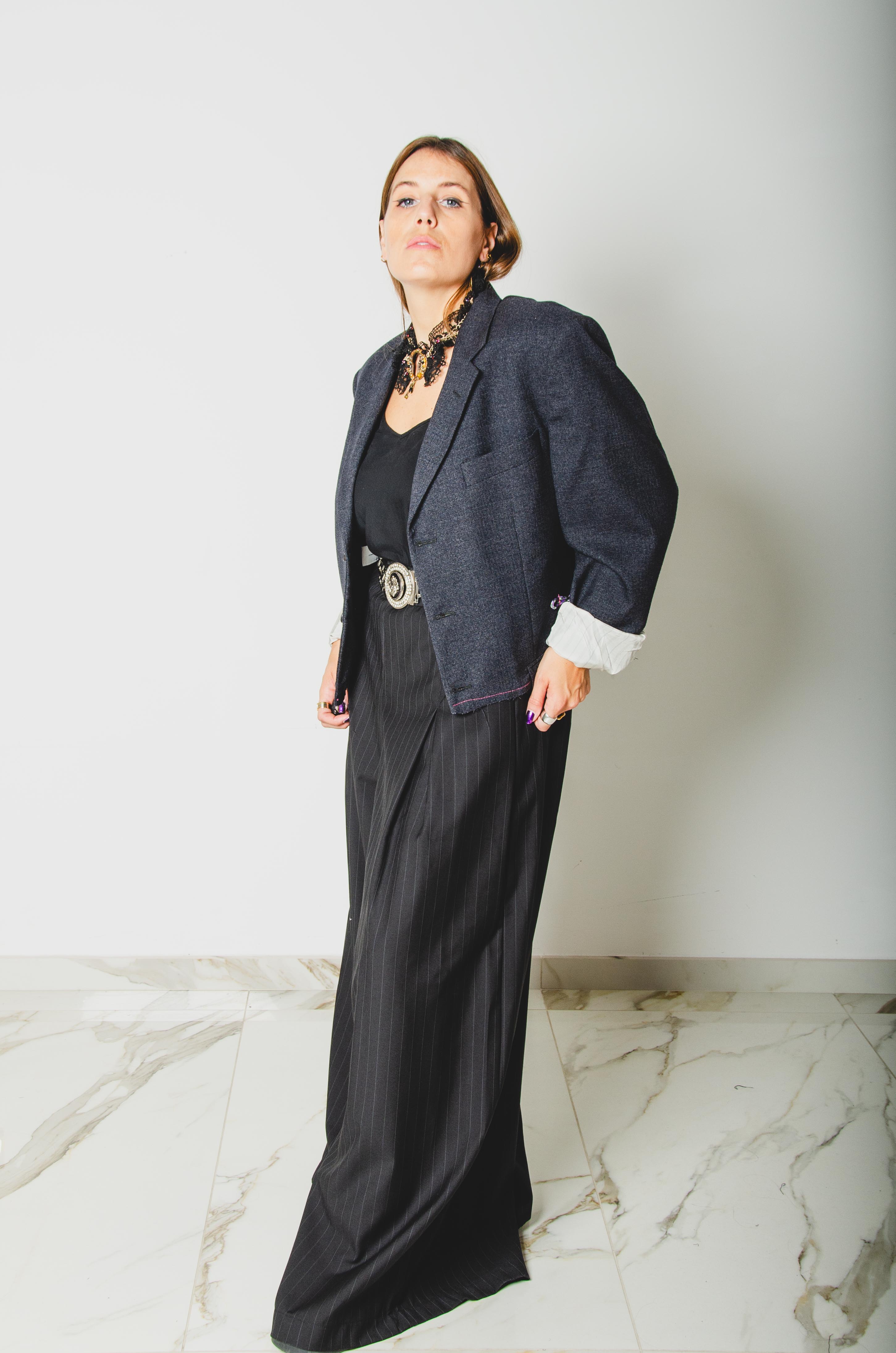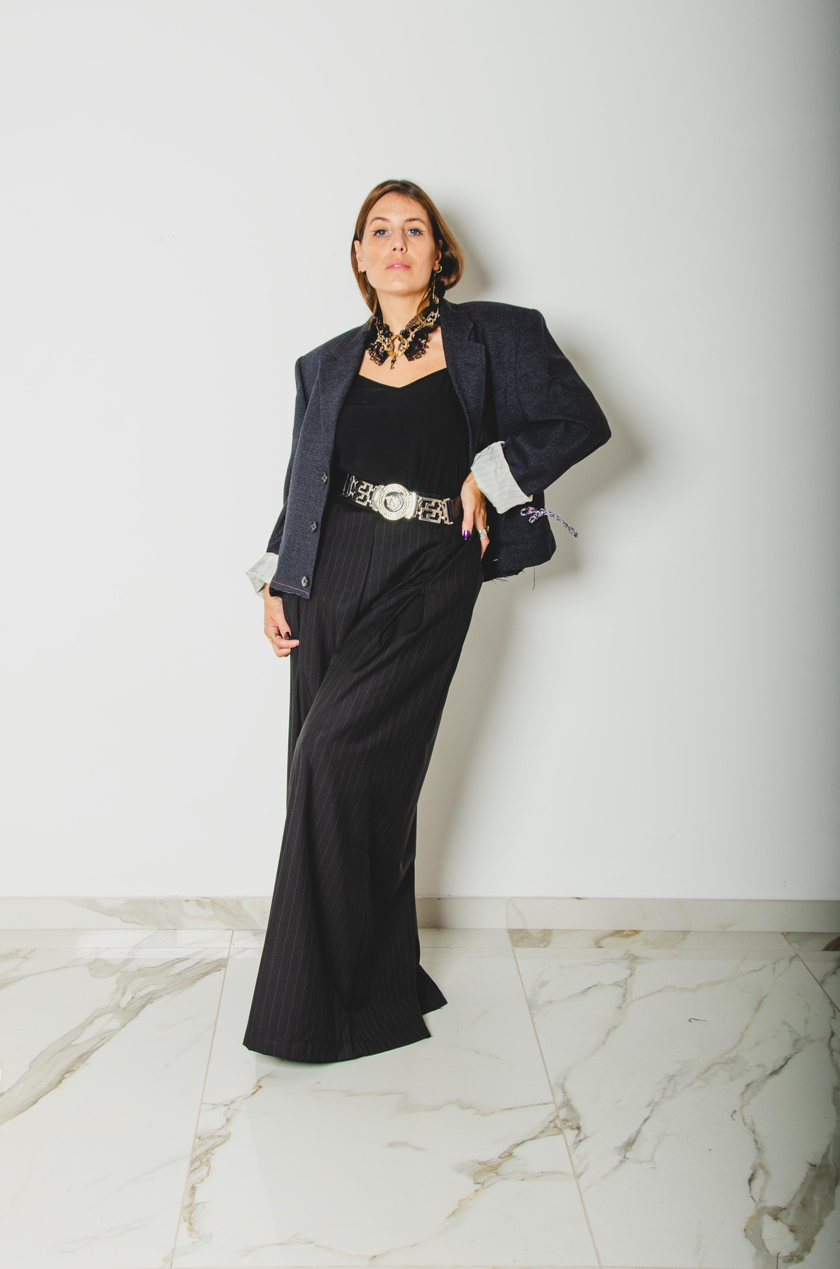 Il Pantalone Palazzo NICOLE della nostra collezione sartoriale è uno splendido capo realizzato in viscosa lavorata. Dotato di elastico in vita, veste comodamente dalla taglia 42 alla taglia 46. Con due pieghe davanti, ha un effetto morbido e una bella fluidità. Questo pezzo unico può essere abbinato alle nostre camicie Margot e alle giacche Natalina, ma è perfettamente completato dal nostro gilet sartoriale. Migliora il tuo guardaroba con questo pantalone intramontabile ed elegante.