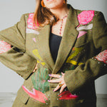 Questo capo versatile può essere indossato oversize dalle donne per un look chic e grintoso. Abbraccia l'unicità e l'eco-consapevolezza della moda upcycled con la nostra giacca vintage upcycling .