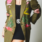 498 Giacca verde 2 bottoni dipinta a mano con strass - Valentino in pura lana vergine Tg 52