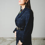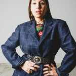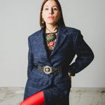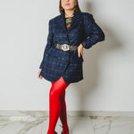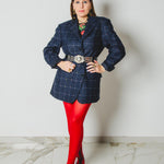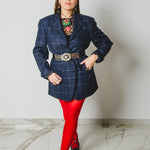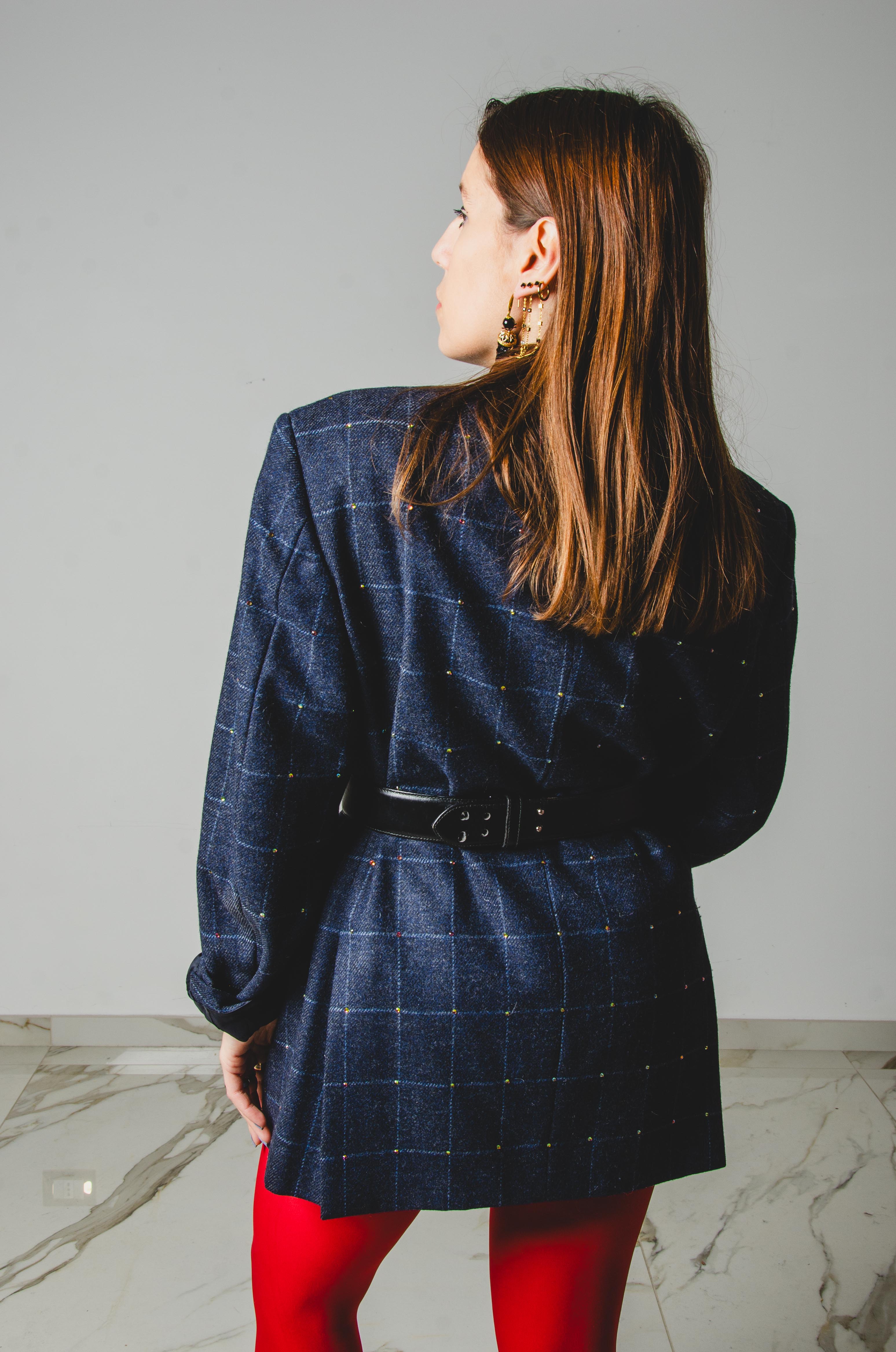 590 Giacca a quadri blu 3 bottoni con strass Tg 50 in lana
