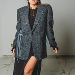 Questo capo versatile può essere indossato oversize dalle donne per un look chic e grintoso. Abbraccia l'unicità e l'eco-consapevolezza della moda upcycled con la nostra giacca vintage upcycling .