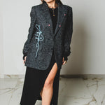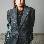 551 Giacca grigia in lana spessa con ricami e laccini tg 48