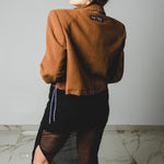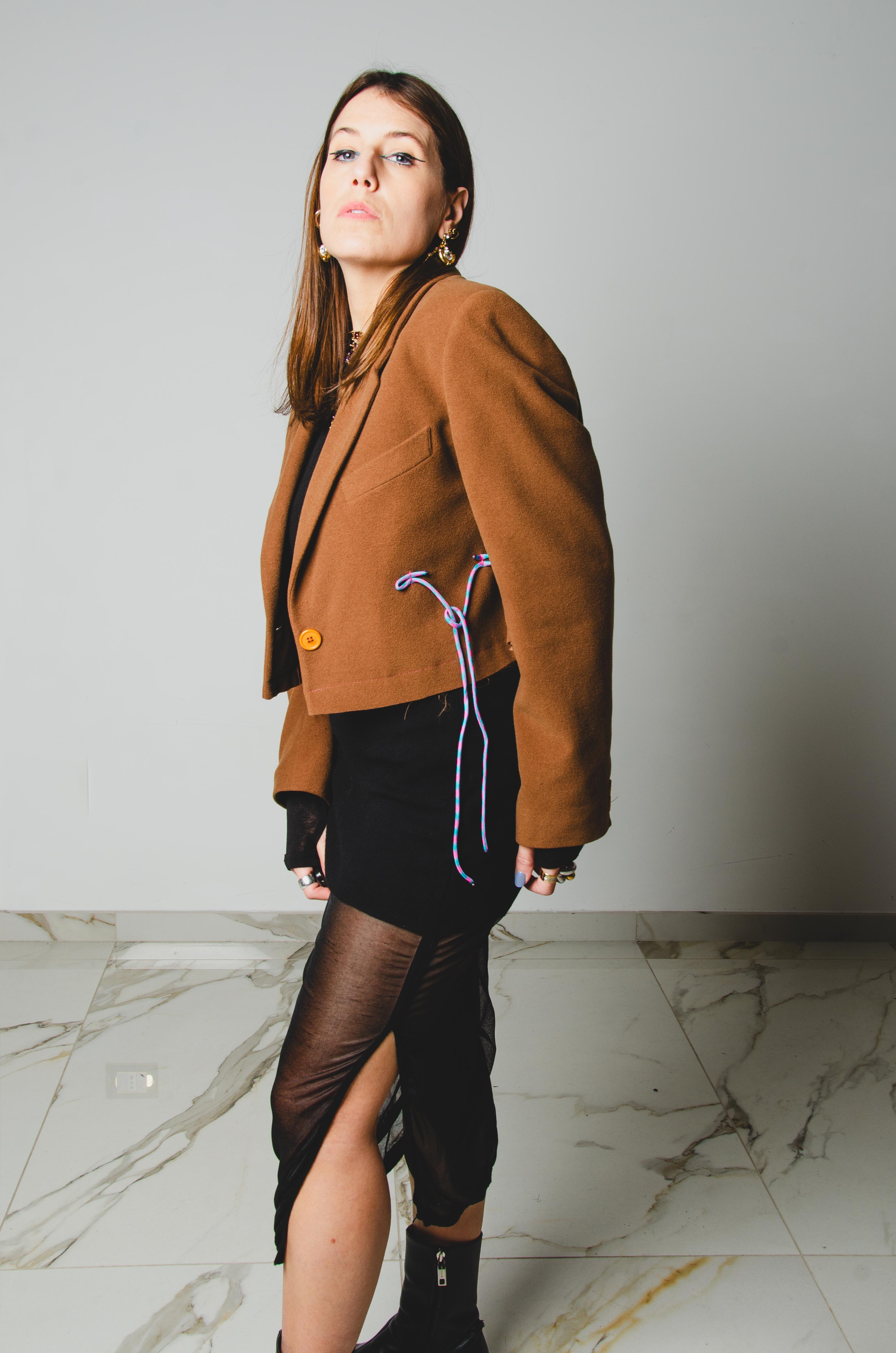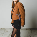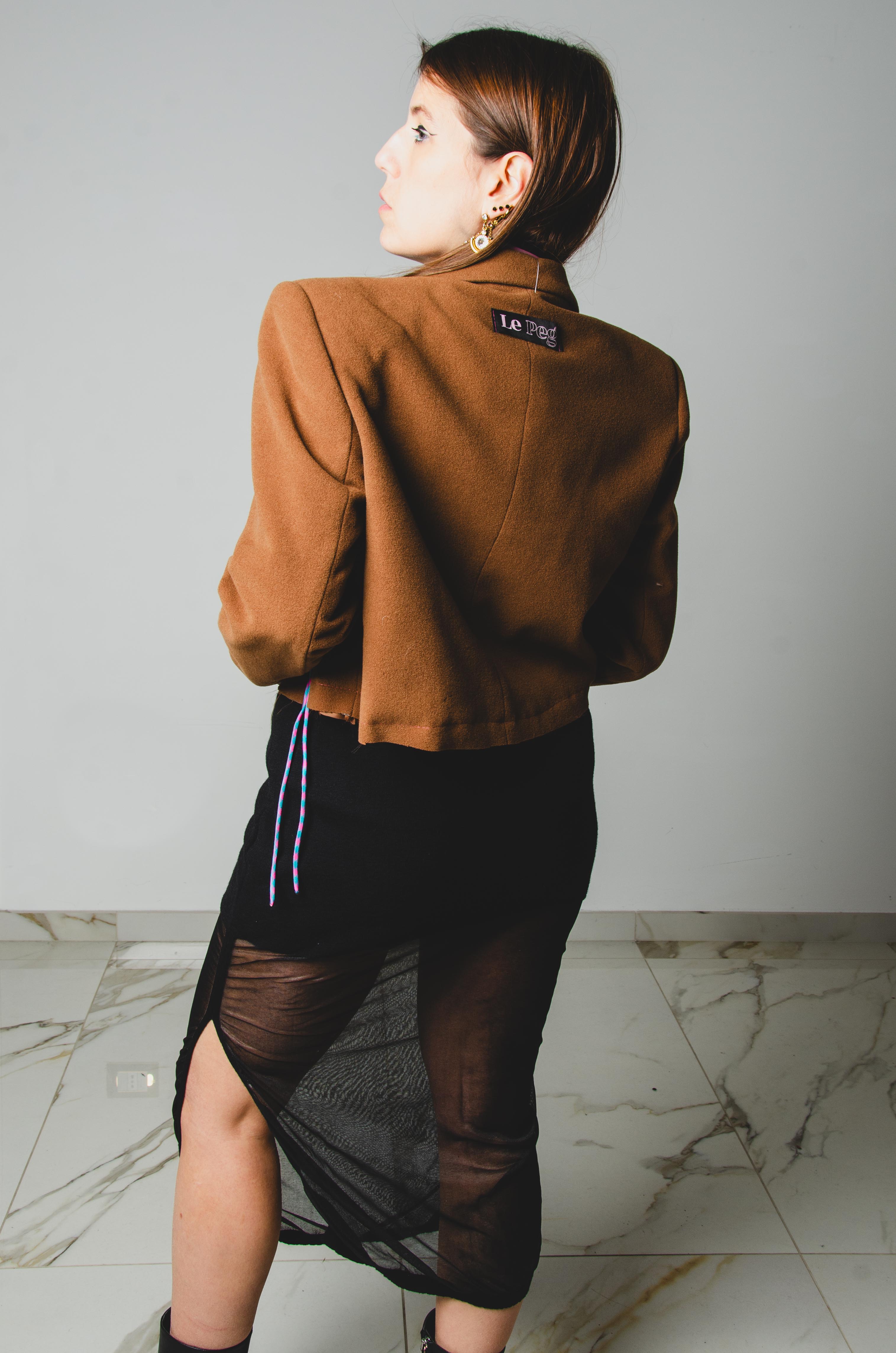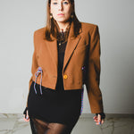 560 Giacca in panno di lana cammello crop con laccini e tagli a vivo Tg 46