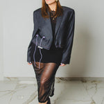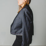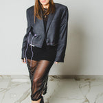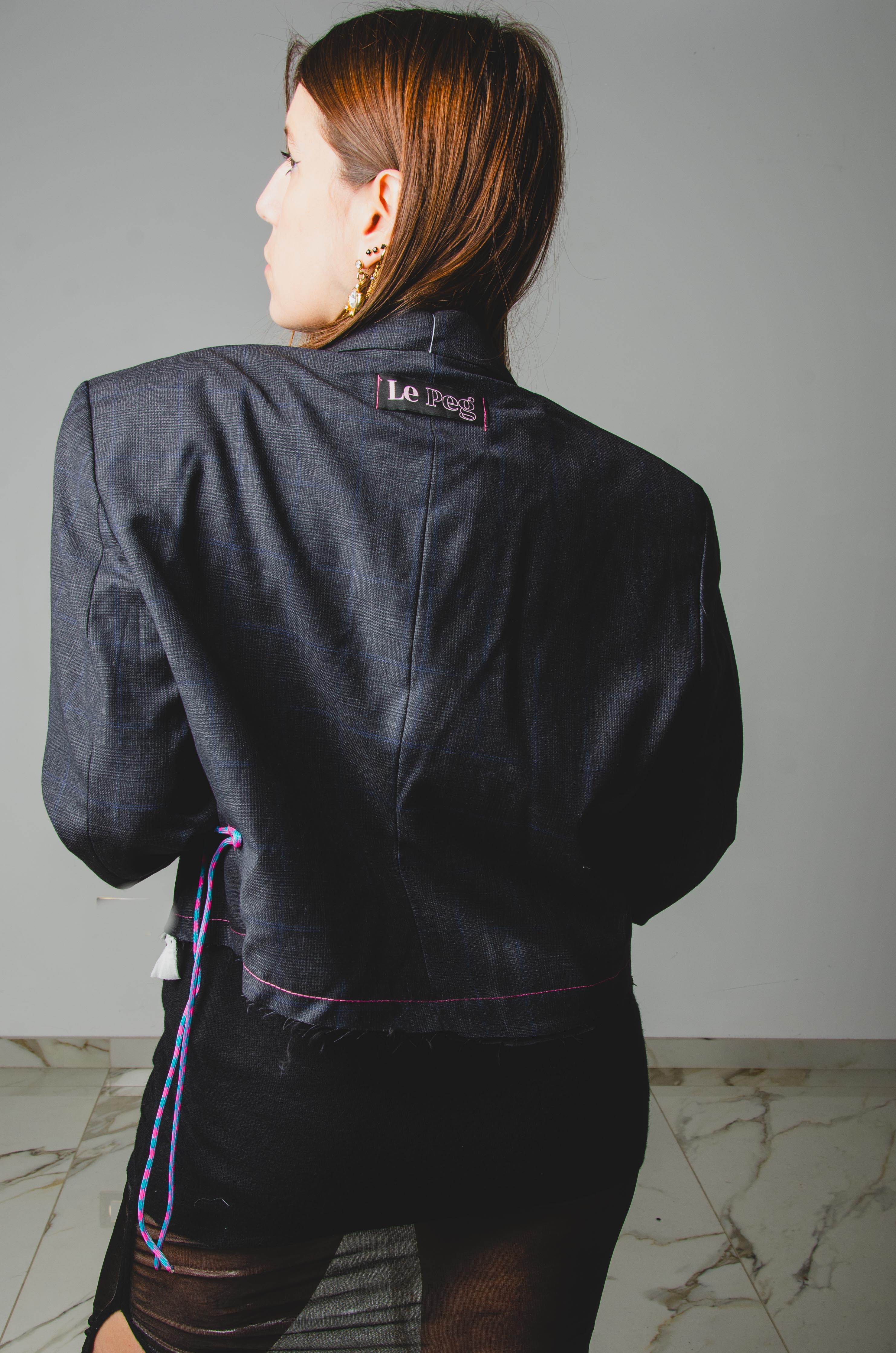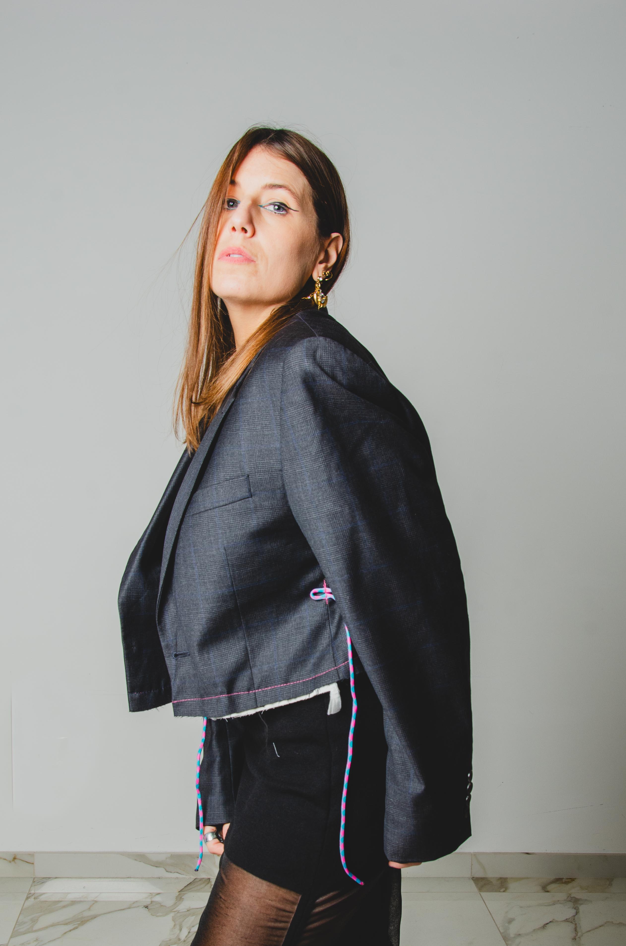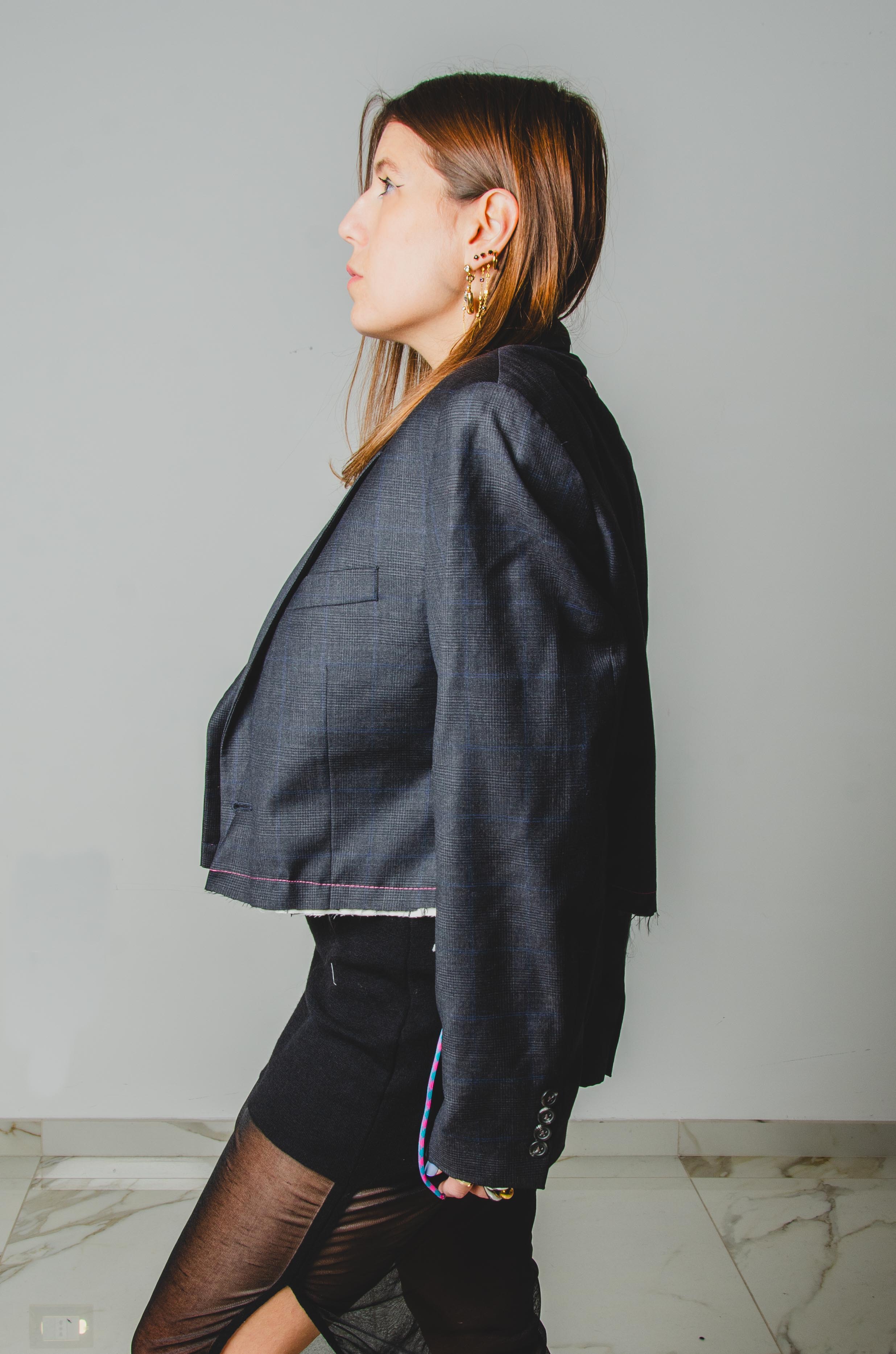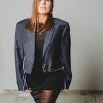 562 Giacca grigia in lana crop con tagli a vivo e laccini Tg 52