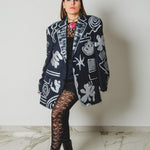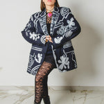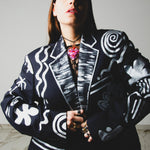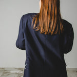 584 Giacca Vintage in pura lana vergine blu dipinta a mano Tg 54