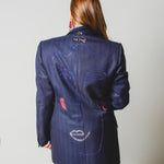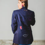 585 Giacca Vintage in pura lana vergine blu dipinta a mano con strass - Harrod's Tg 46/48